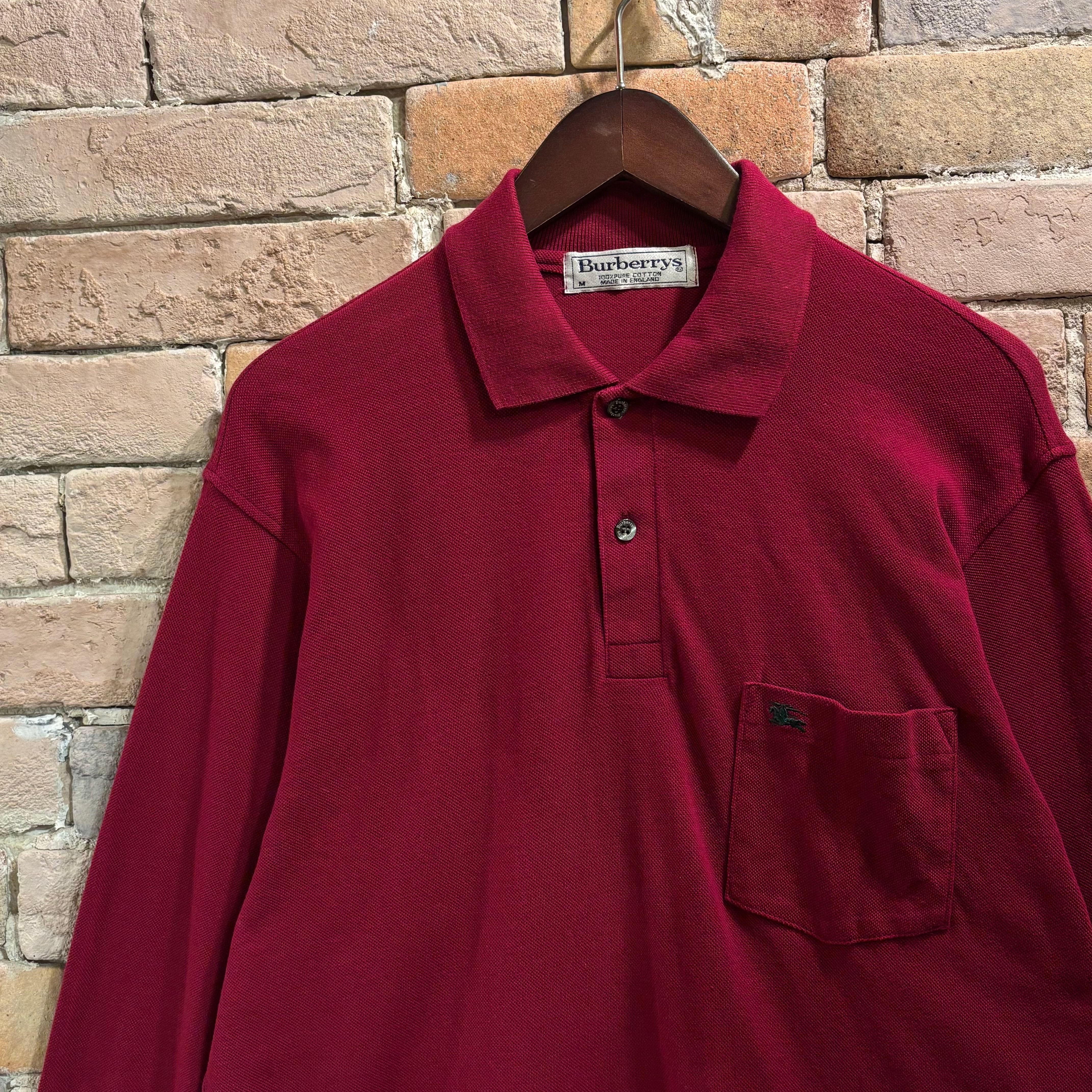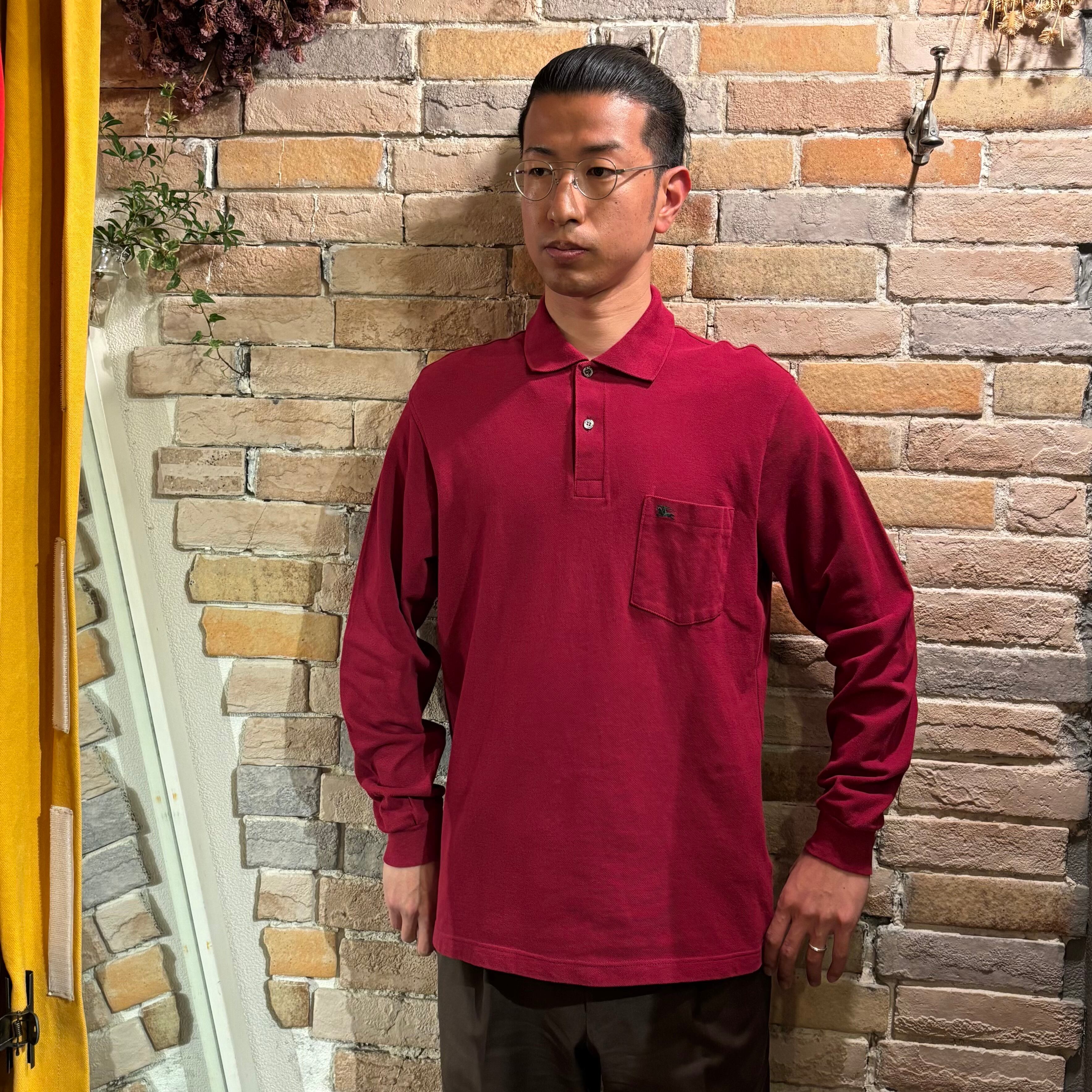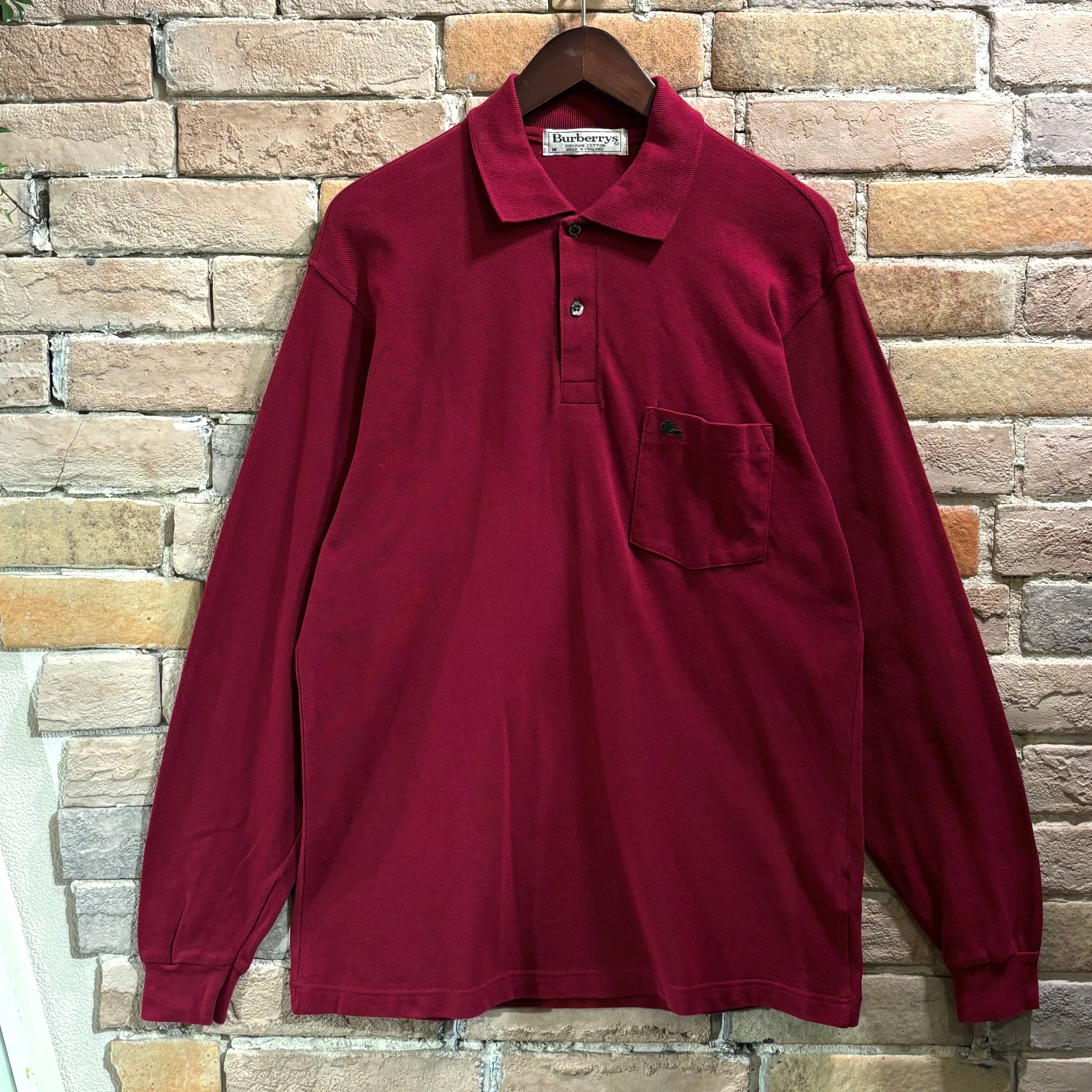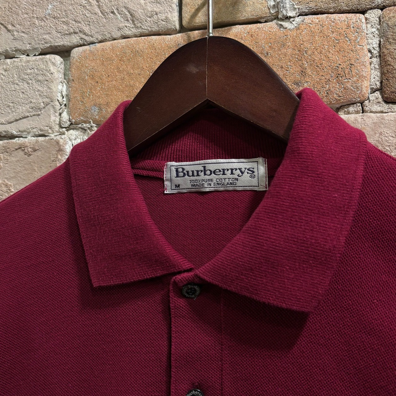 Burberry サイズM 長袖ポロ バーガンディ コットン100% イングランド製 ばー