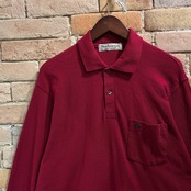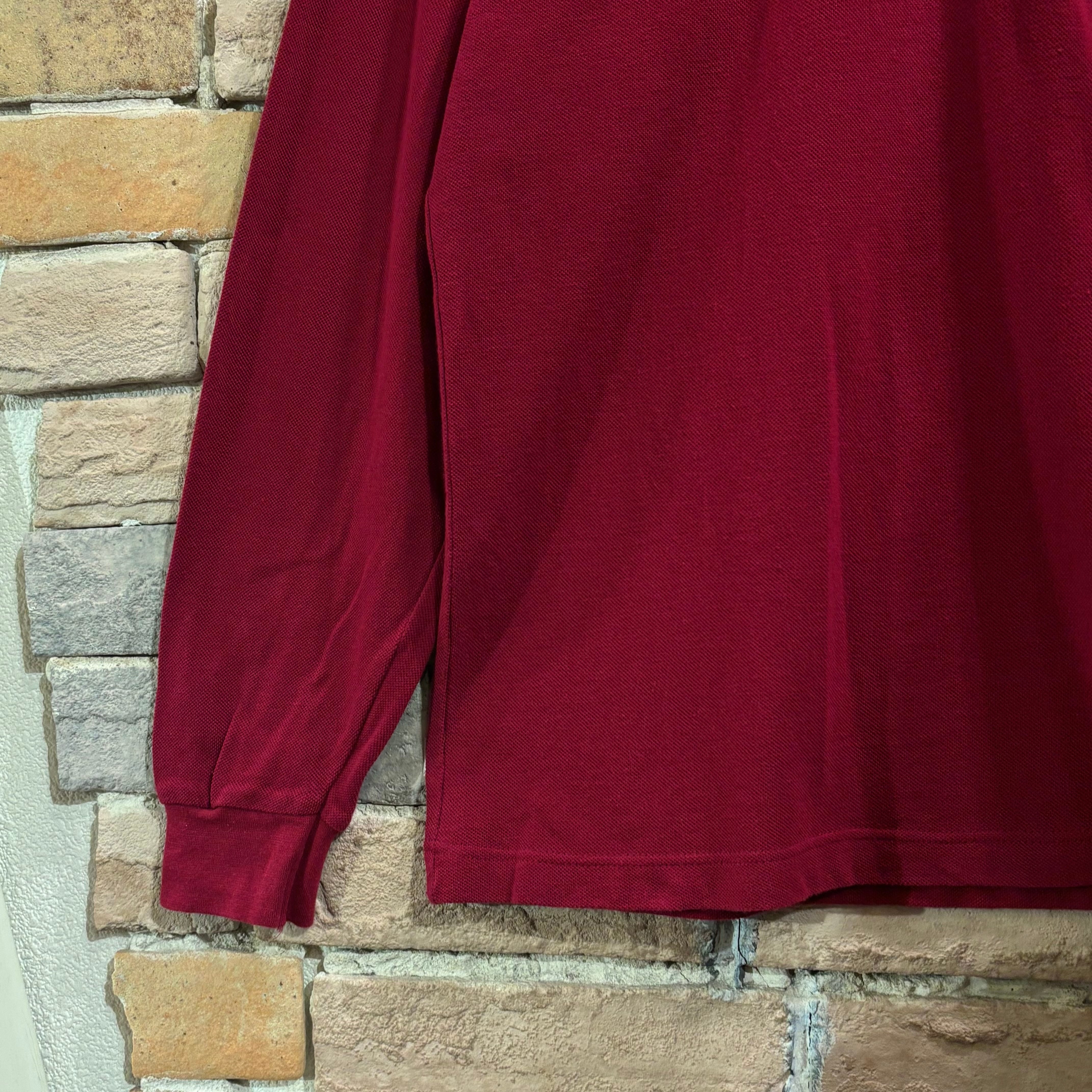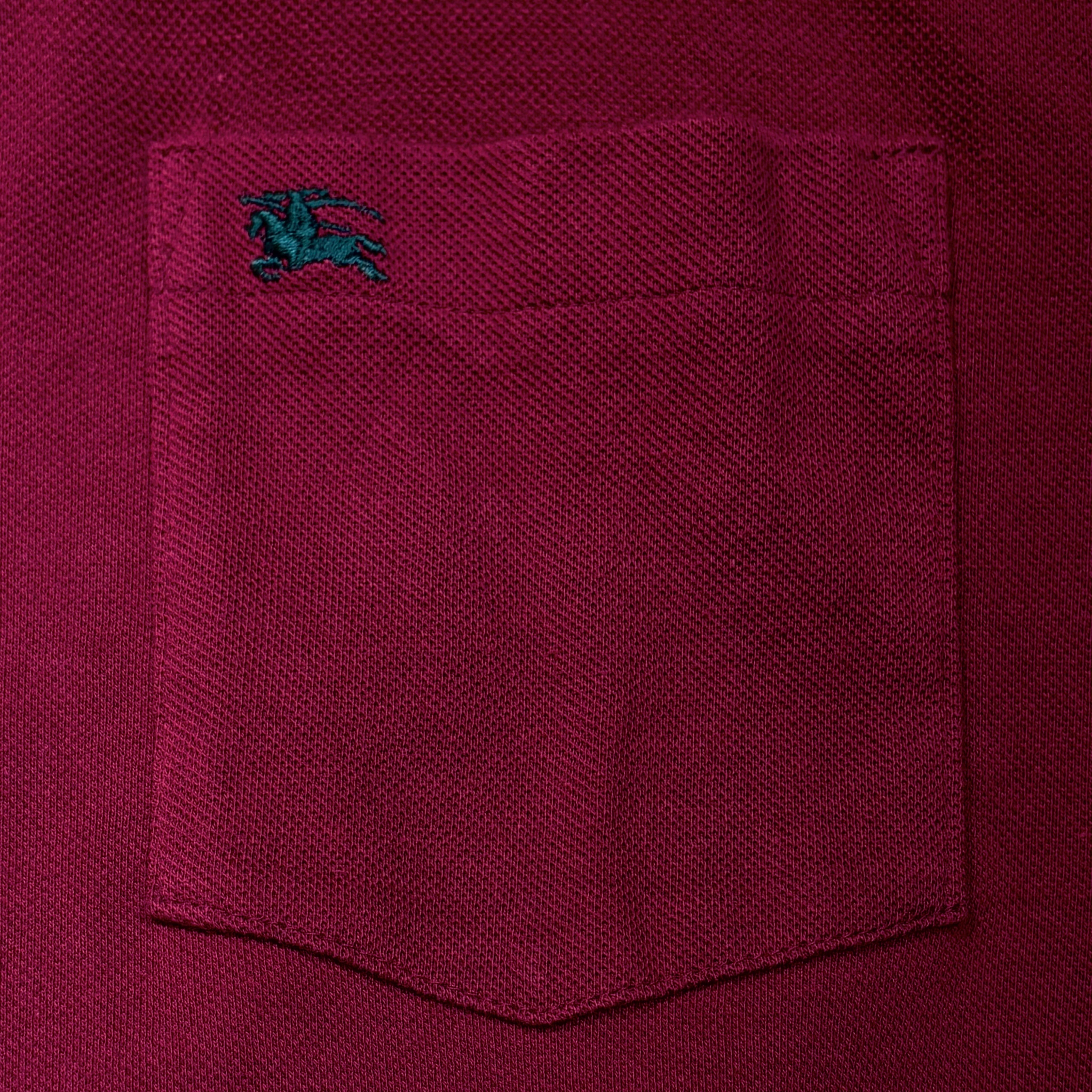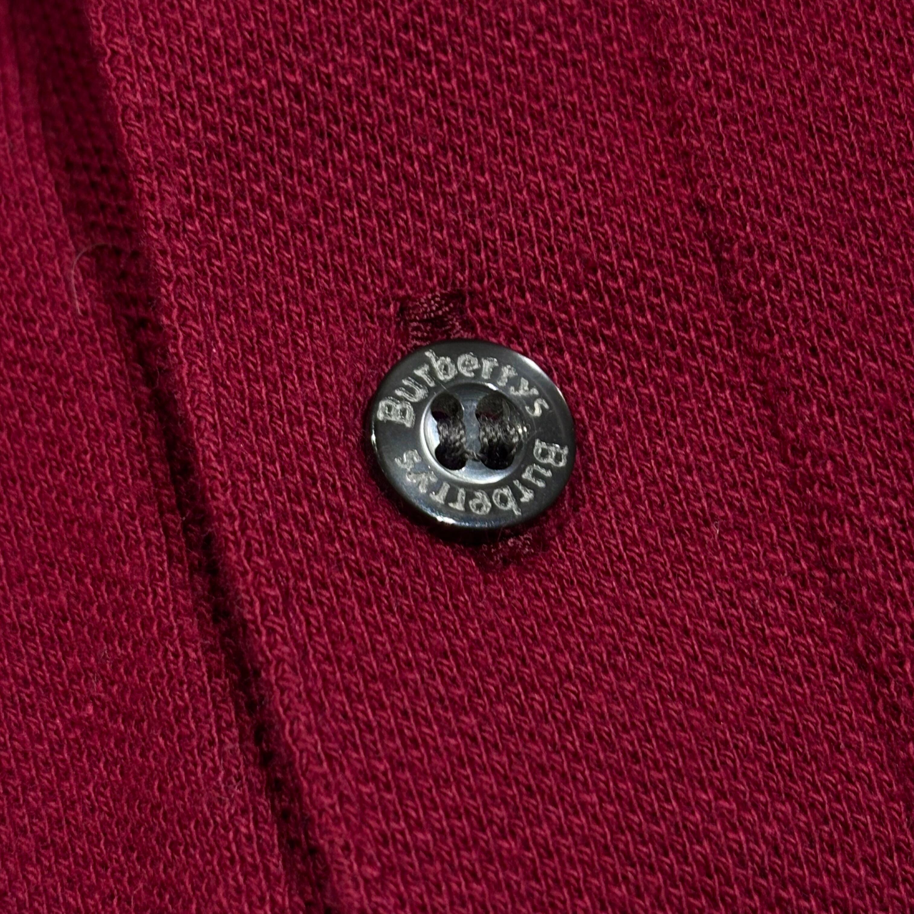 Burberry サイズM 長袖ポロ バーガンディ コットン100% イングランド製 ばー