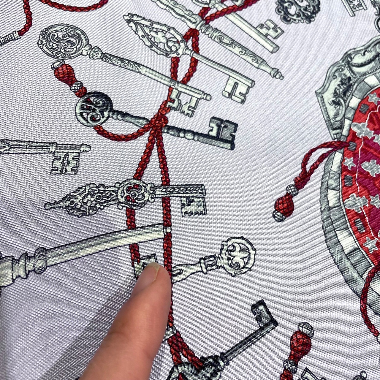鍵がモチーフのデザインのスカーフ。