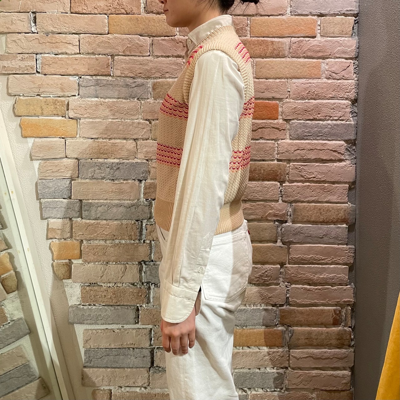 ザックリとした編み目で、リラックスしたスタイルからジャケットスタイルの重ね着にもお使いいただけます。
