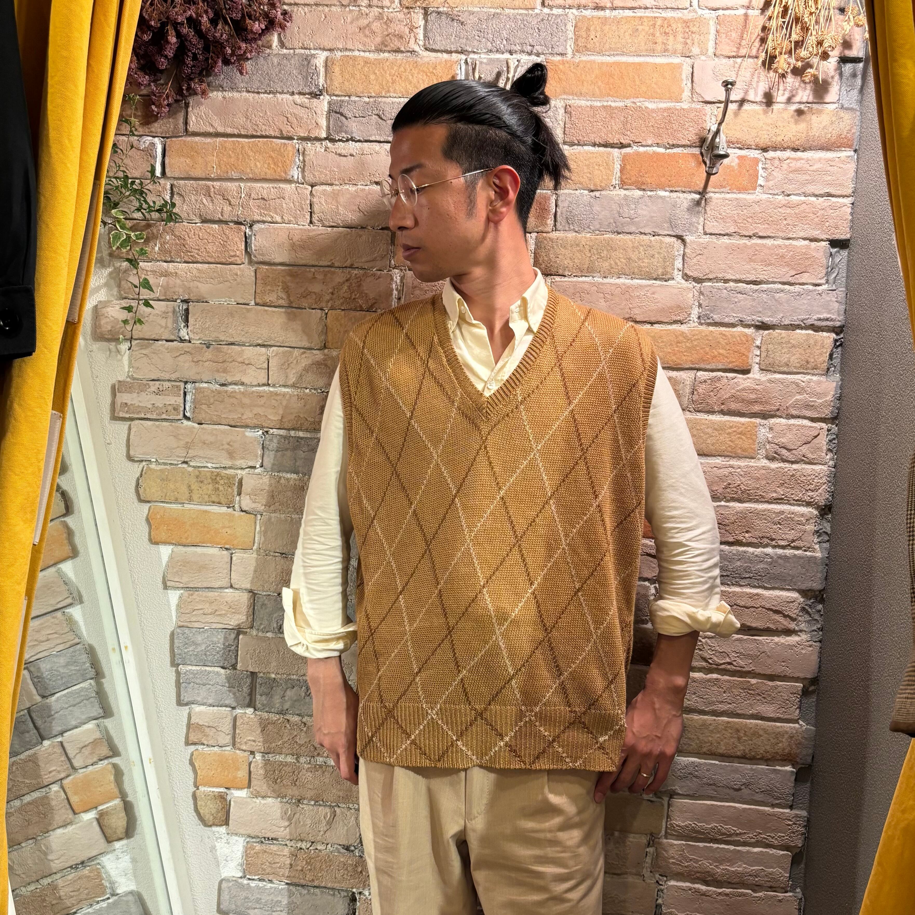 Perugino リネンニットベスト インターシャ イタリア製 ペルジーノ
