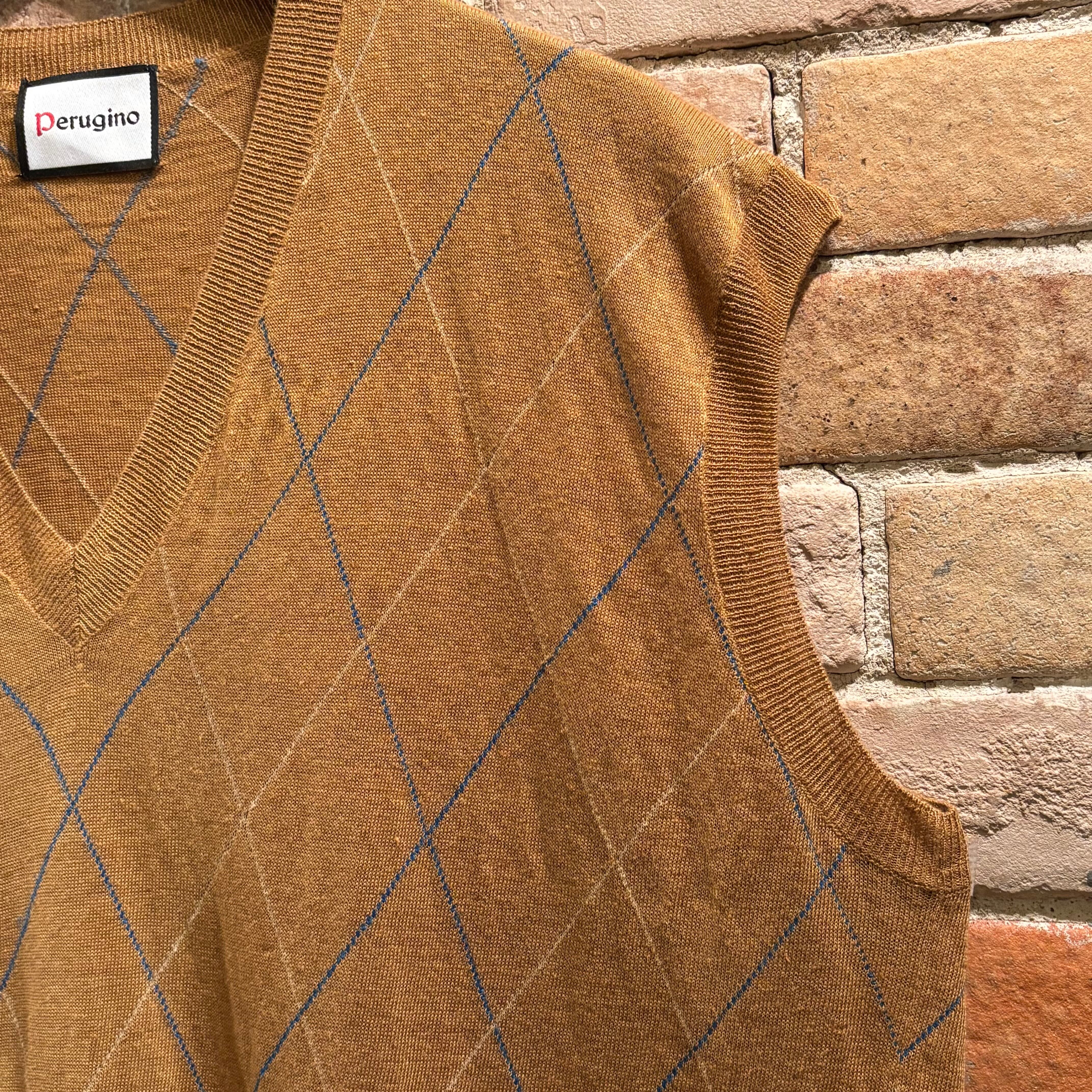 Perugino リネンニットベスト インターシャ イタリア製 ペルジーノ