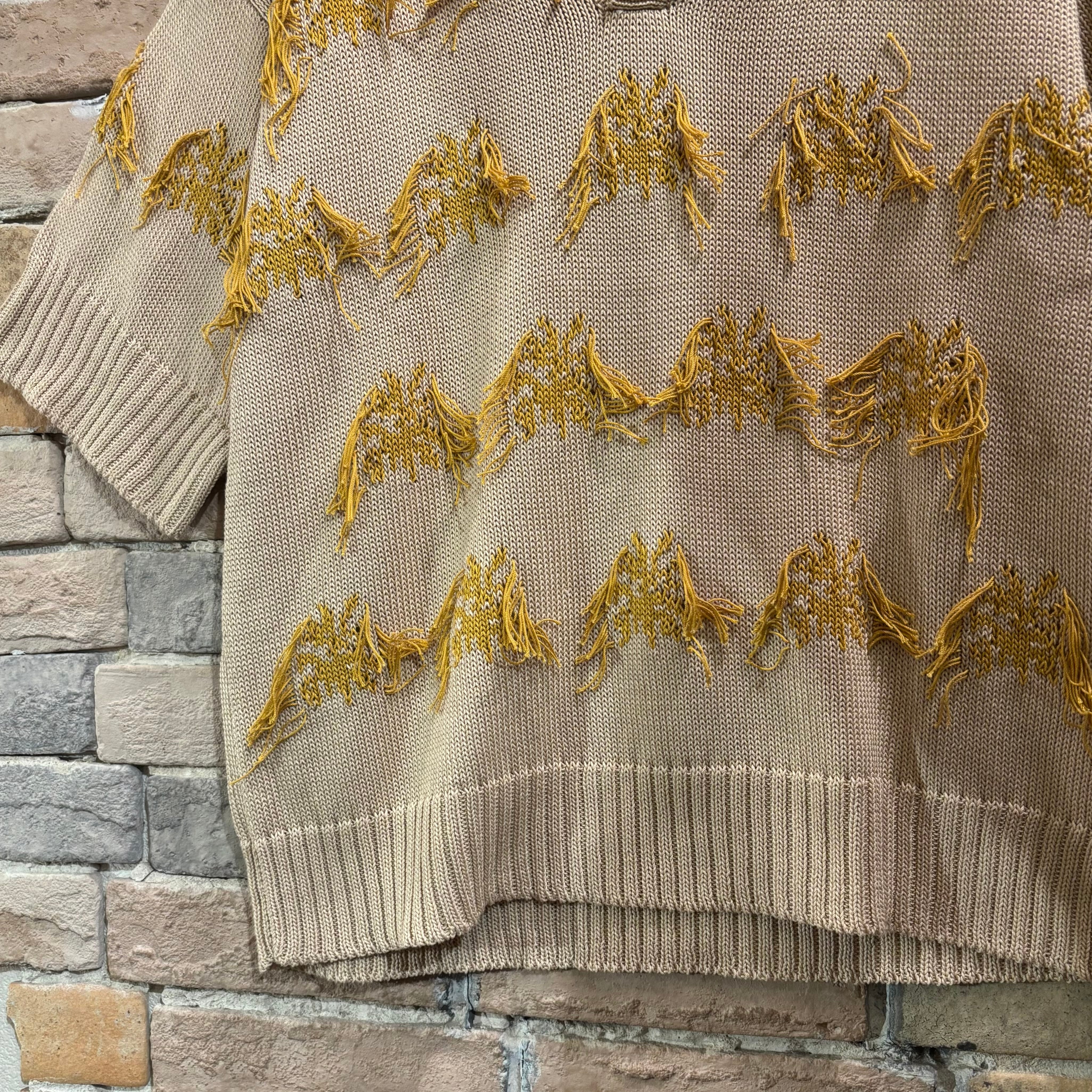 柔らかな色合いにフリンジ仕様が特徴的な1着。