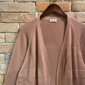 柔らかな色合いに肌触りの良いコットン×シルク、ボタンレスのオープンフロント仕様のニットカーディガン。