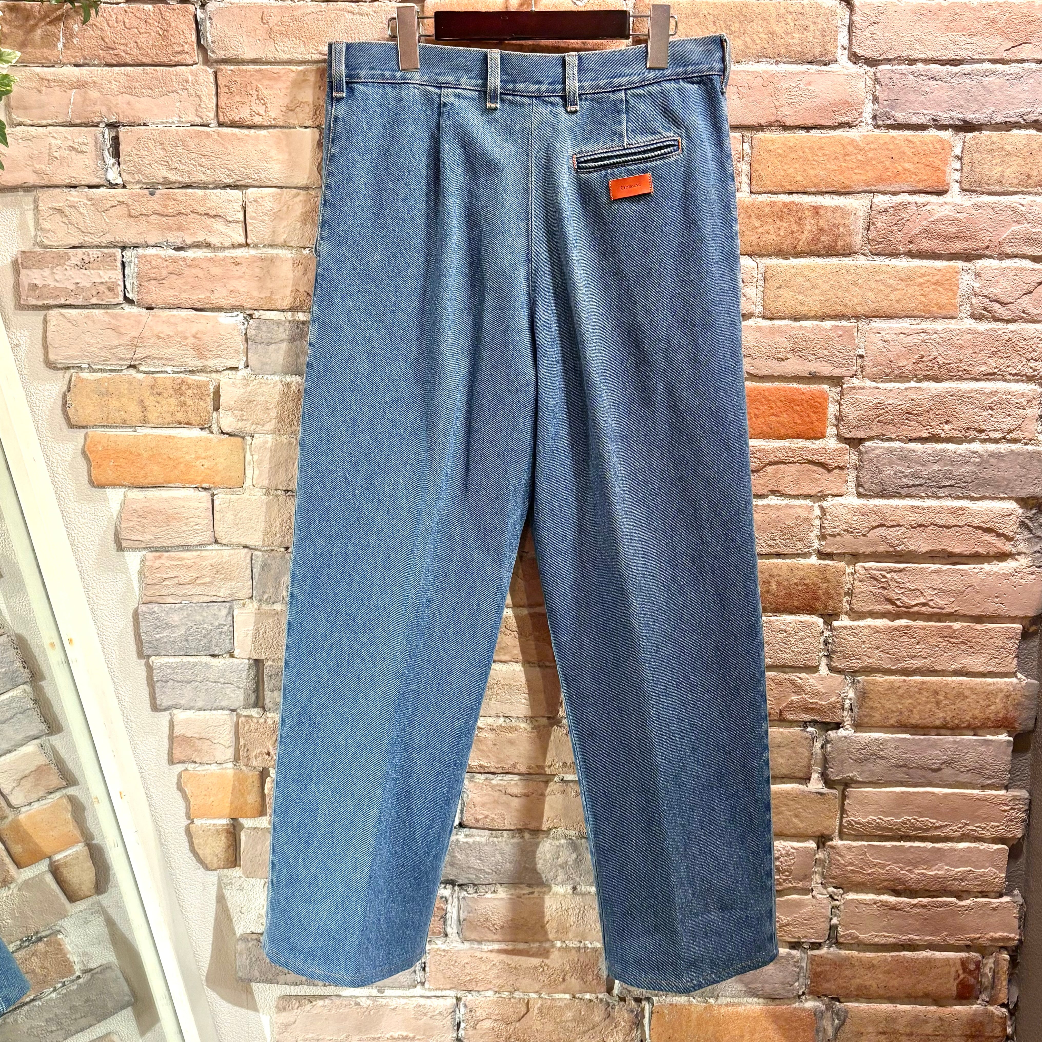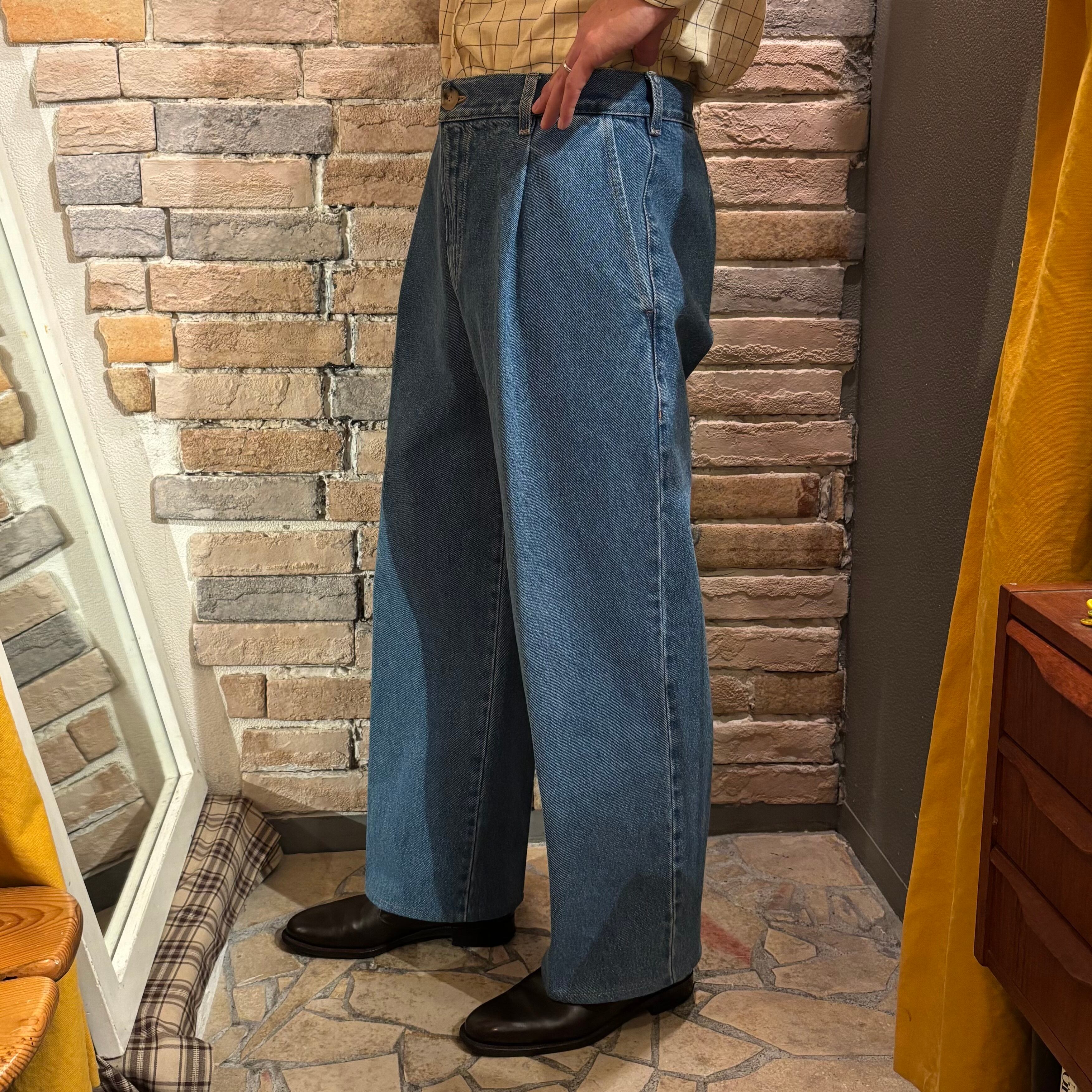 程良く厚みのある生地感にワタリから裾にかけてのクラシックなシルエットのイタリア製プリーツデニムトラウザーズ。