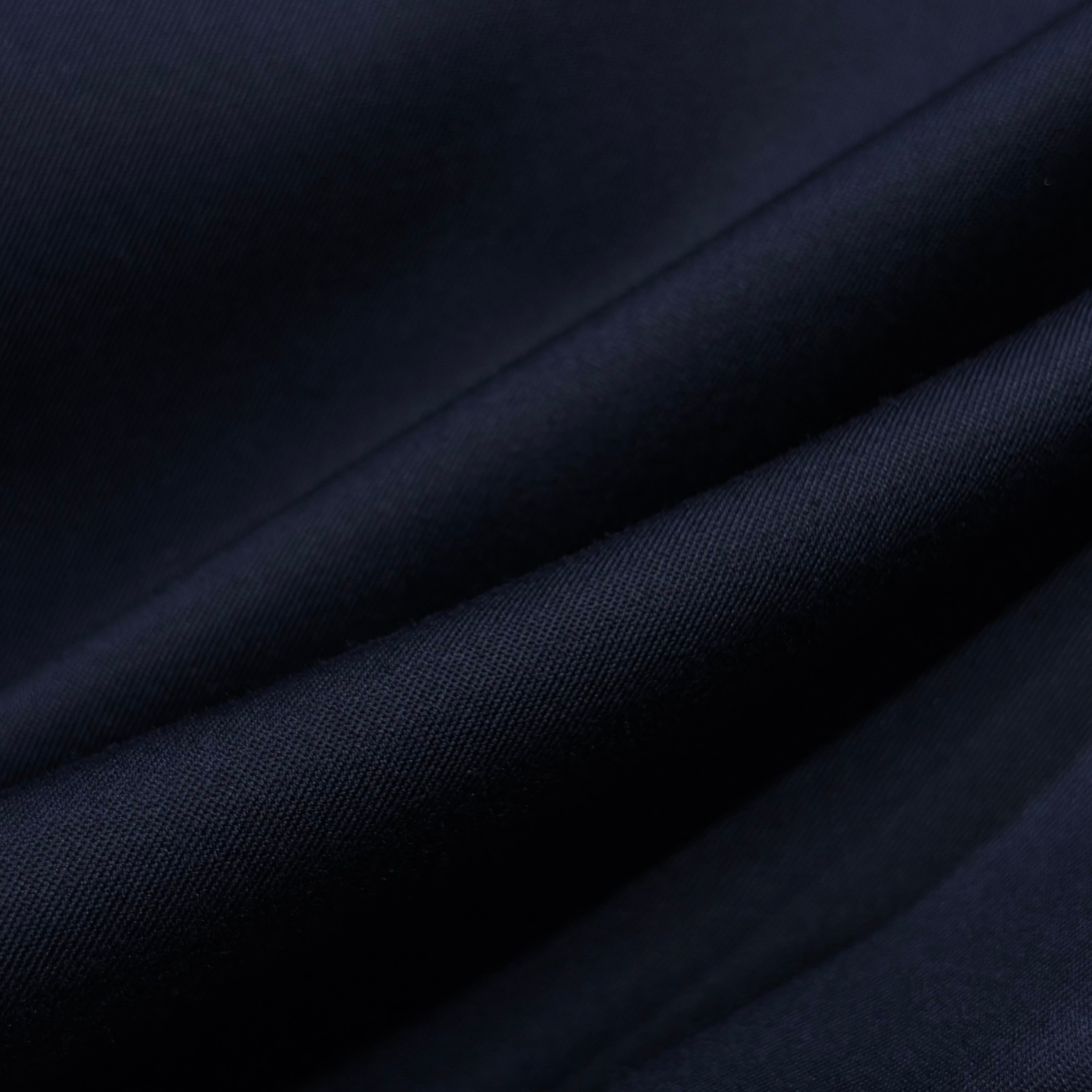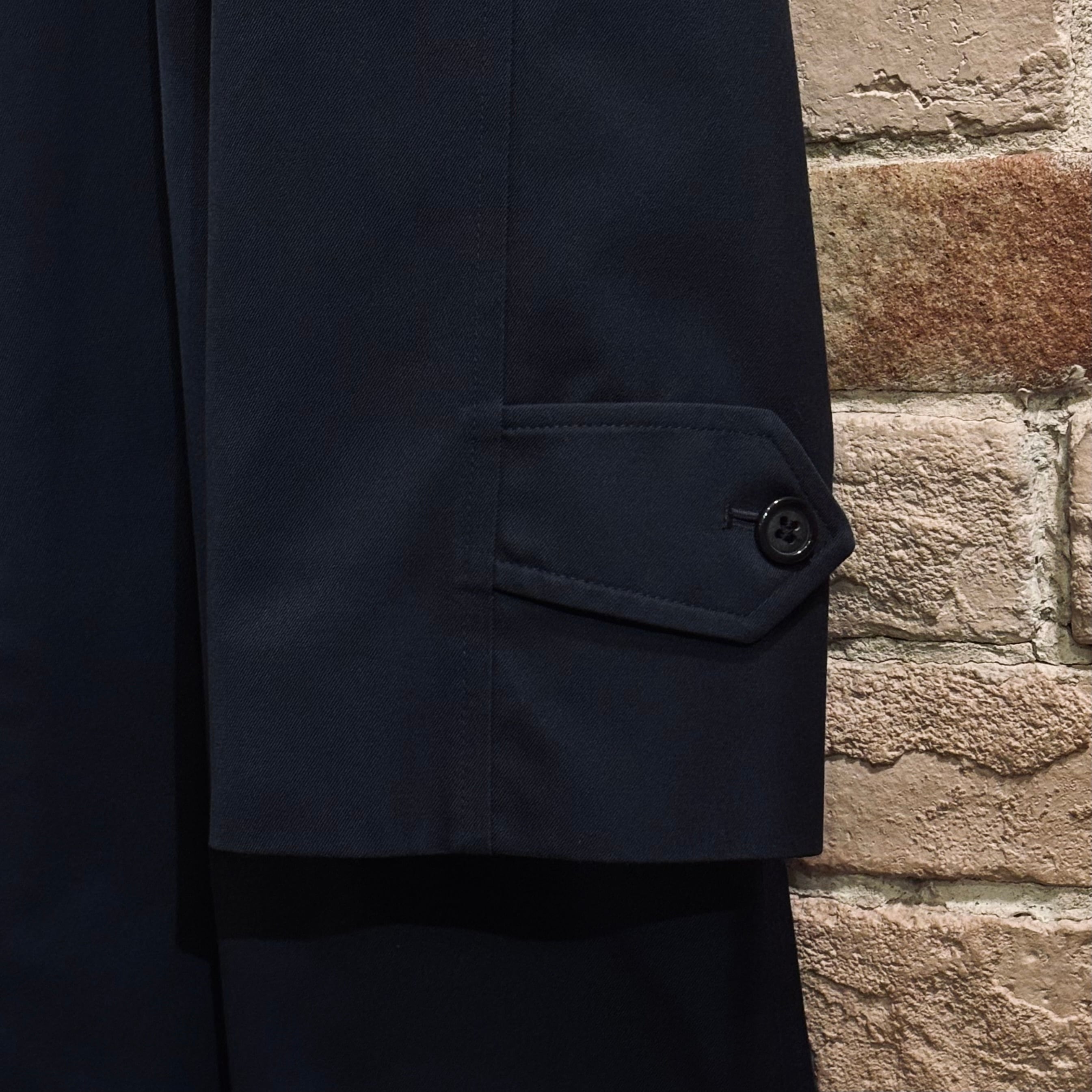 落ち着いたネイビーに小柄な方も着やすいスッキリとしたサイズ感のイングランド製ステンカラーコート。