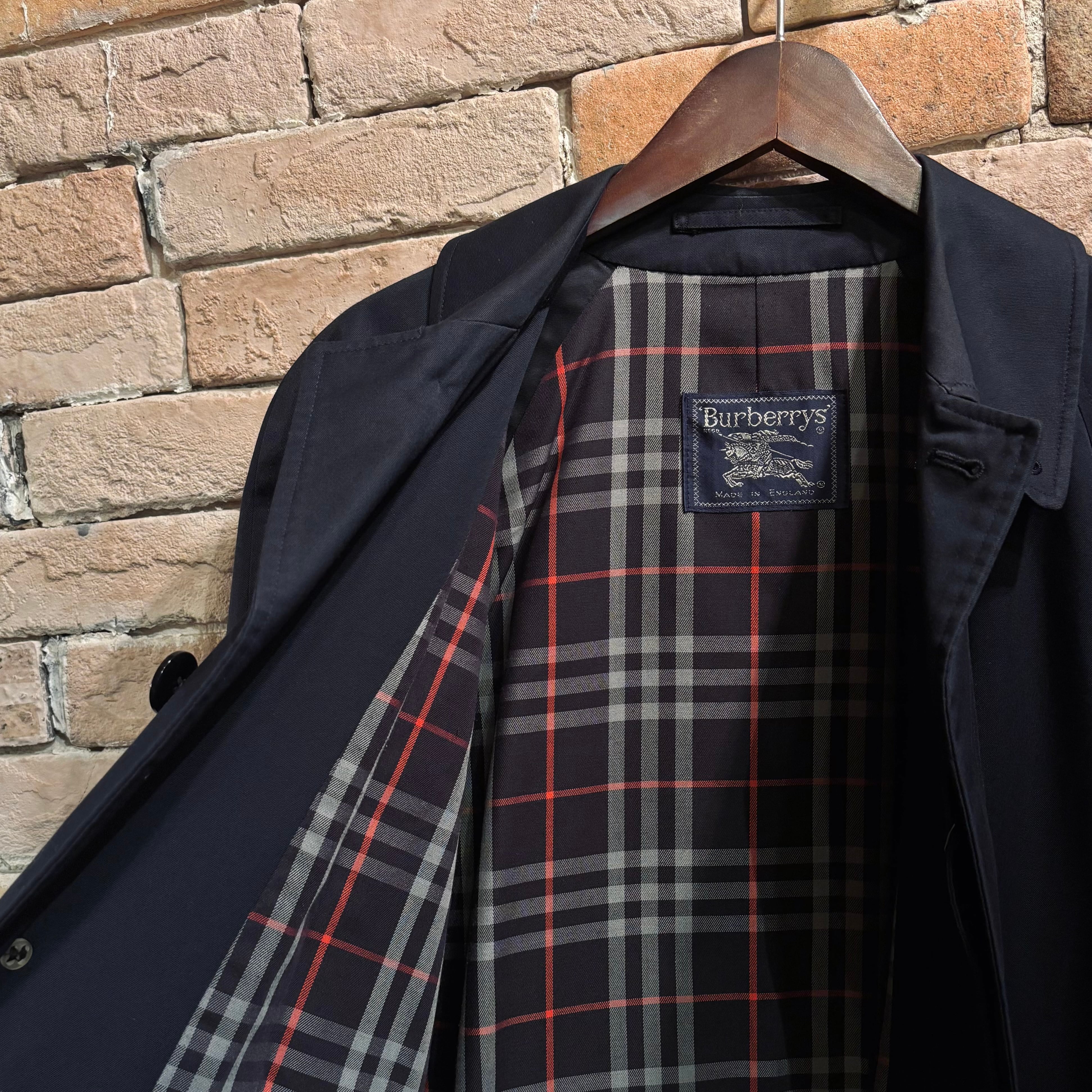 Burberry サイズ44(UK34) ステンカラーコート ネイビー バーバリー イングランド製