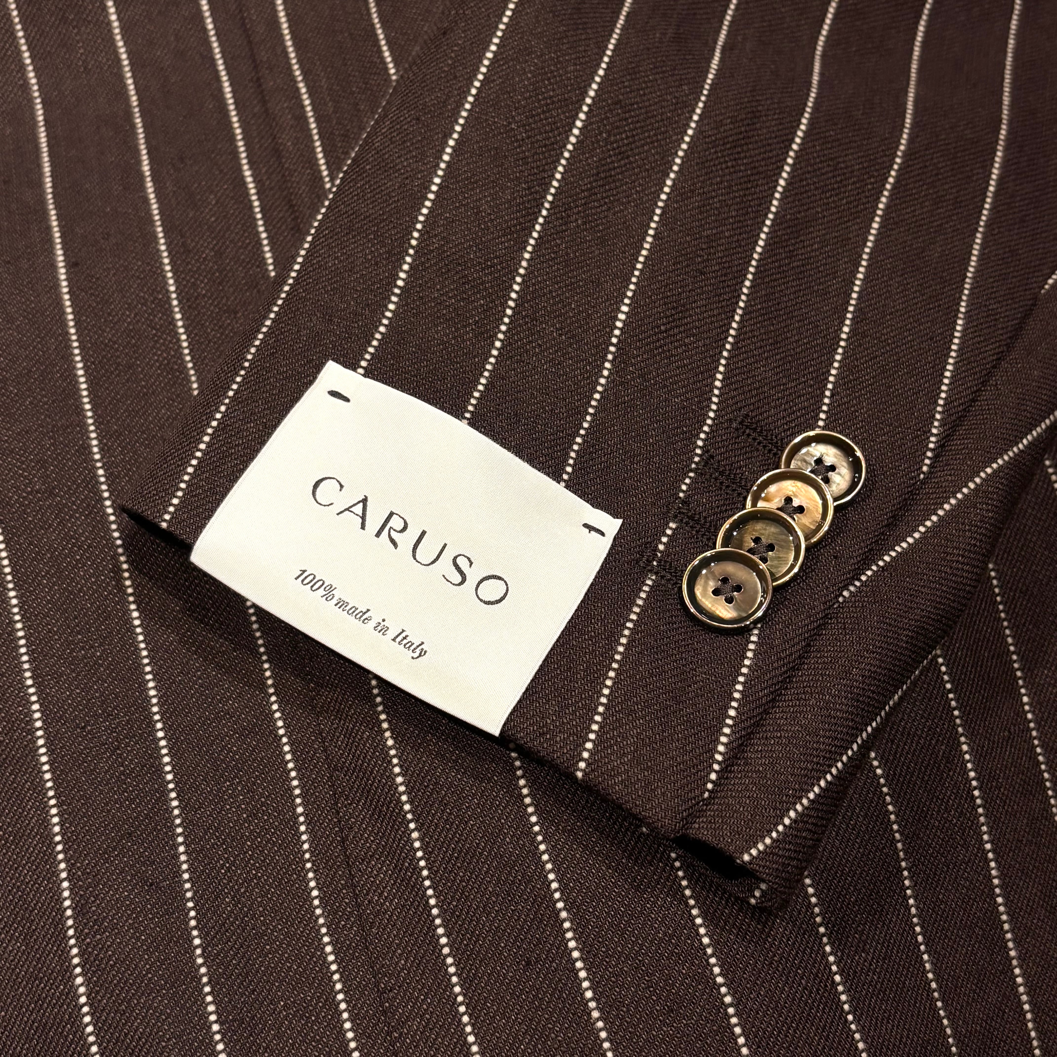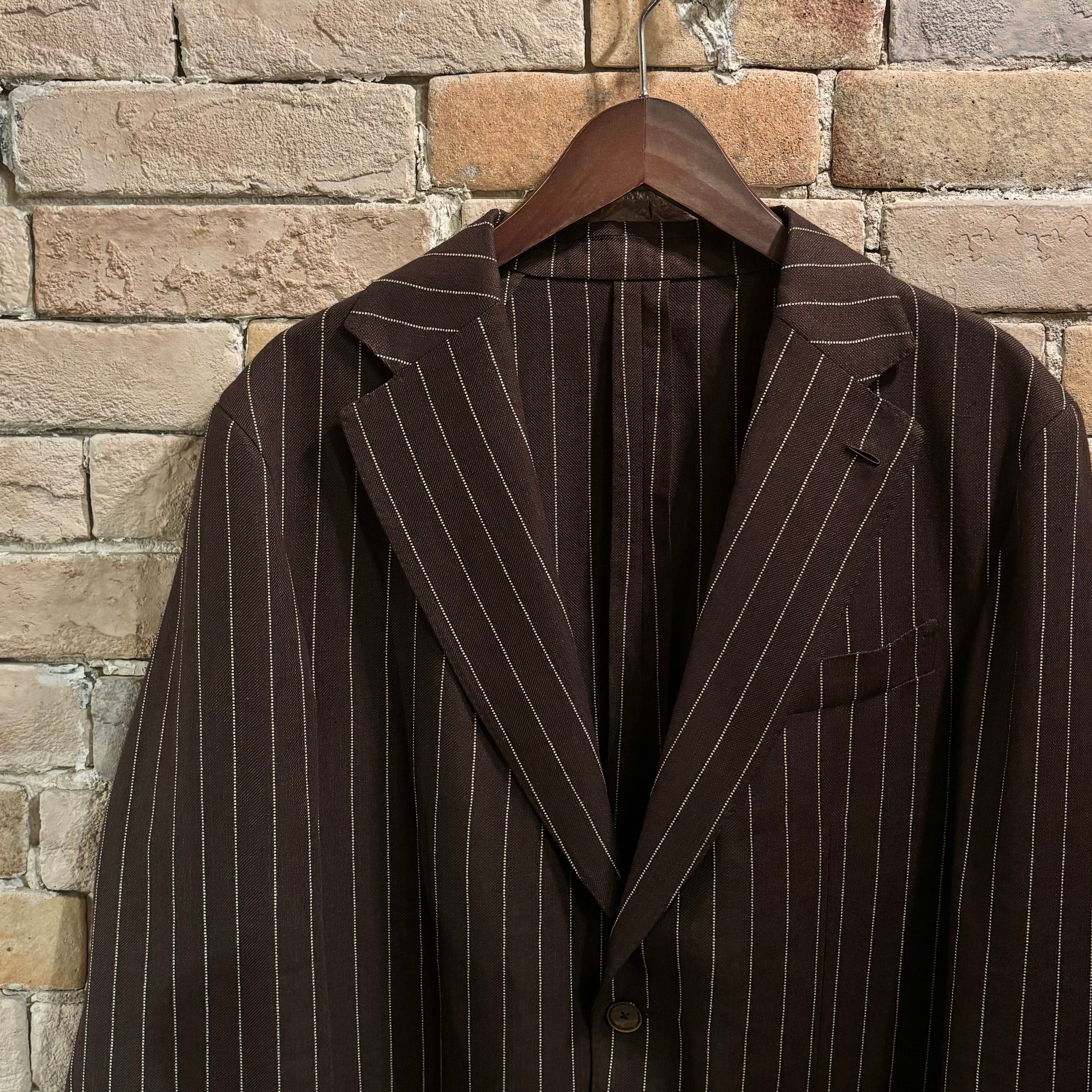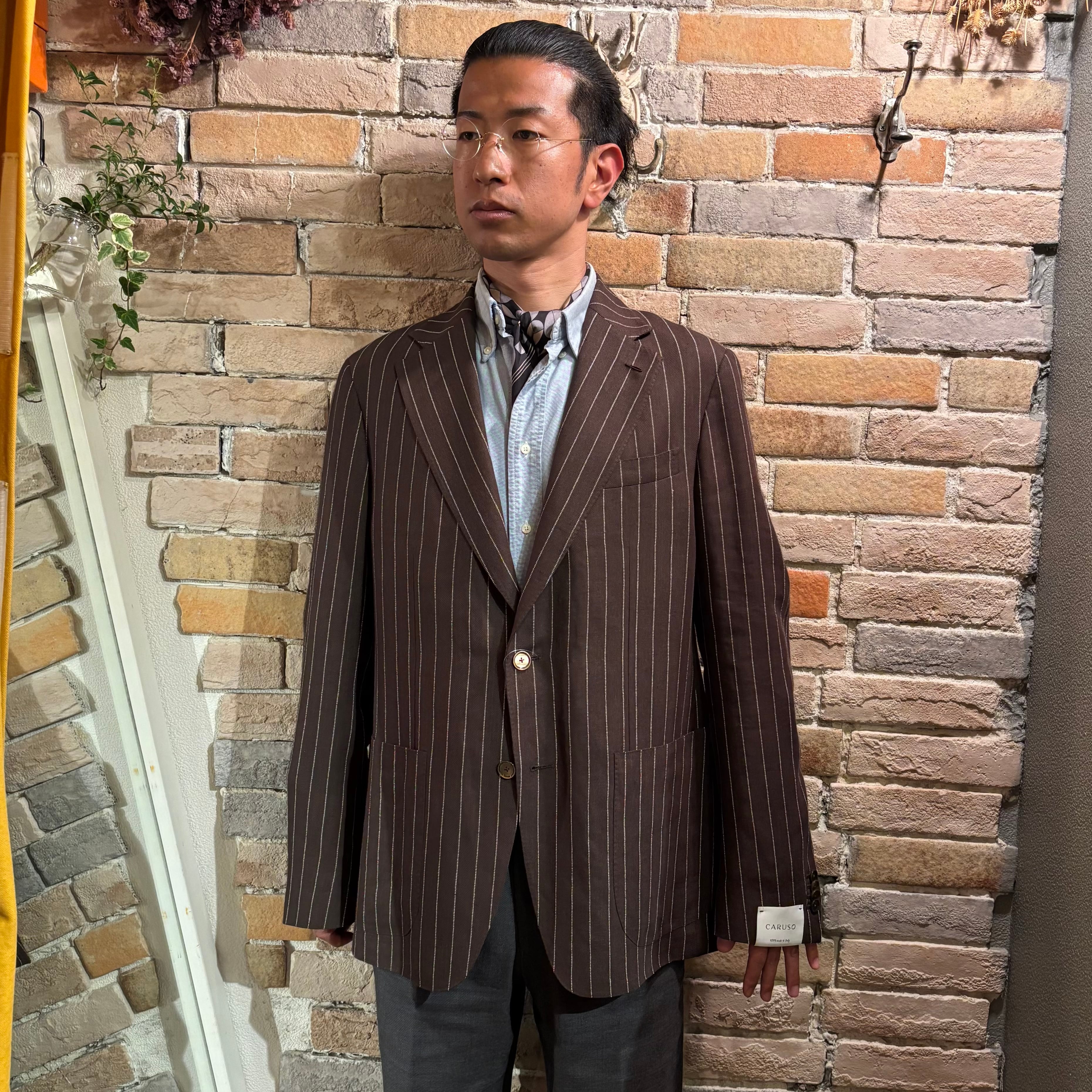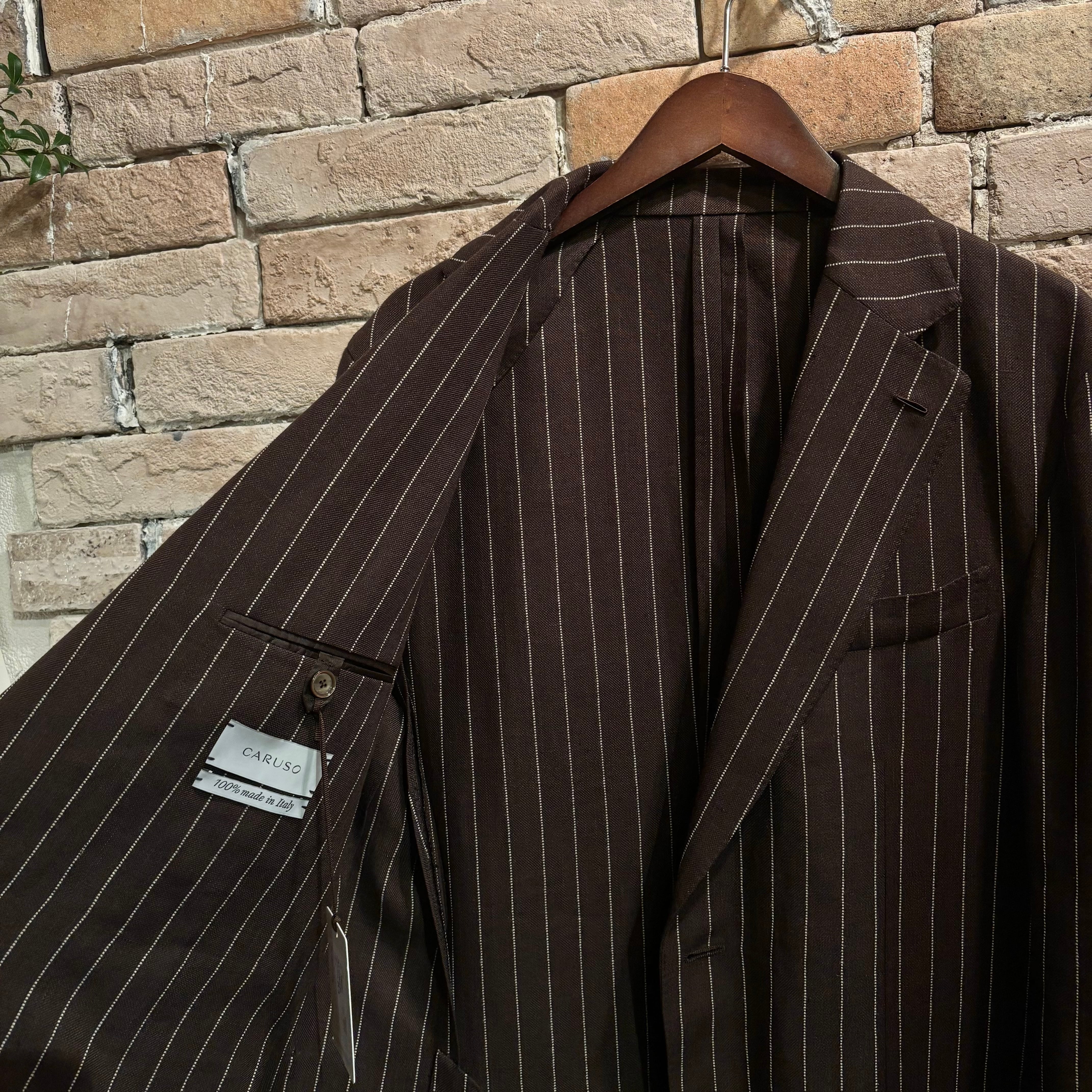 Caruso 未使用品 サイズ54 リネン×ウール×コットン 三者混ジャケット 「butterfly」 ブラウンストライプ イタリア製 カルーゾ