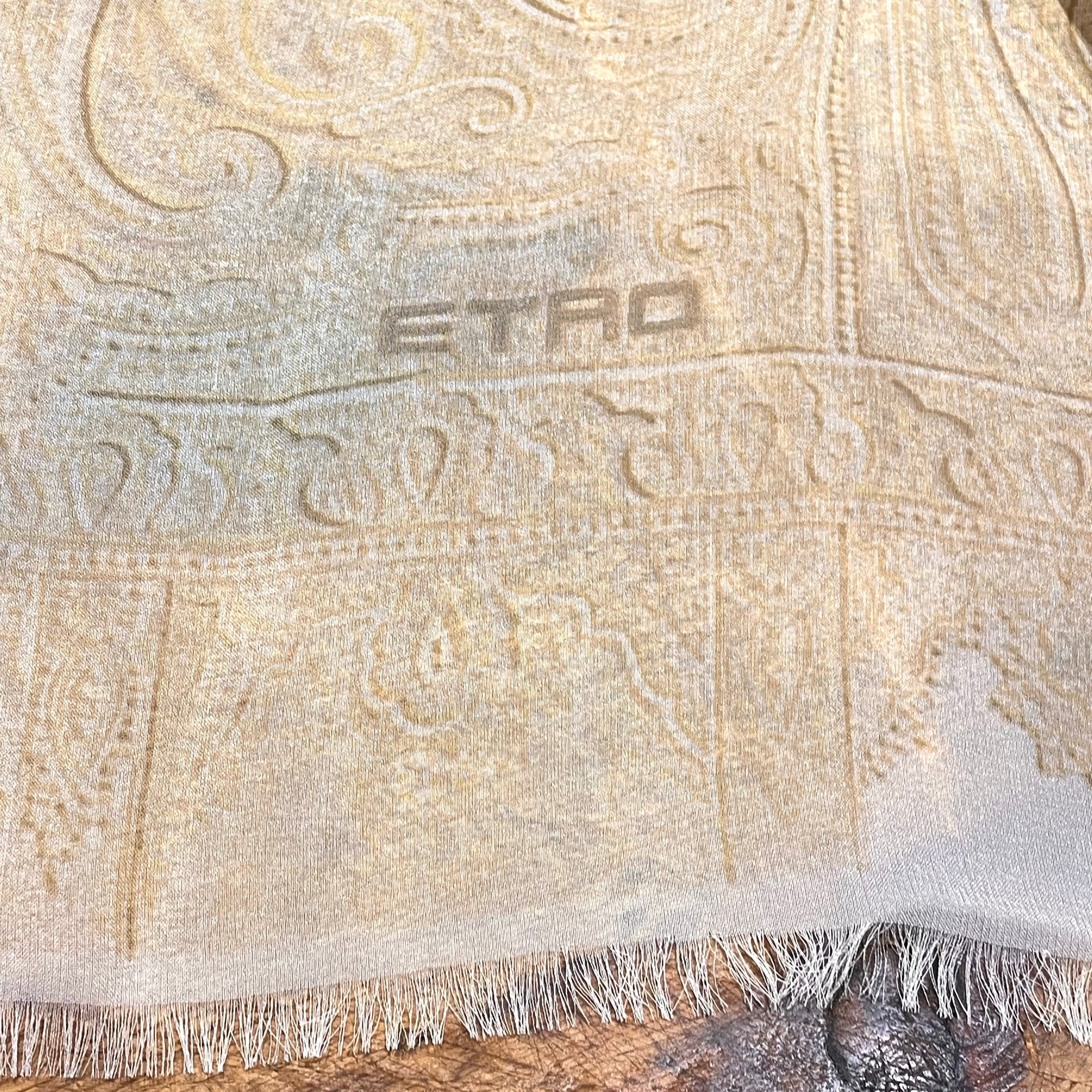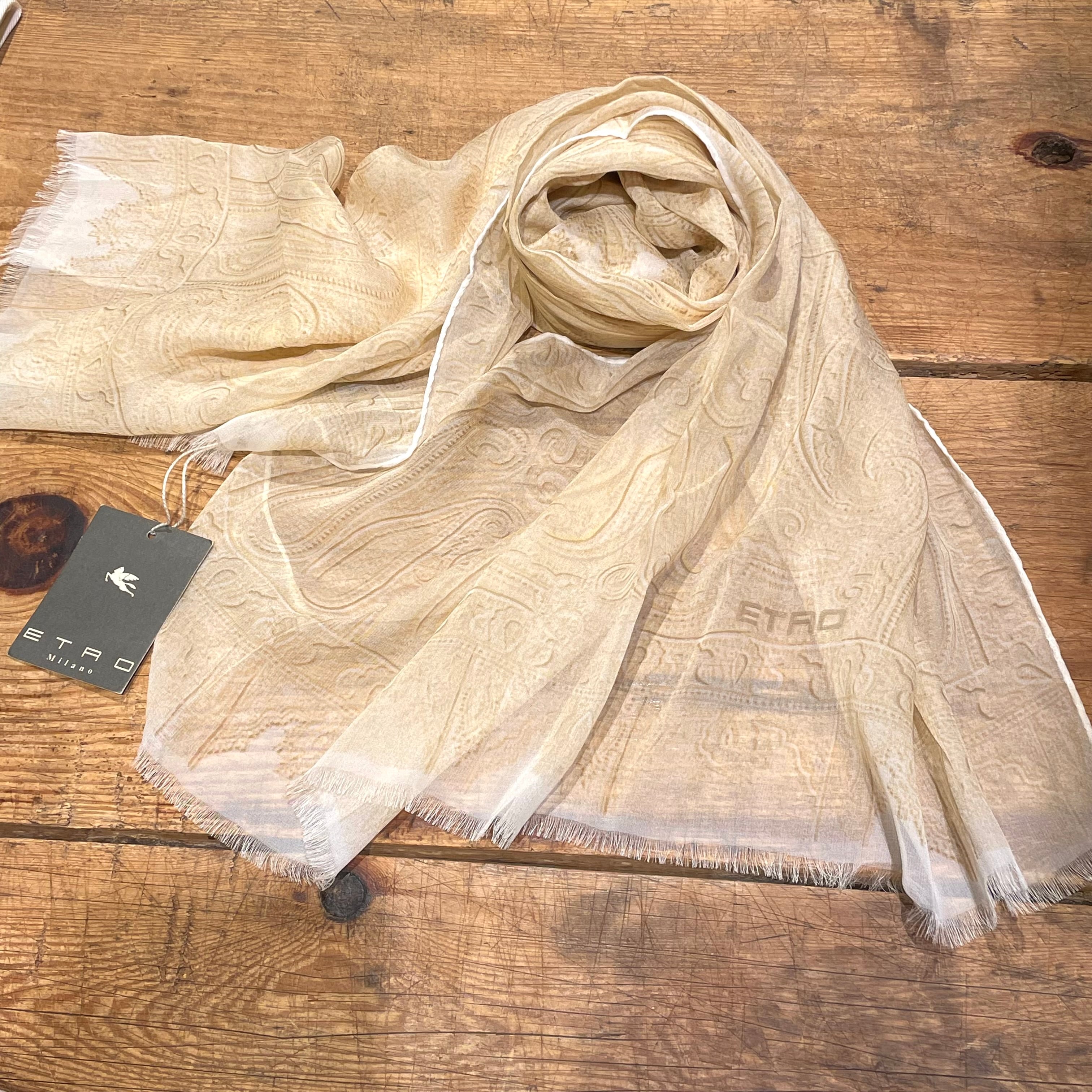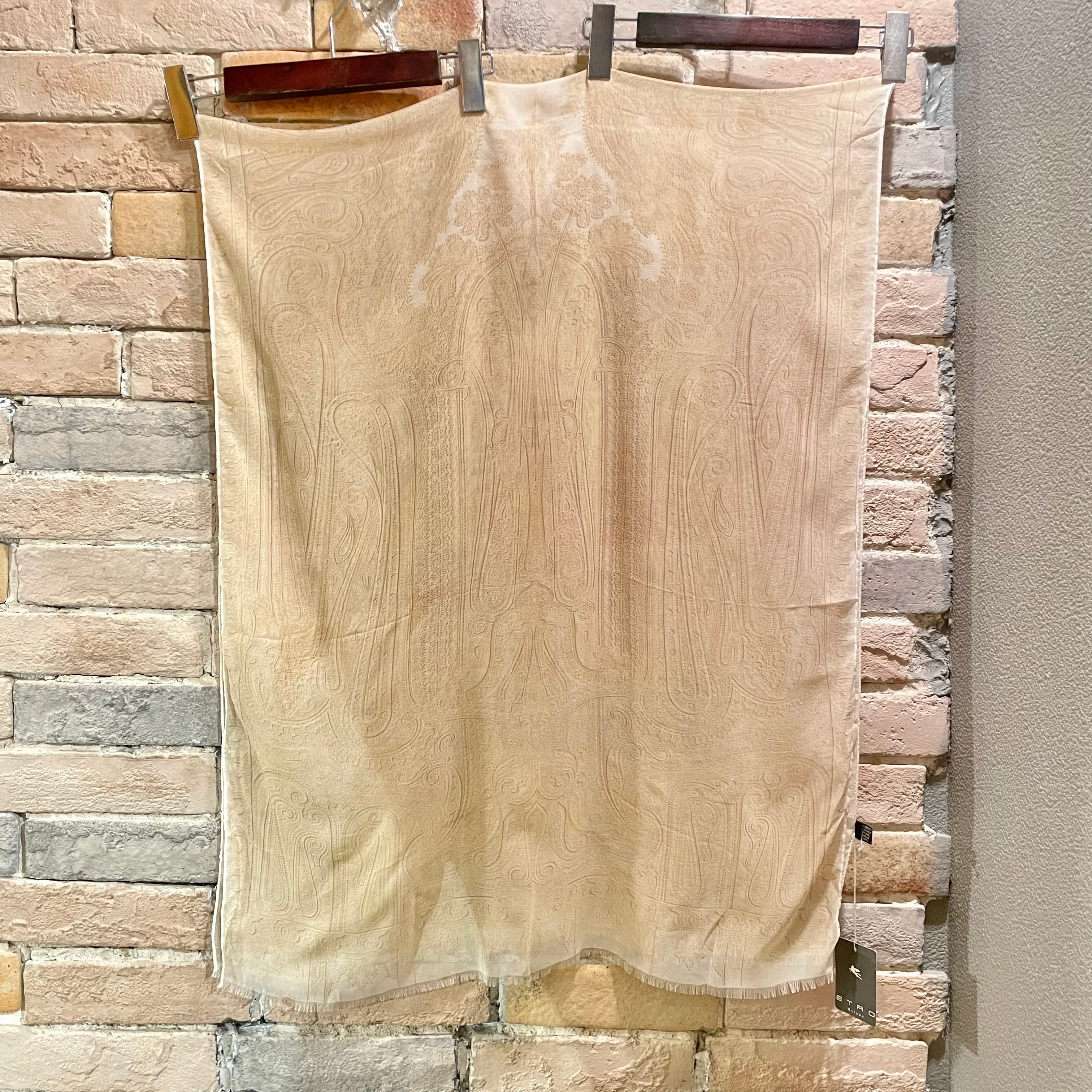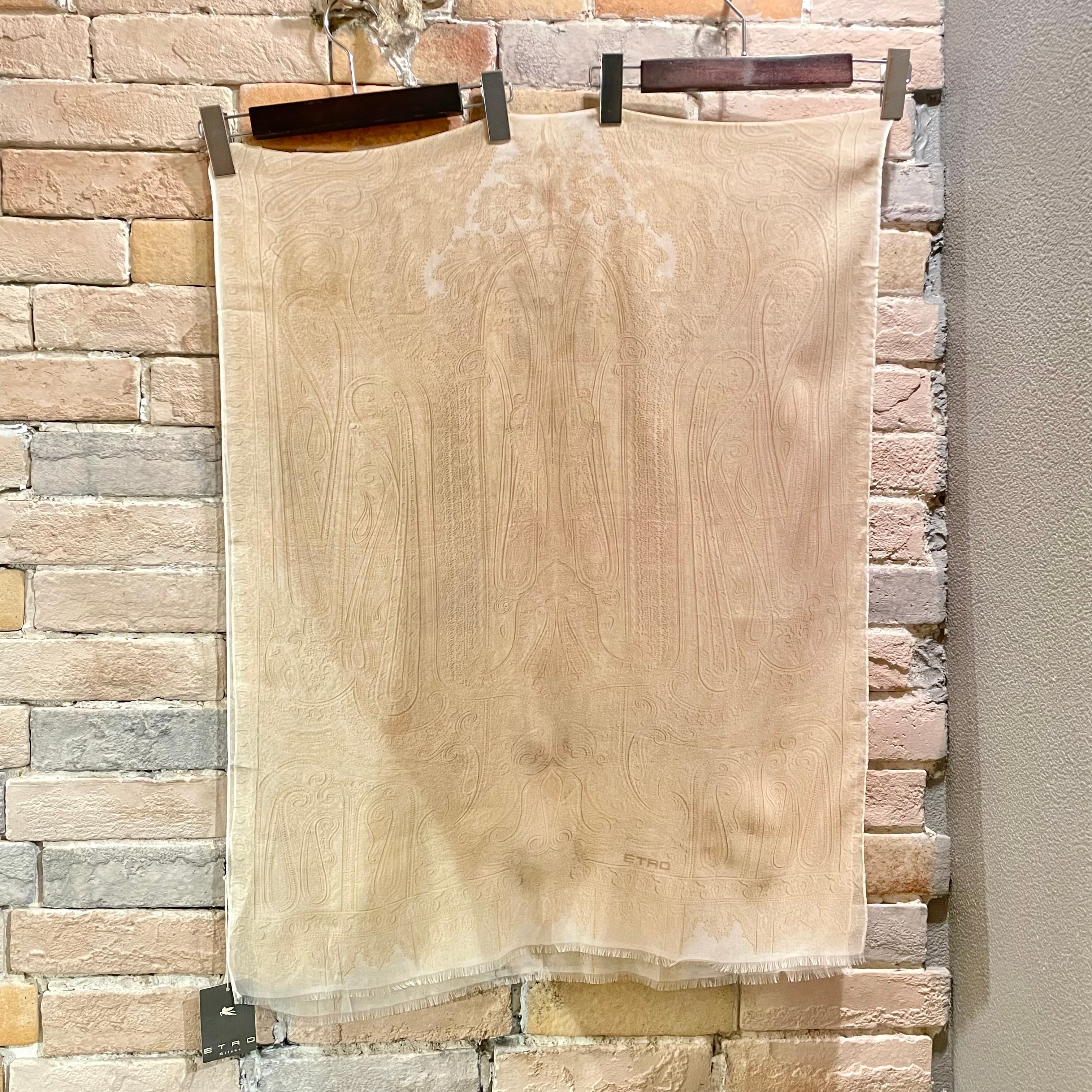 ETRO "silk stole" cream 札付き イタリア製 シルク100% ペイズリー柄ストール シフォンスカーフ エトロ クリーム