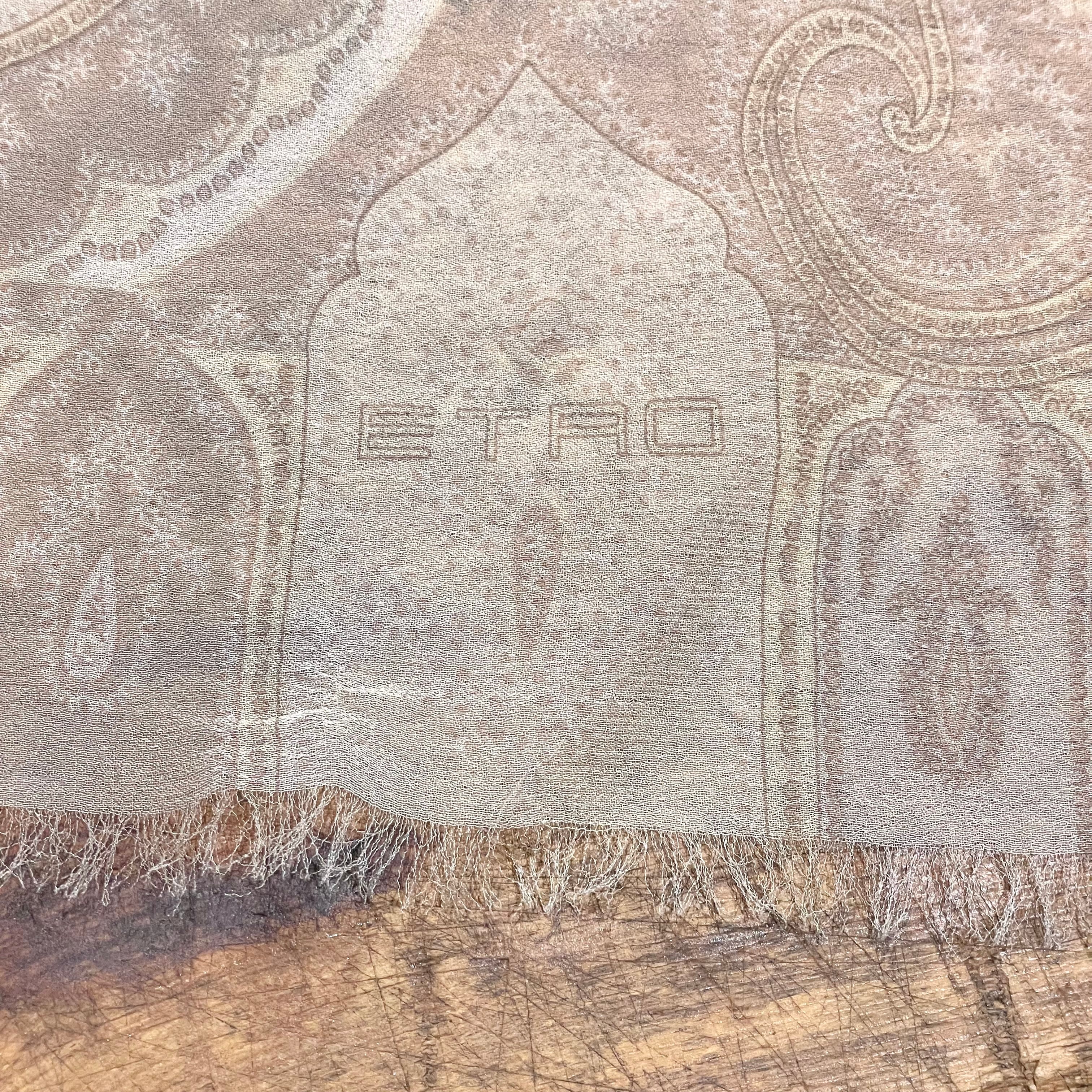 ETRO "silk stole"graybeige イタリア製 シルク100% ペイズリー柄ストール シフォンスカーフ エトロ グレーベージュ