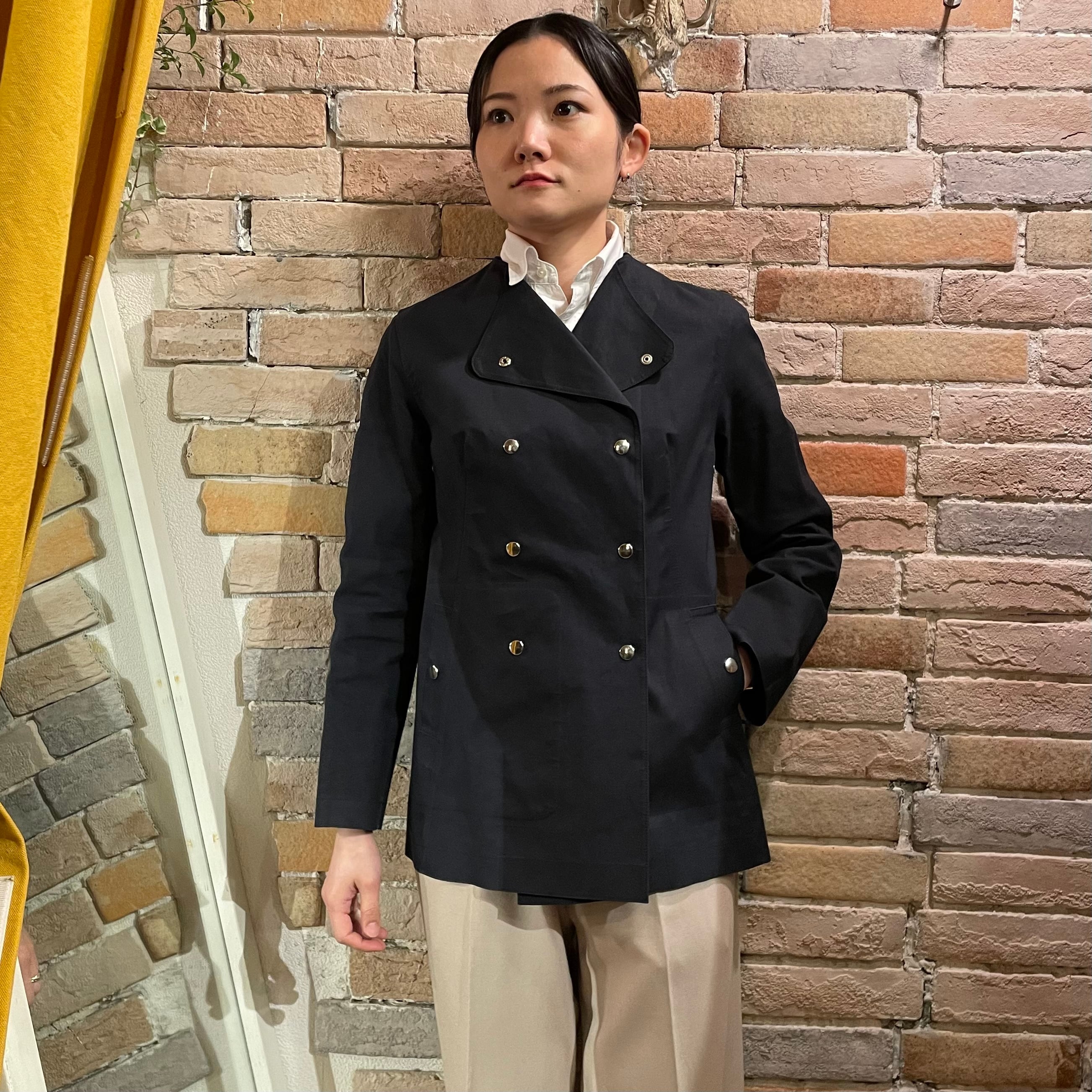 襟は取り外しができ、コーディネートに合わせてノーカラーで着ることもできます。