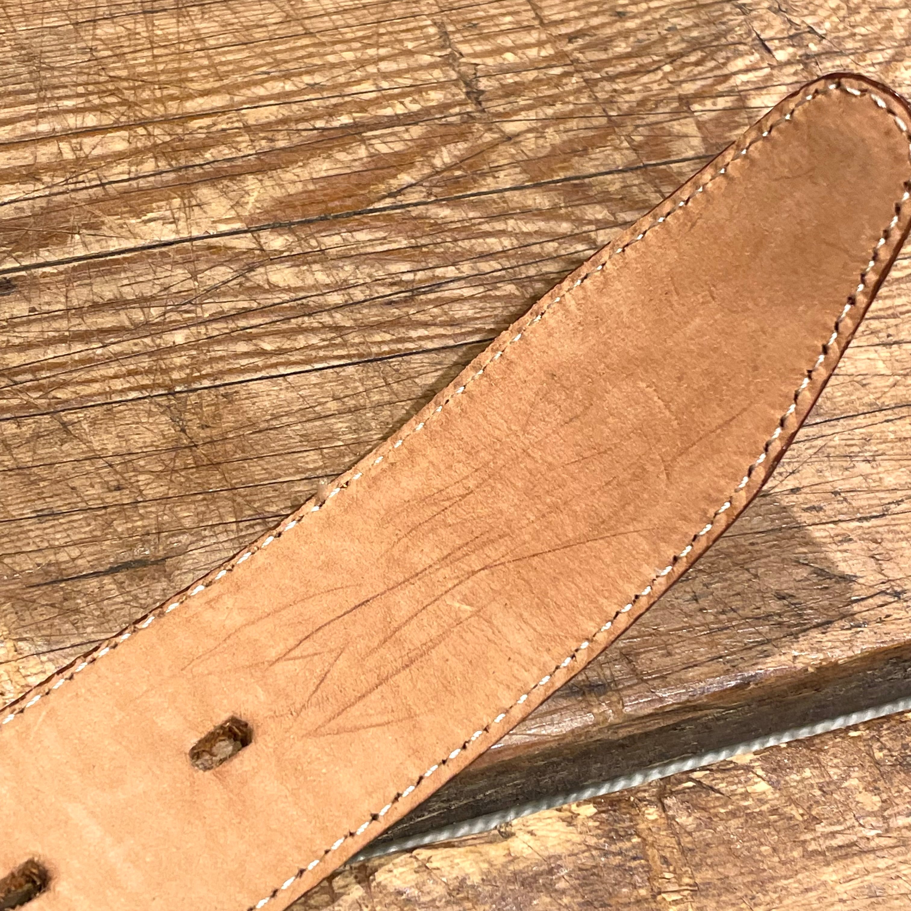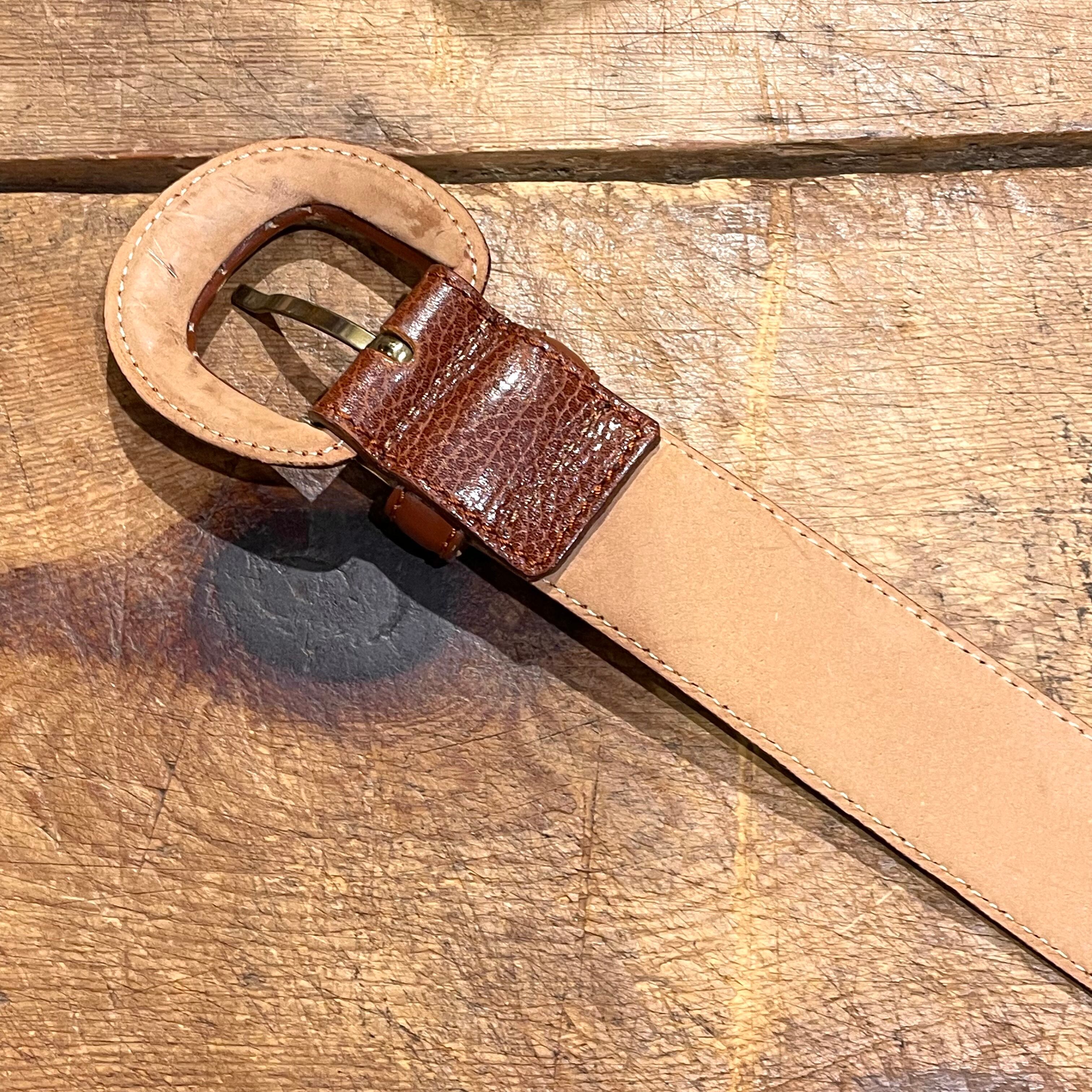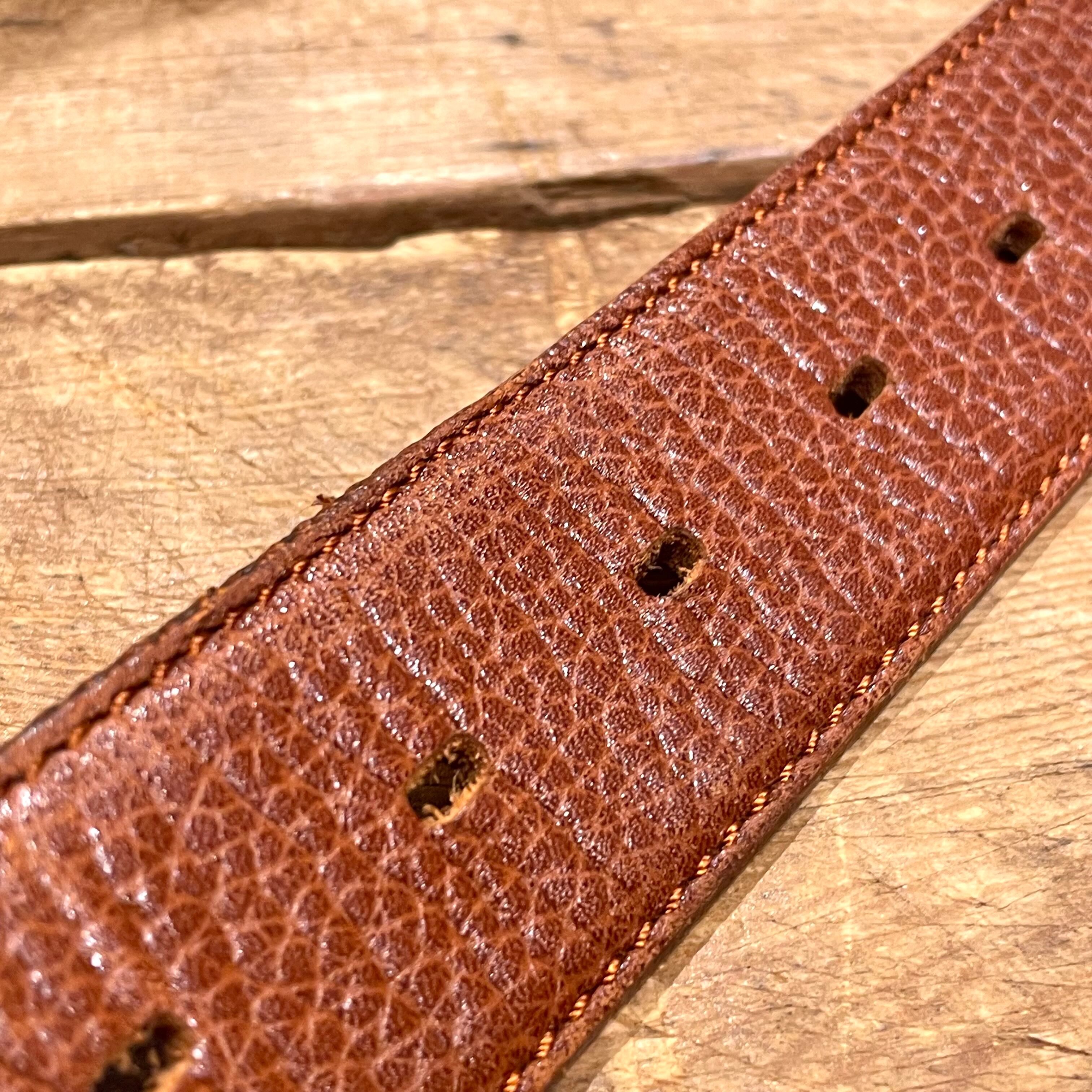 バックルとループはスムースレザー、ベルトはシボ革のコンビネーション。