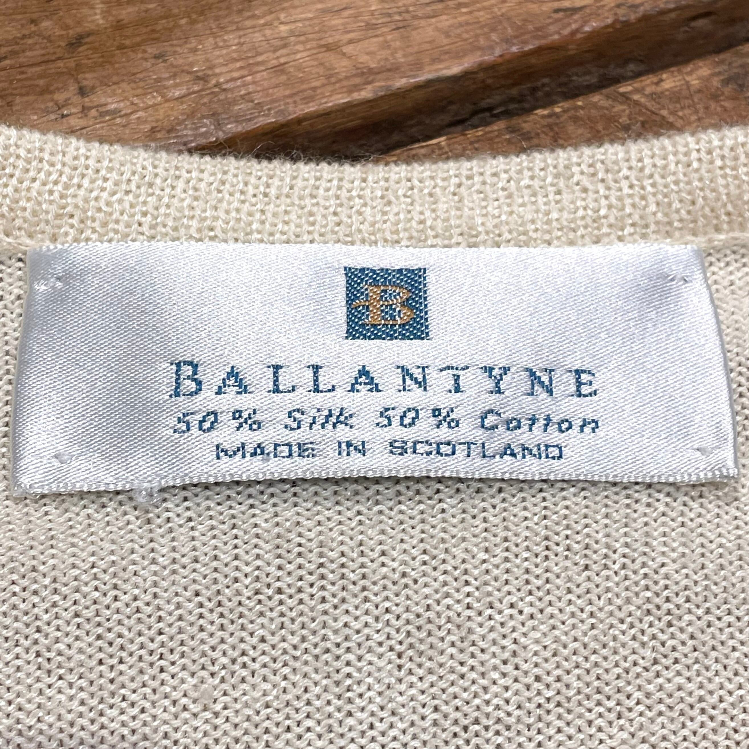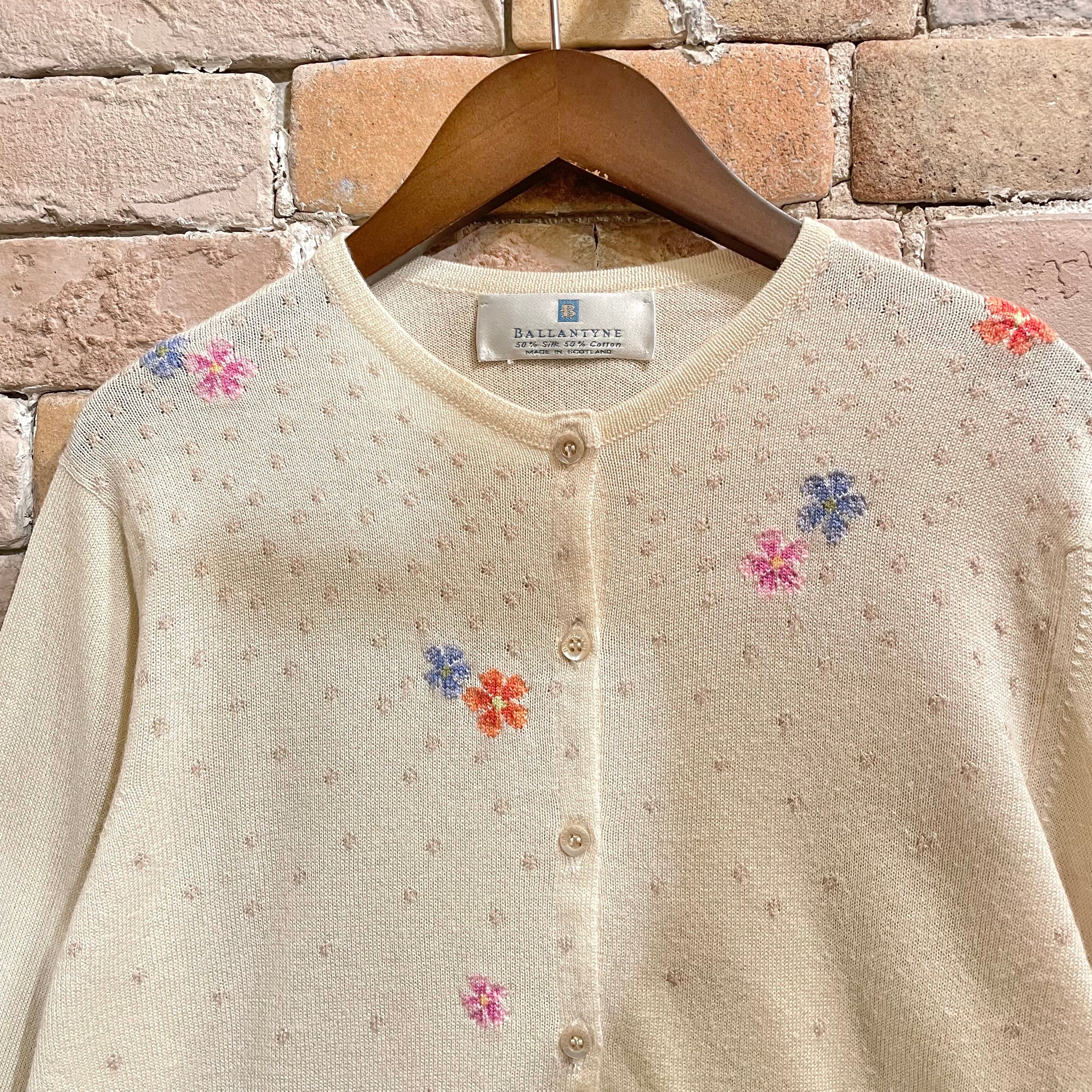 Ballantyne Ladies コットン50%シルク50% スコットランド製 クルーネックカーディガン バランタイン 花柄