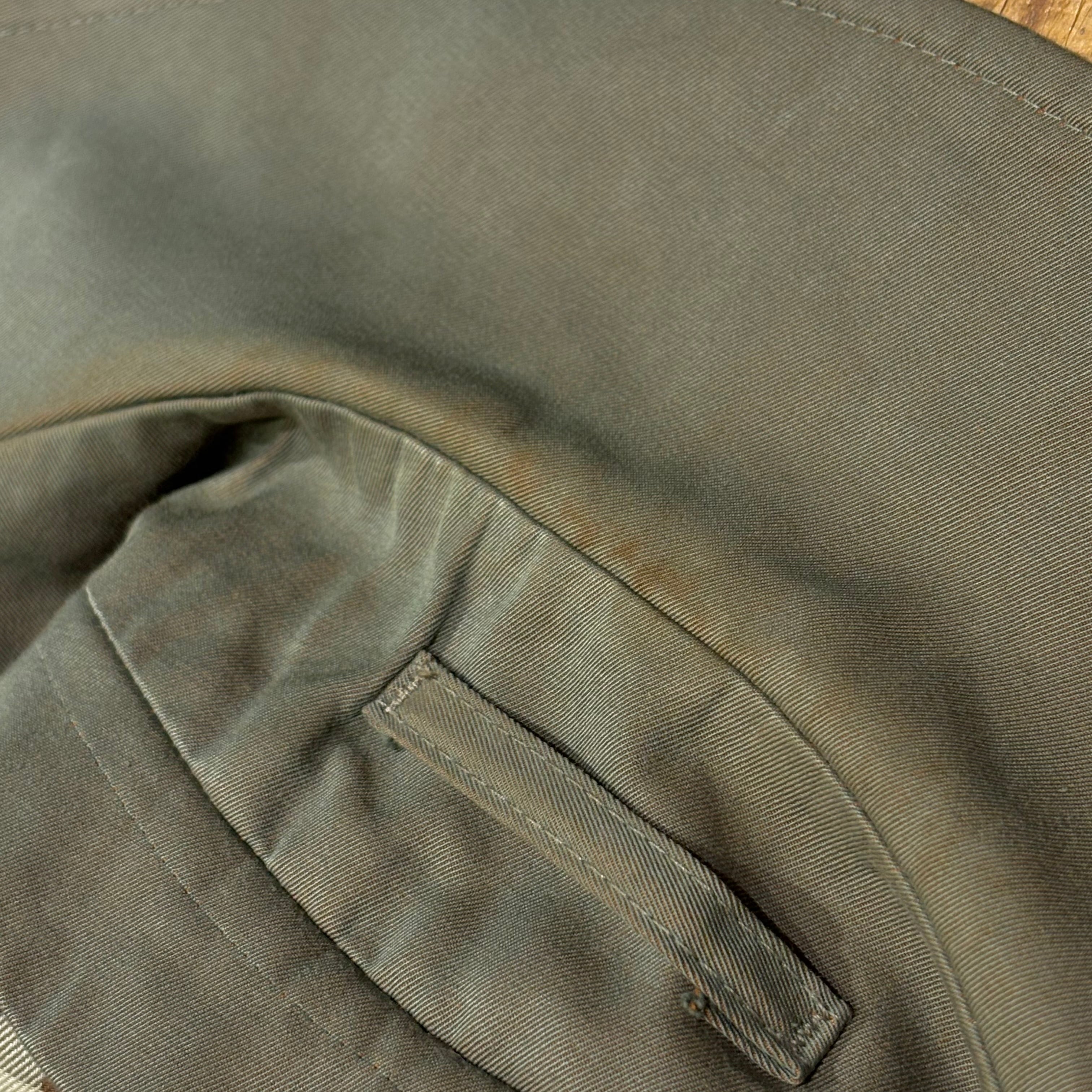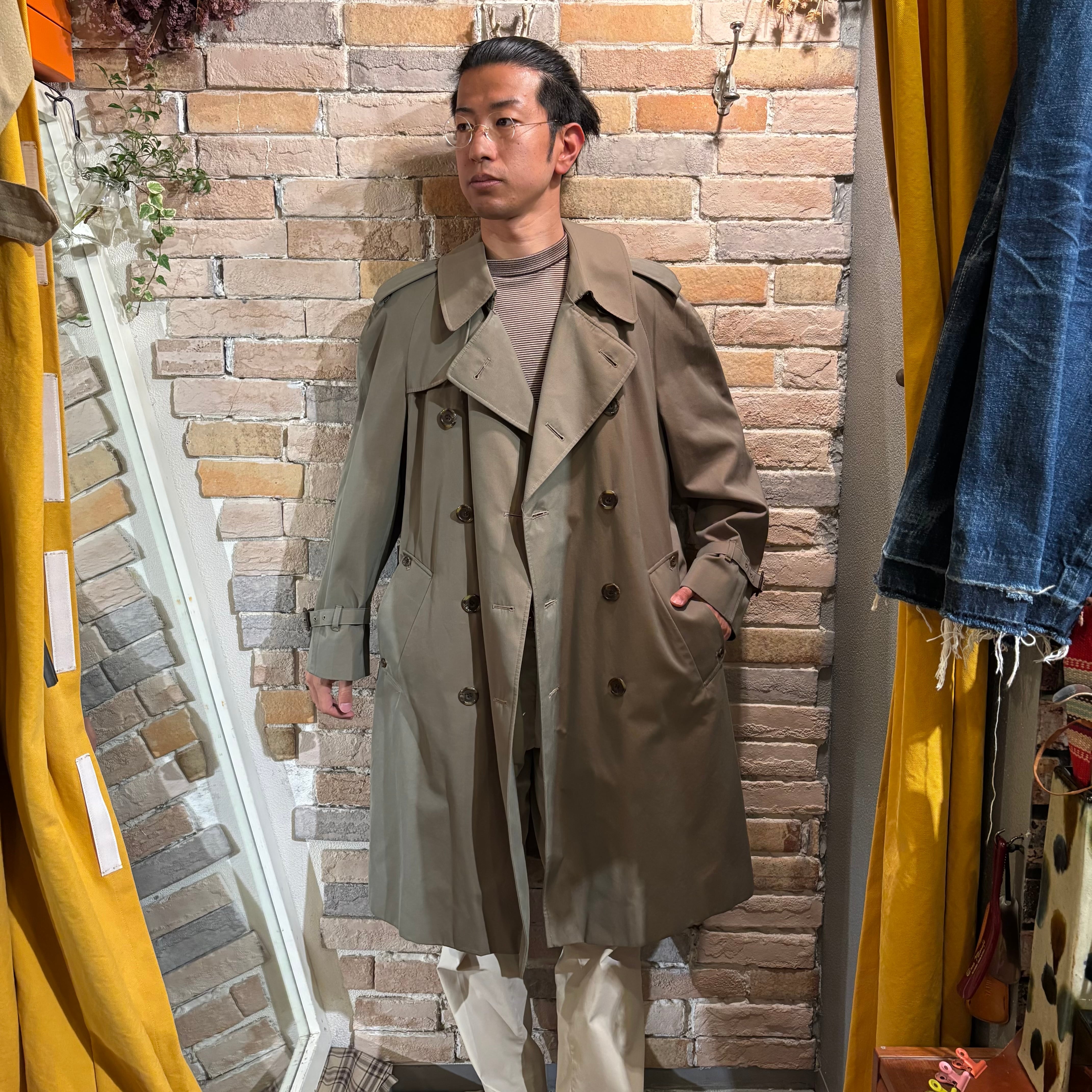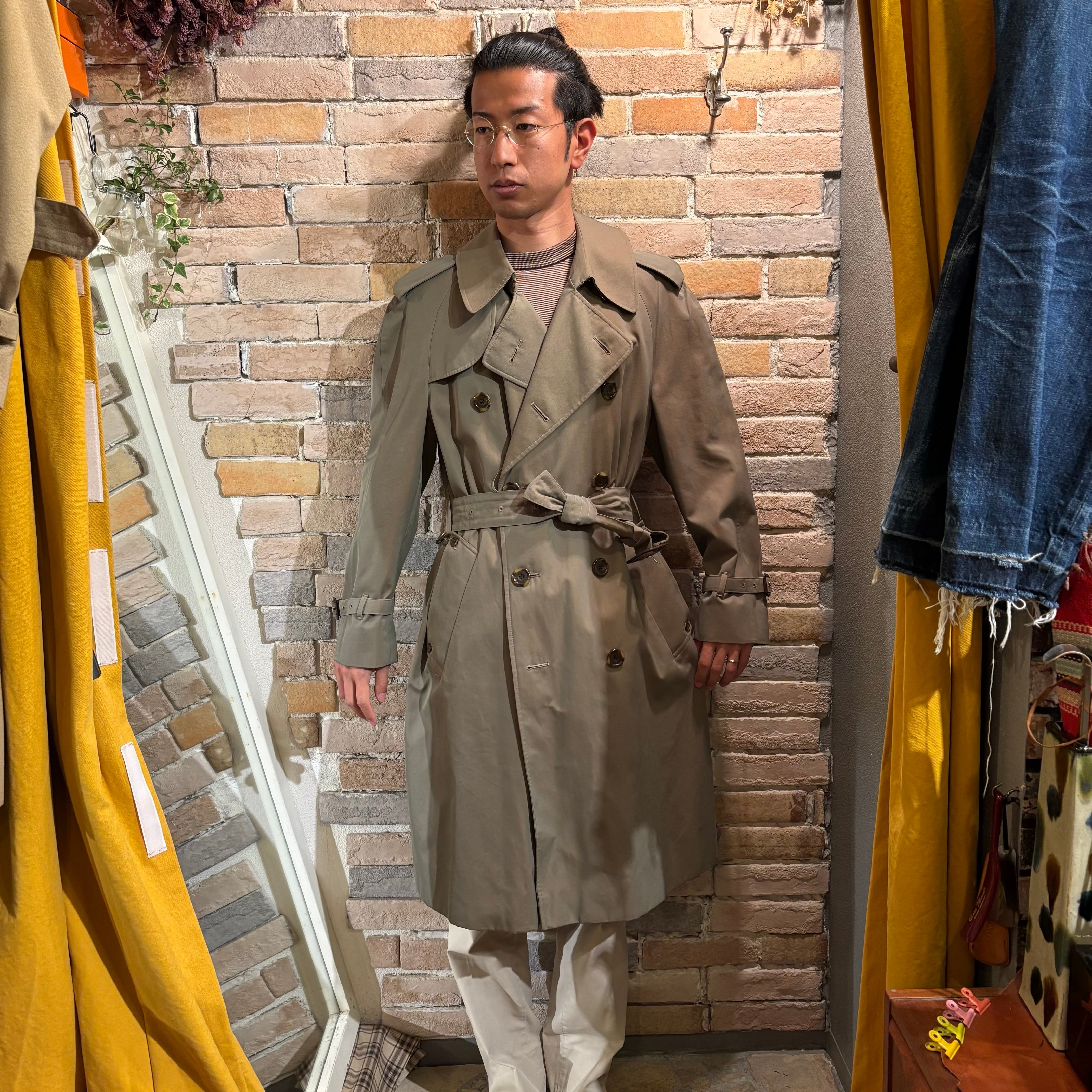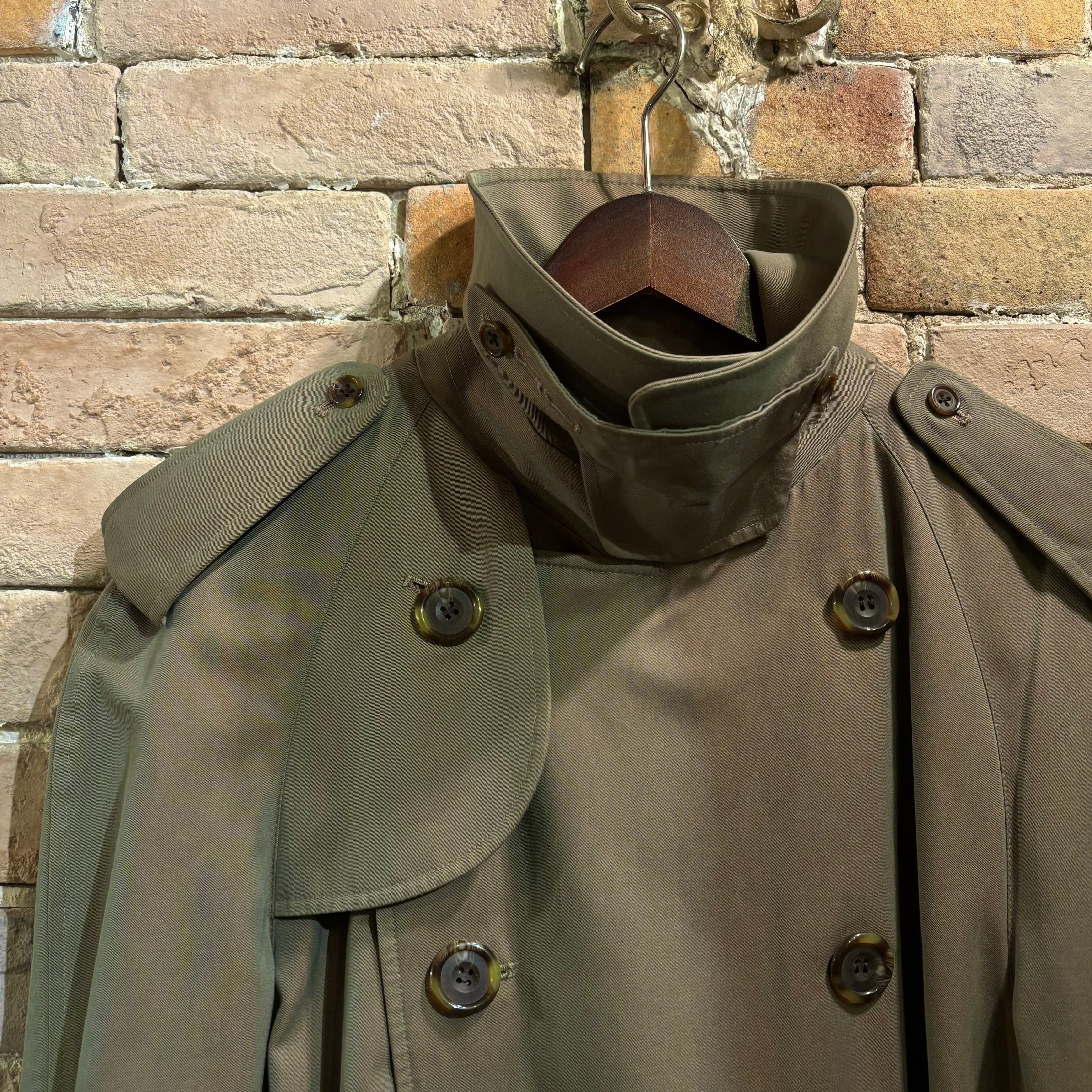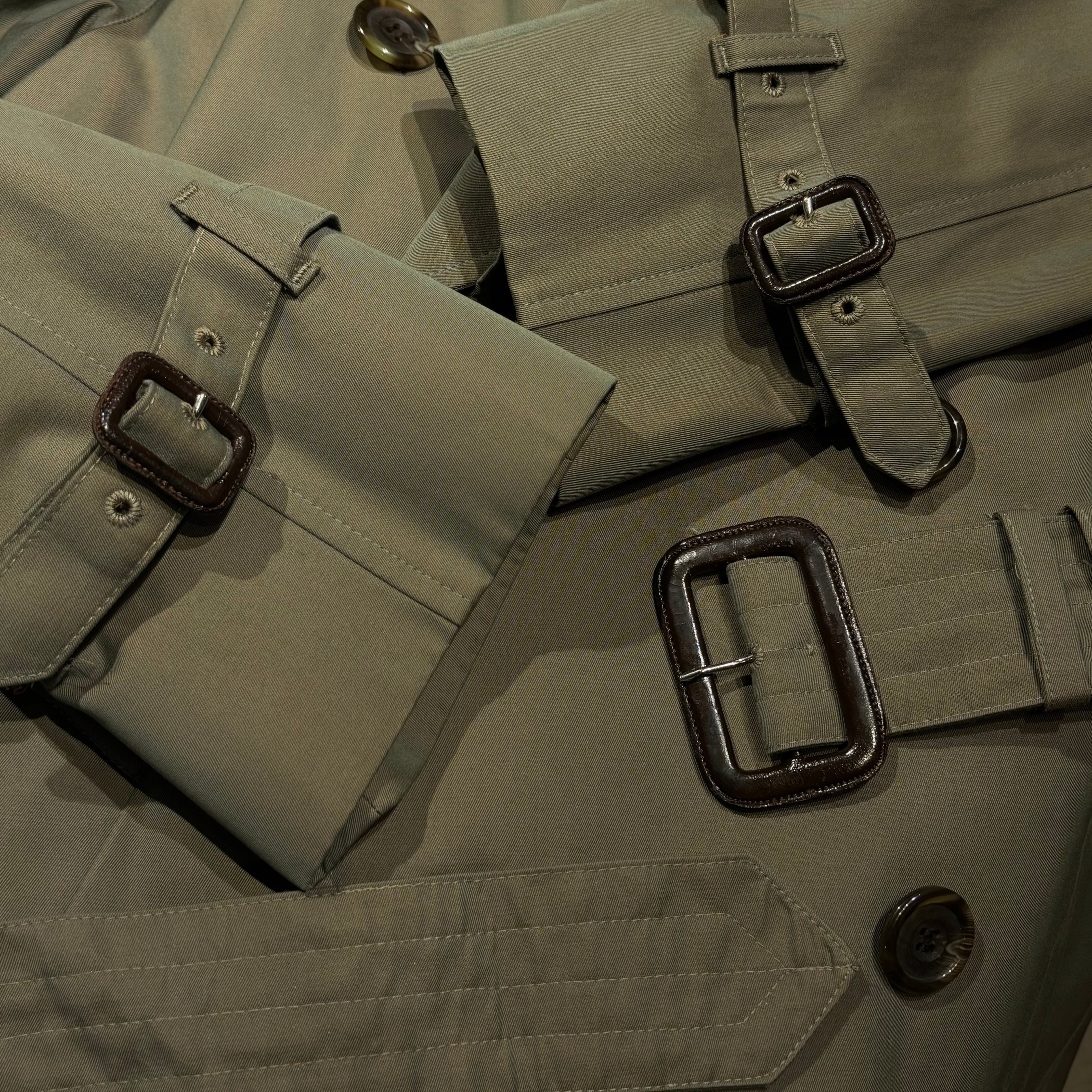 光沢感のあるコットン100%の緑玉虫色イングランド製80'sトレンチコート。