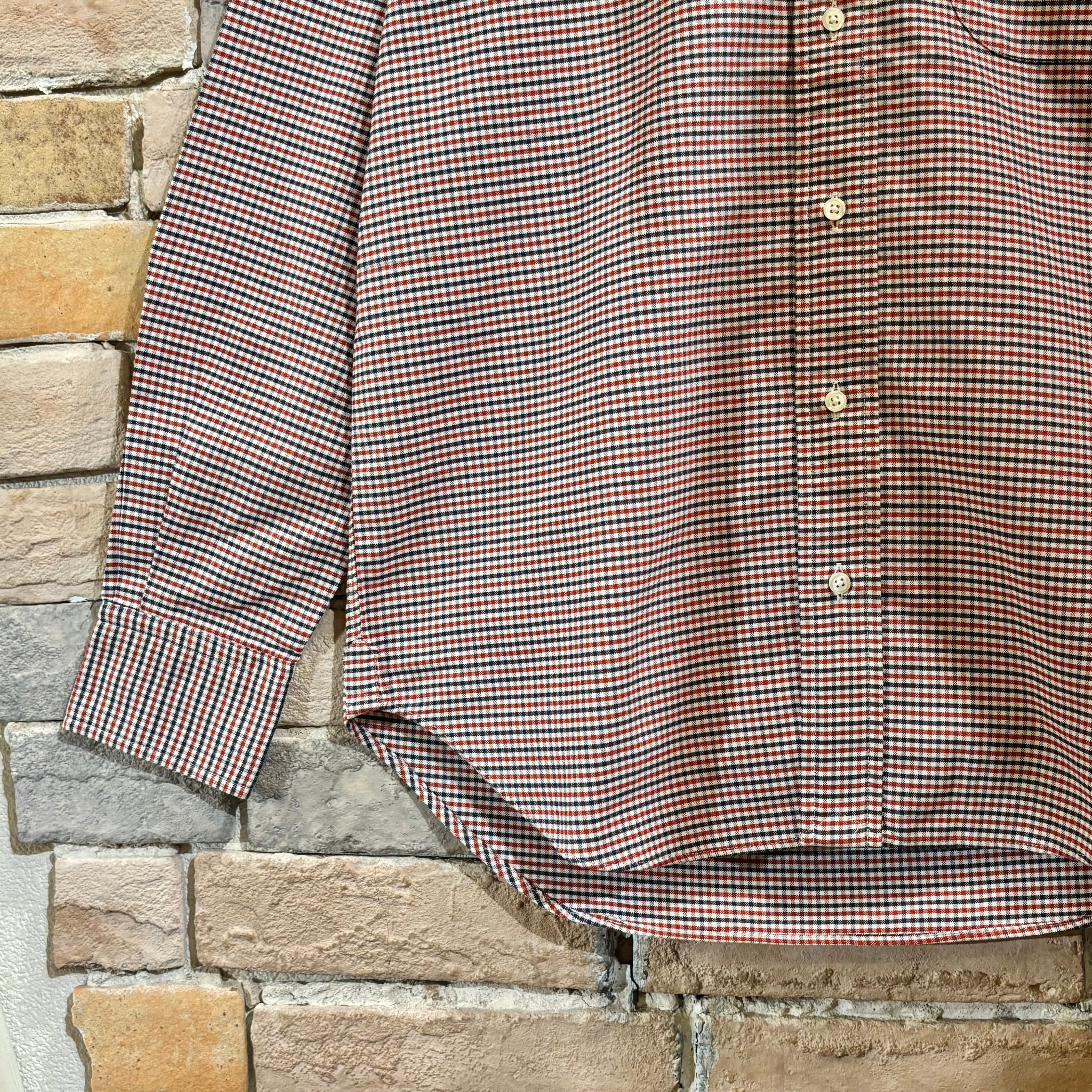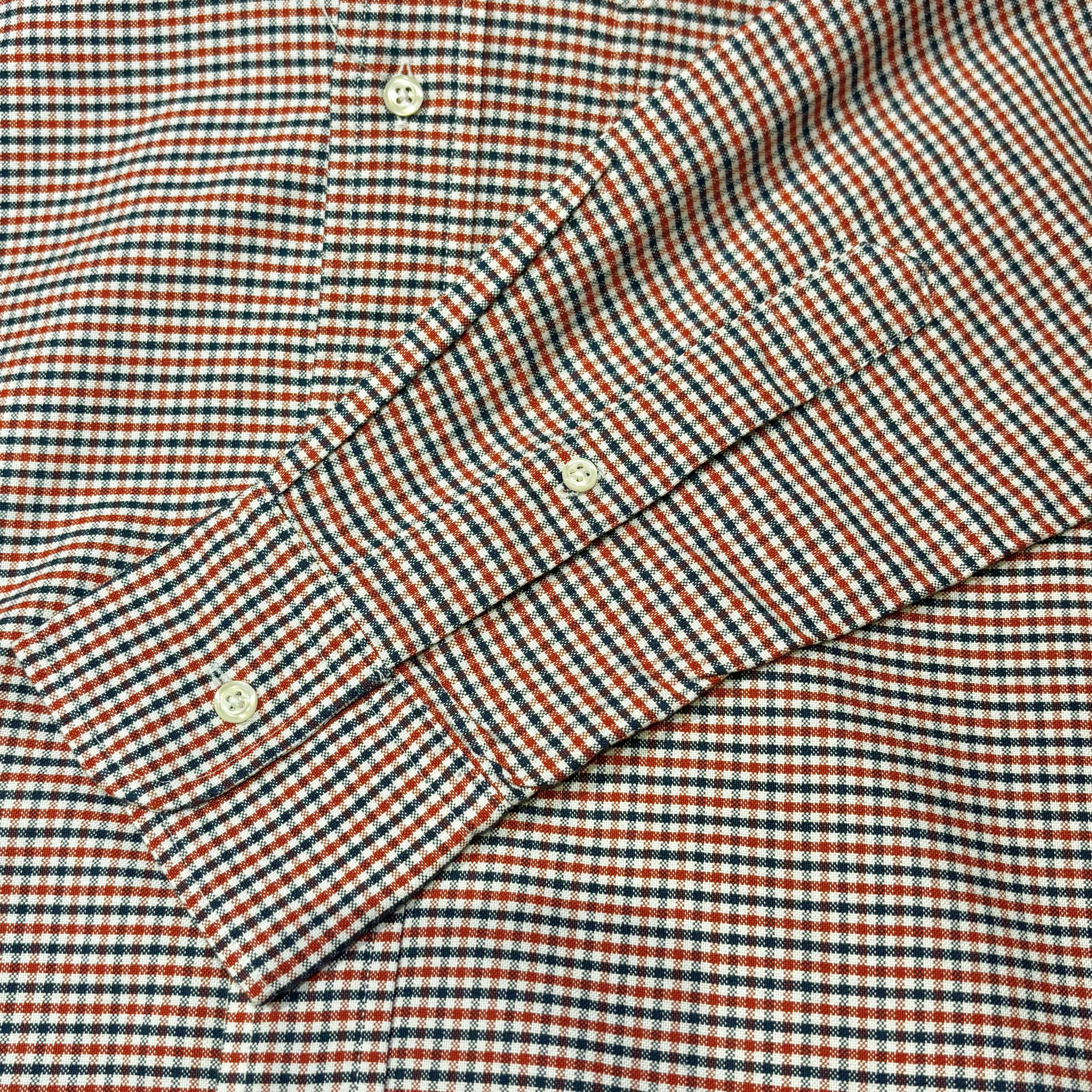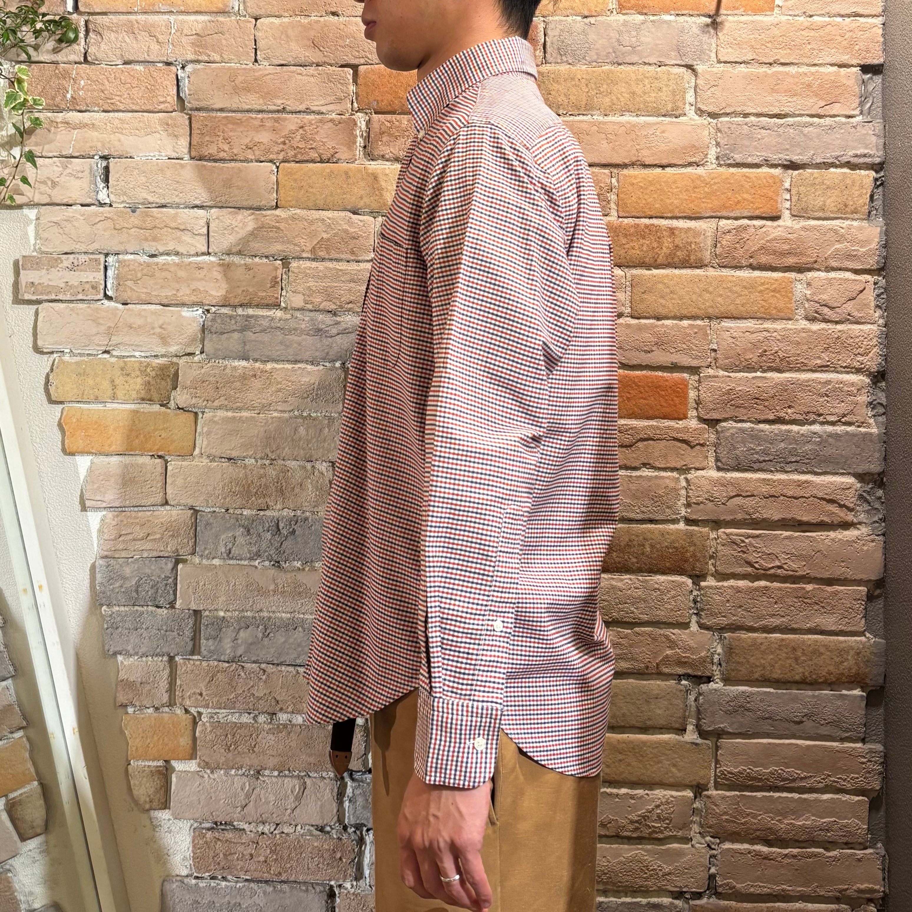 軽快な色合いのチェック柄に程良くスッキリめのサイズ感が幅広いレイヤードに取り入れやすい、USA製ボタンダウンシャツ。