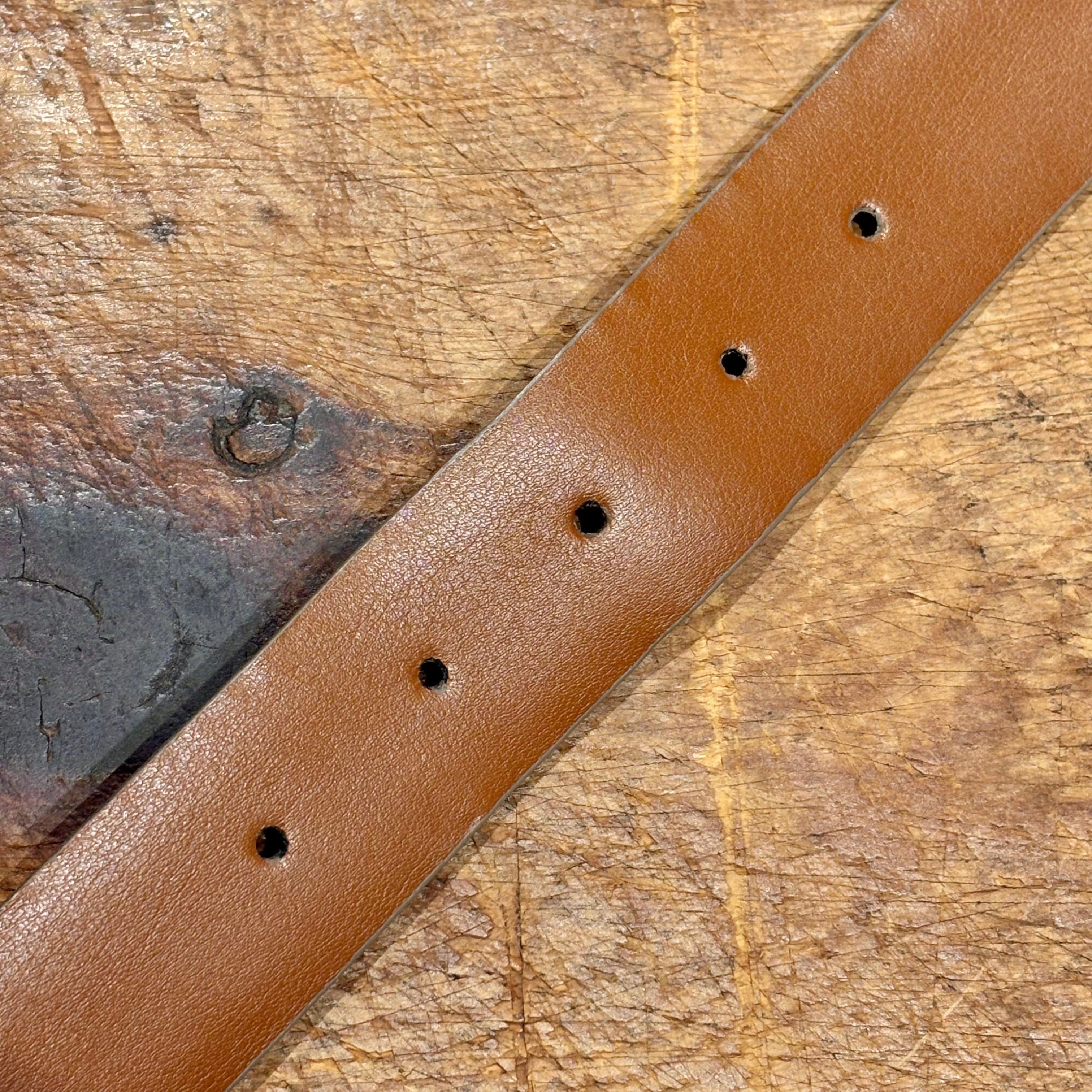 ※ 保管の際に付いたと見られるレザーの若干の癖、裏側の細かな点汚れがございます