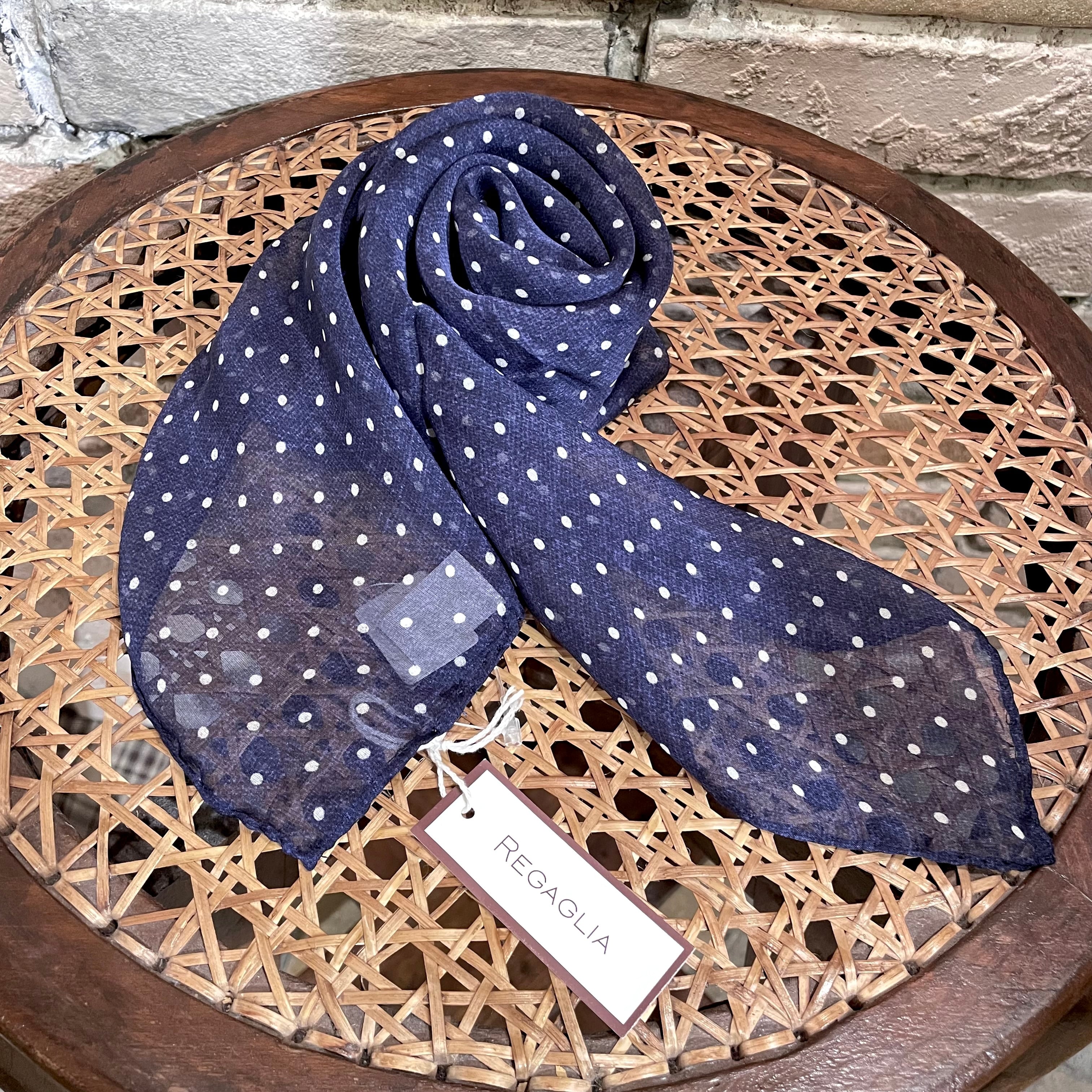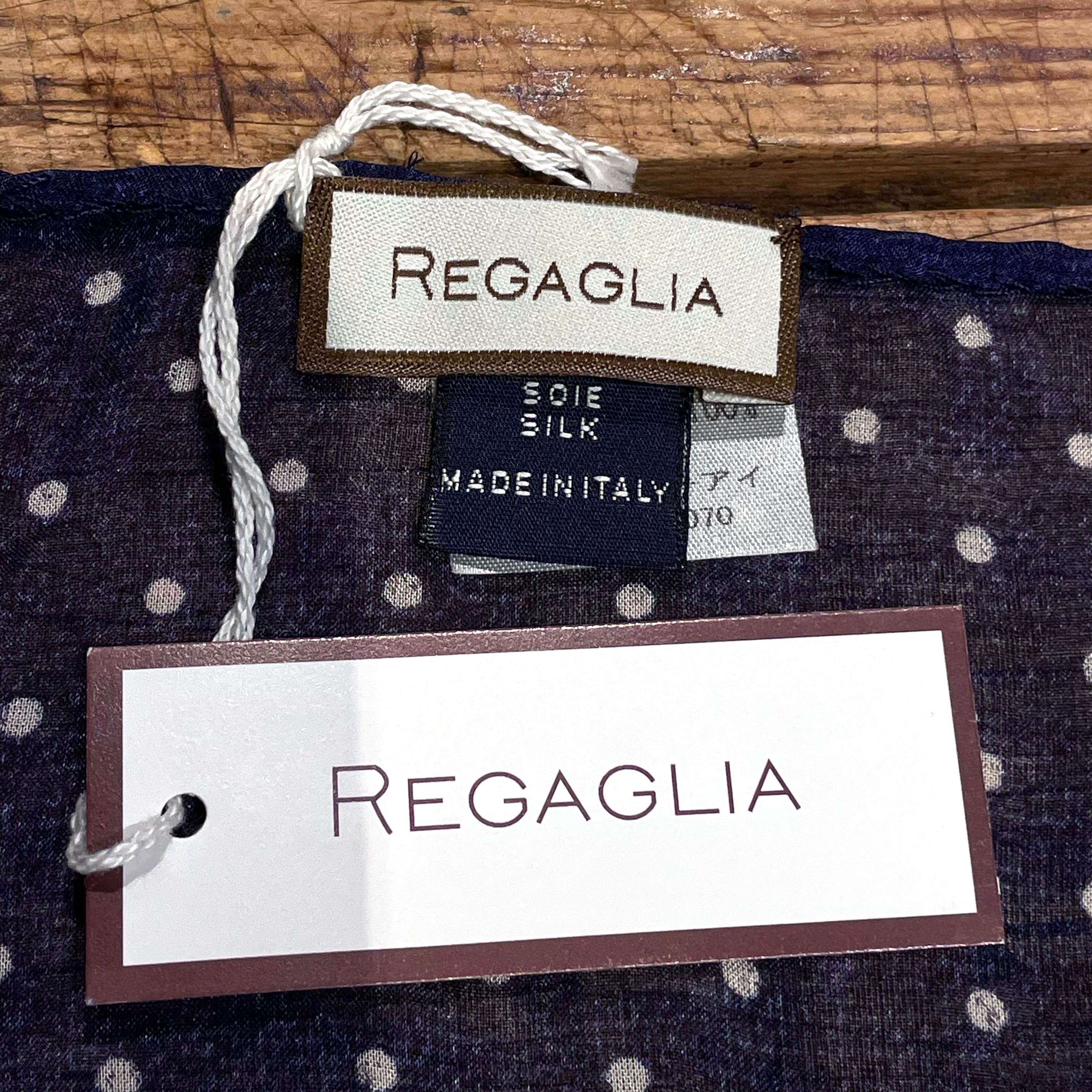 regaglia 未使用品 シルクスカーフ ネイビー ホワイトドット イタリア製 レガリア