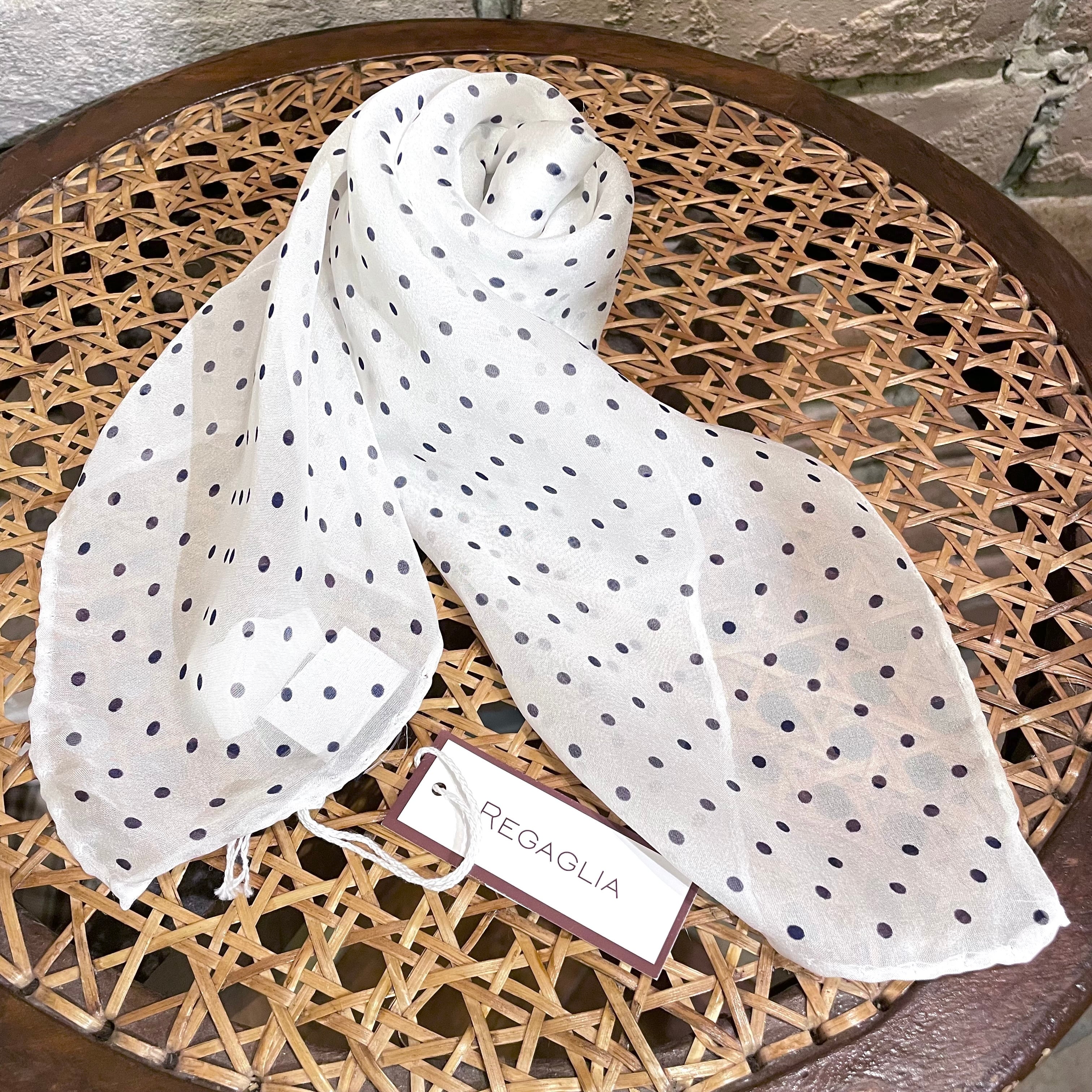 regaglia 未使用品 シルクスカーフ ホワイト ネイビードット イタリア製 レガリア