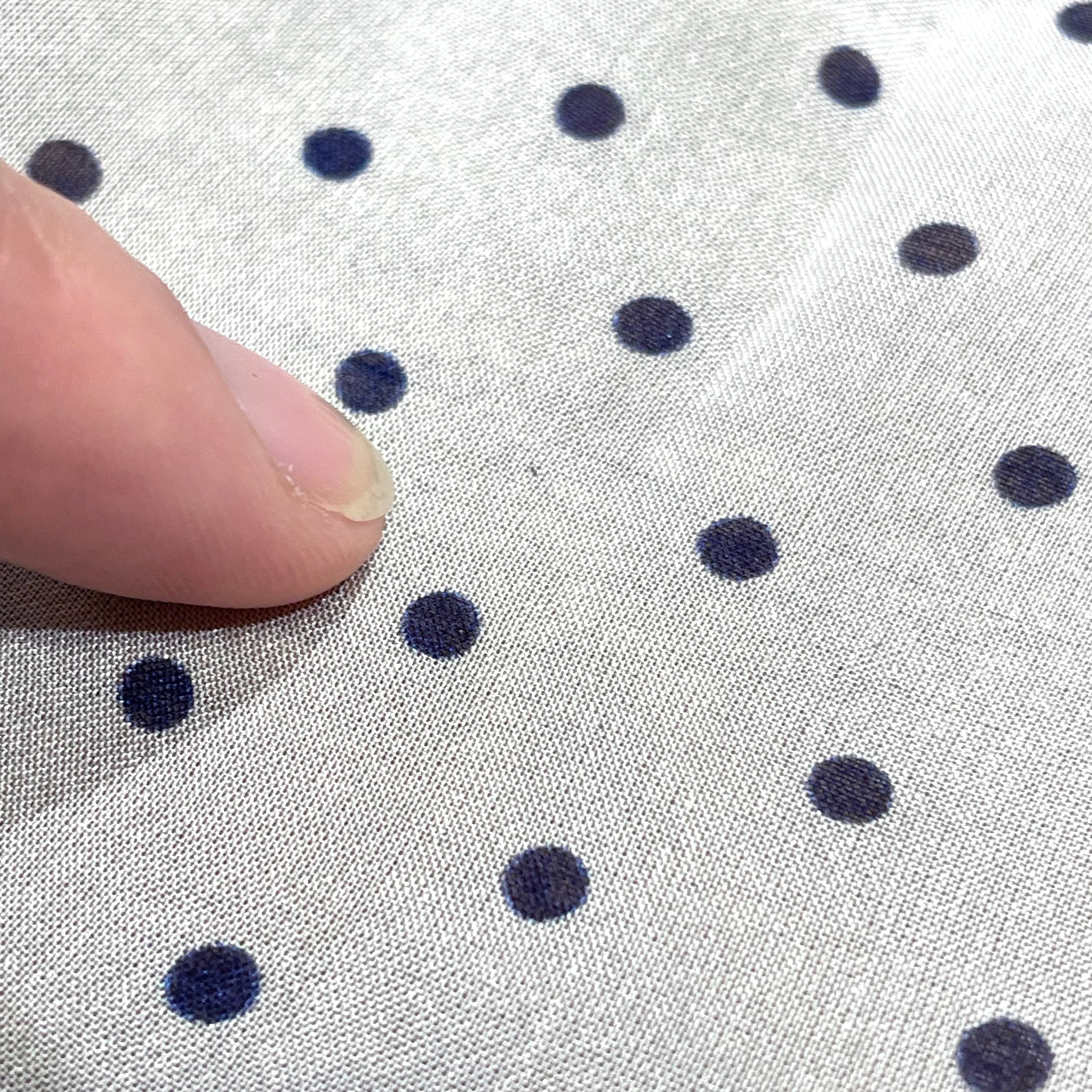 ホワイトベースにネイビーのドット柄です。