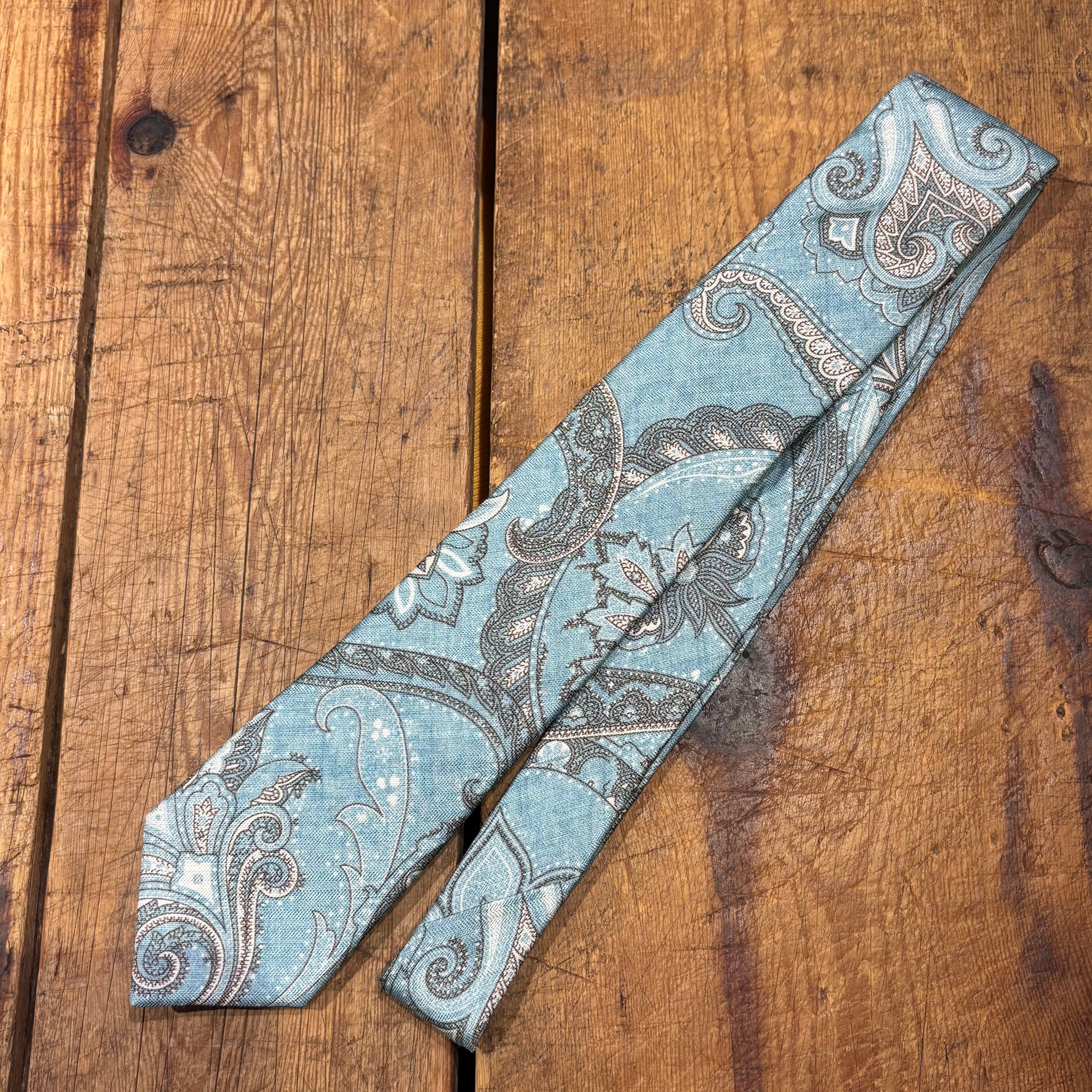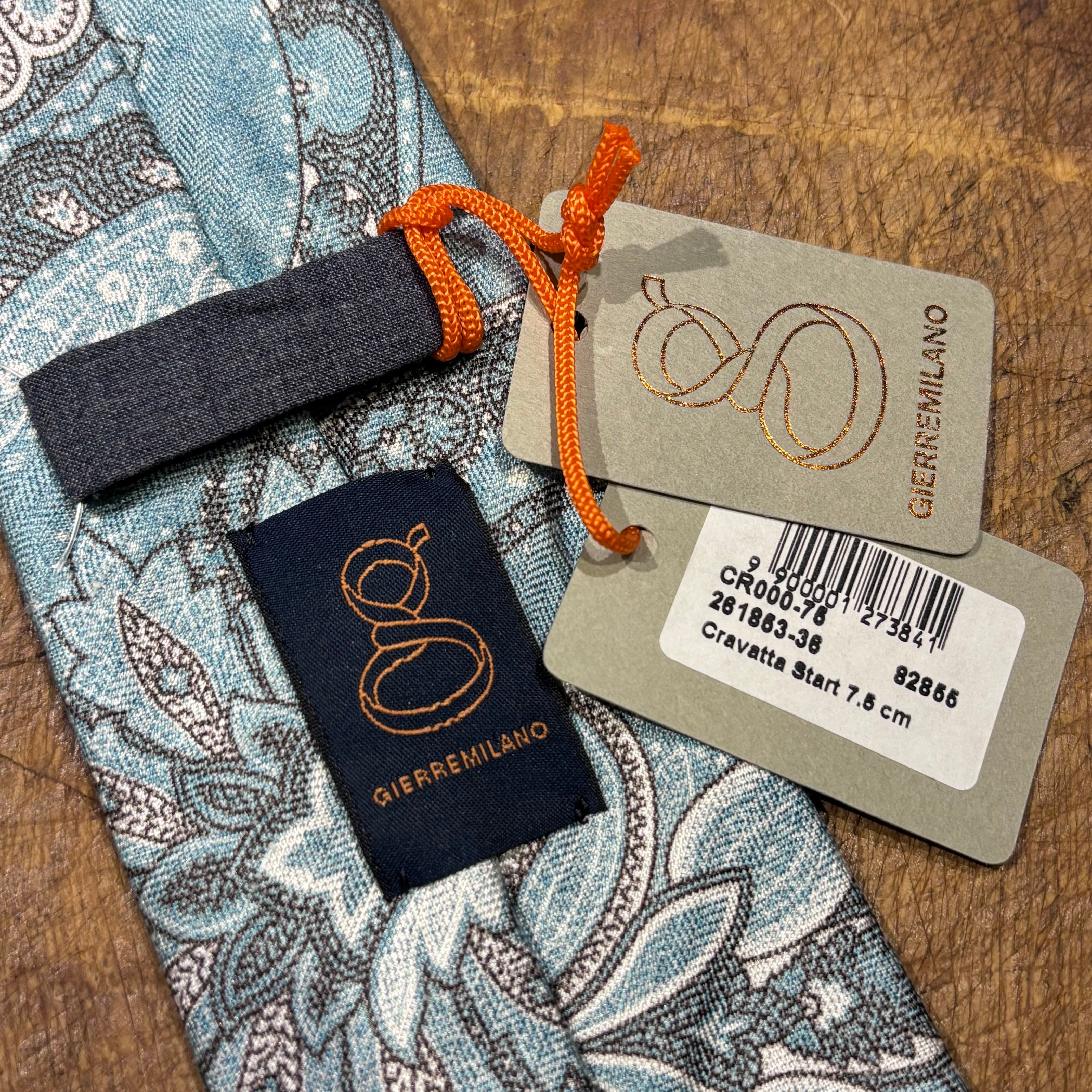 Gierre 未使用品 シルク×リネン ネクタイ ライトブルーペイズリー イタリア製 ジエレ