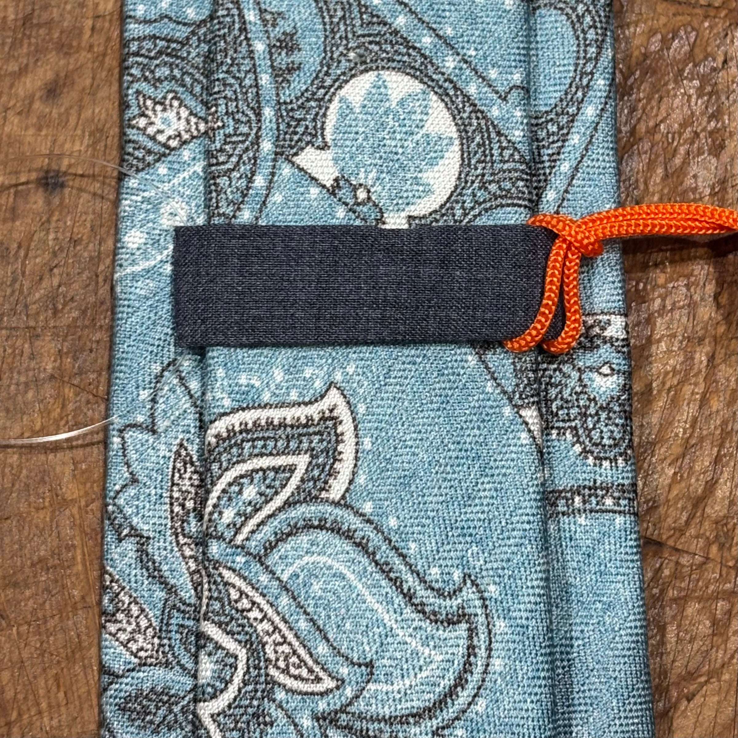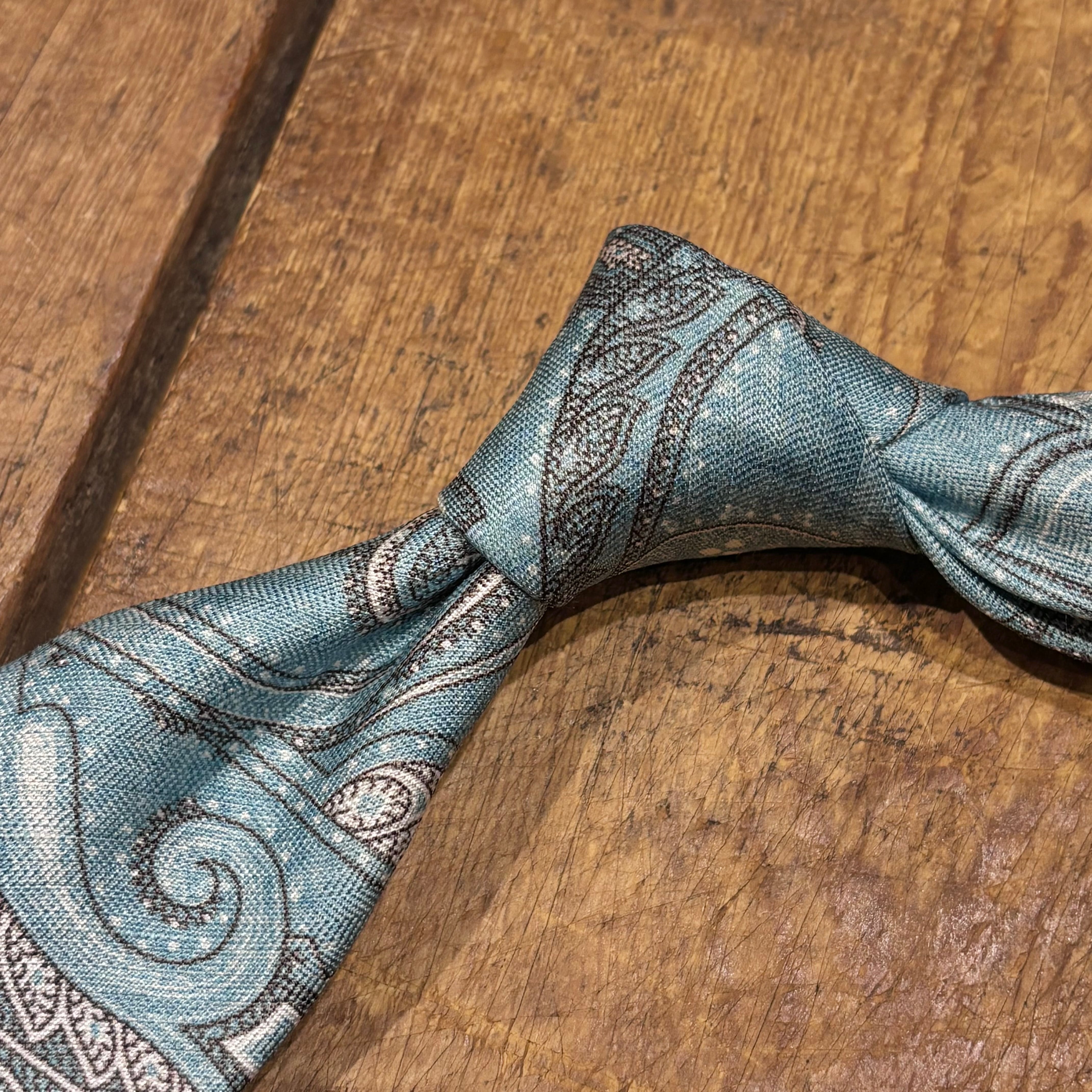 メランジがかったライトブルーにペイズリー柄。