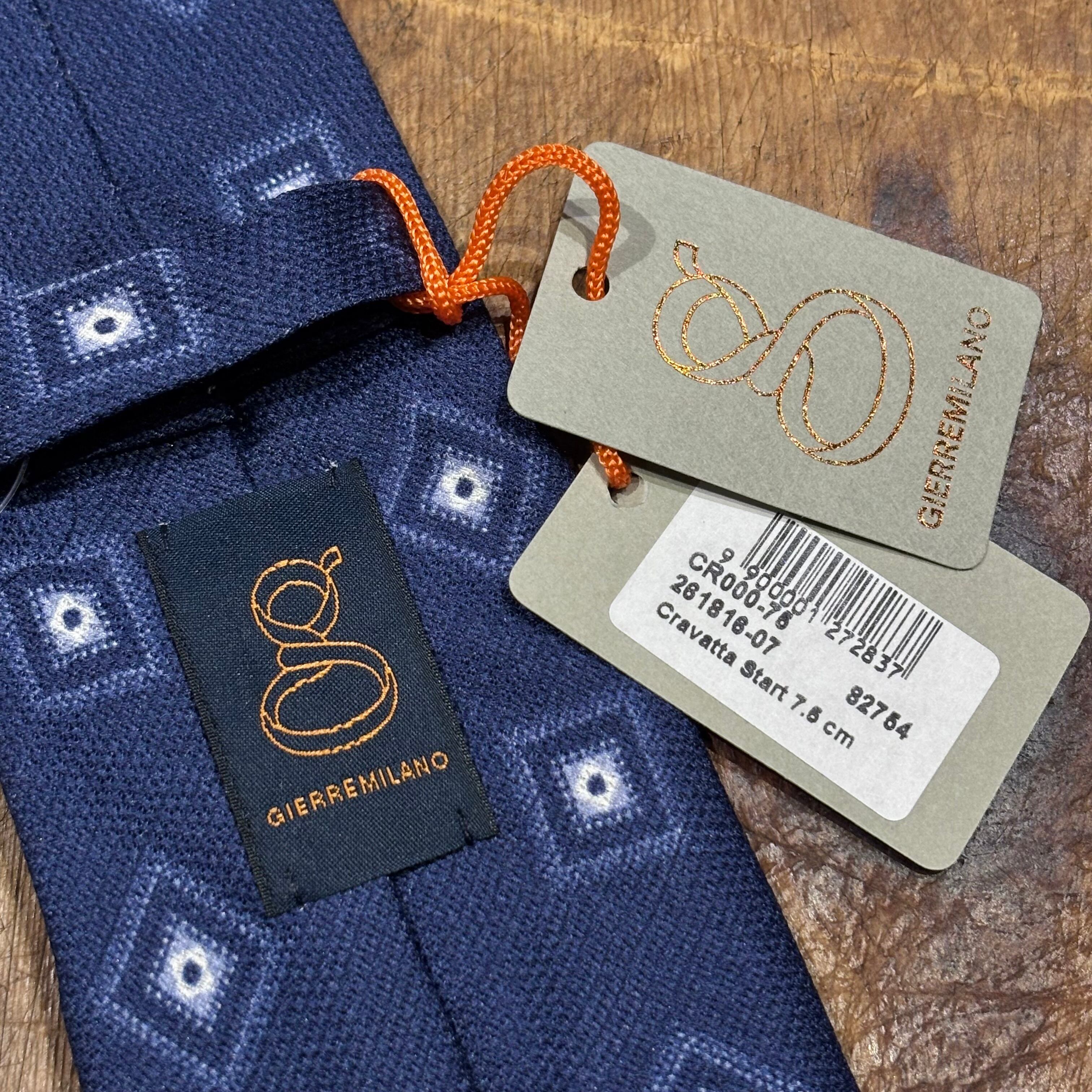 Gierre 未使用品 シルク100% ネクタイ ネイビー ジオメトリック 小紋 イタリア製 ジエレ