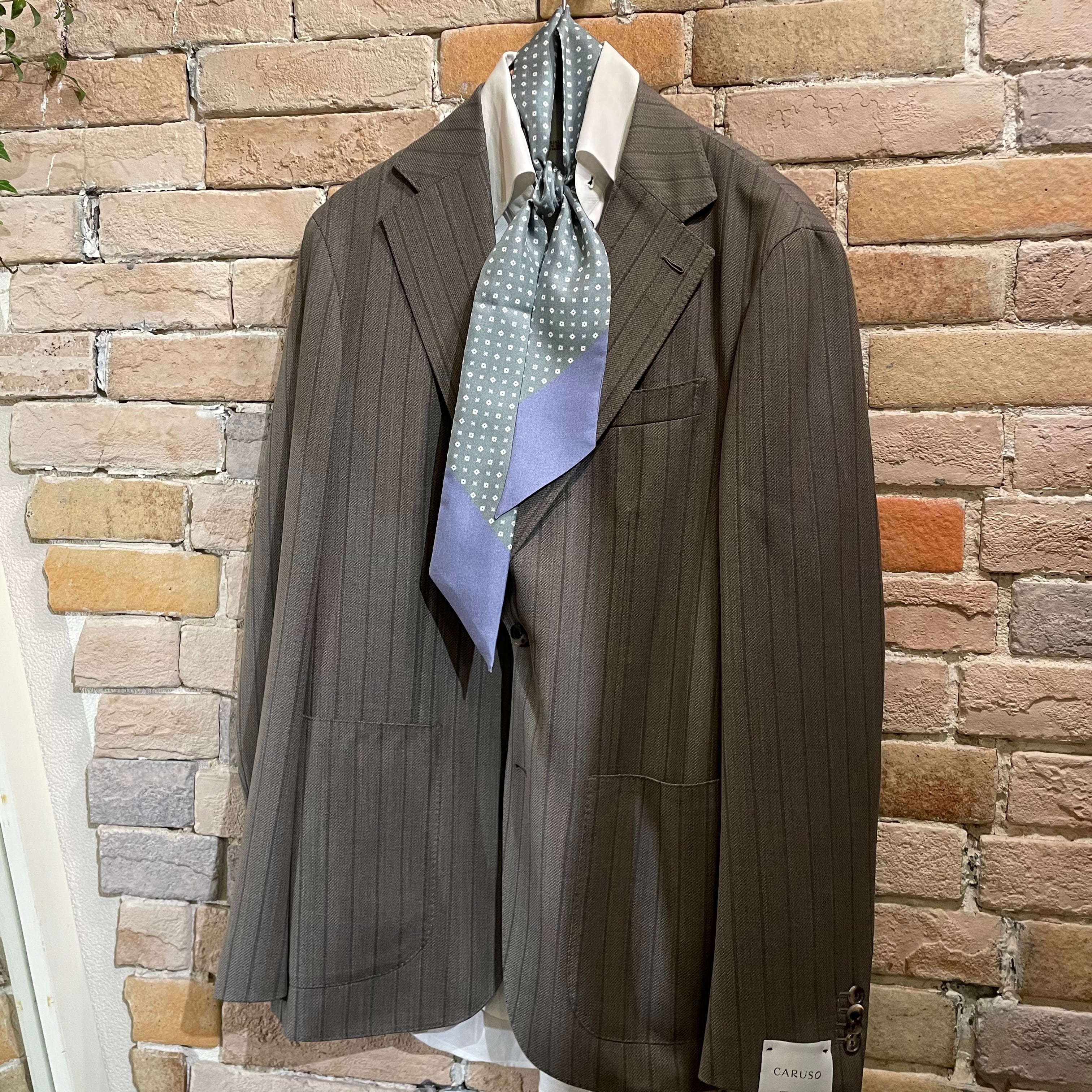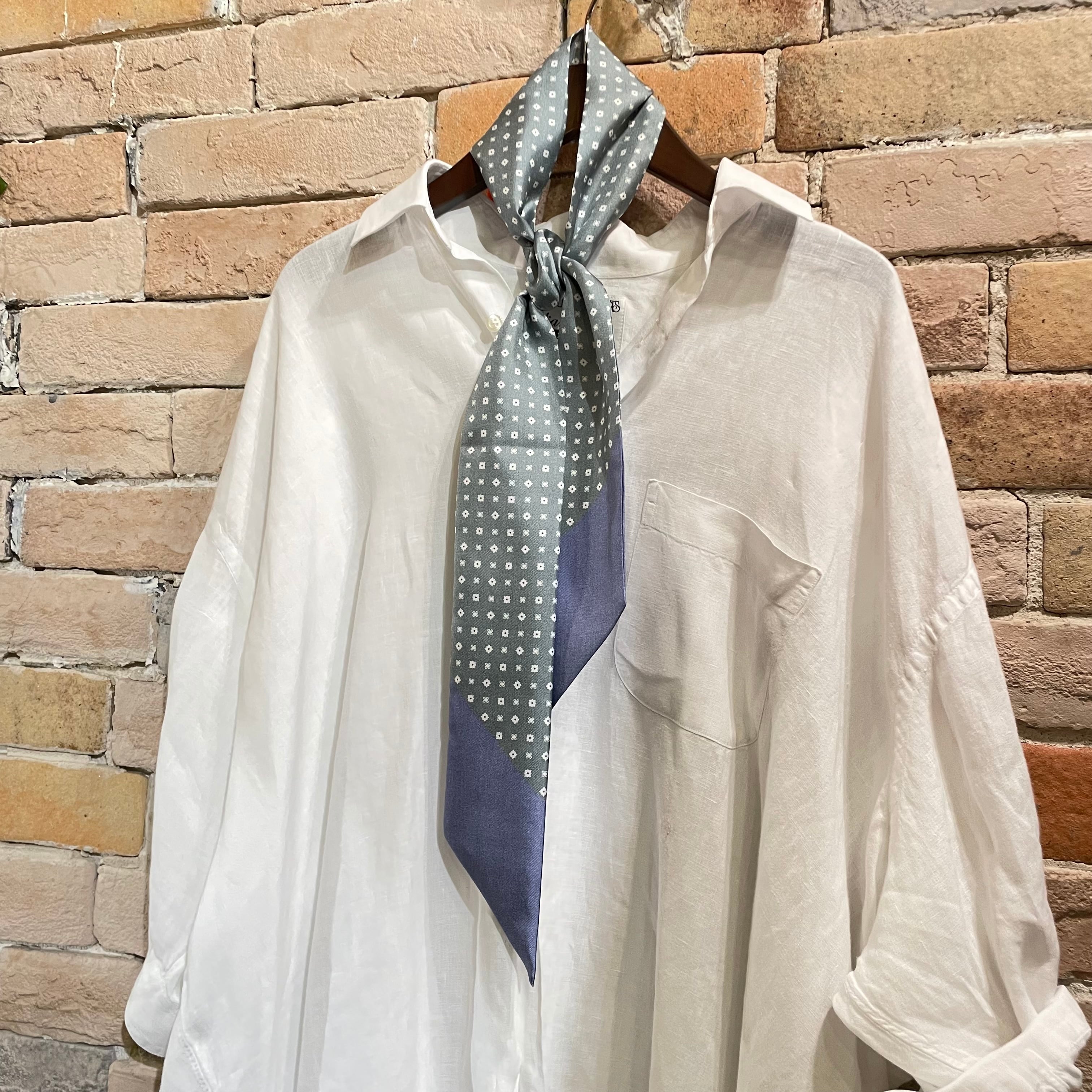 ツイリータイプの細長いスカーフですので首元に生地がたまらずにスッキリと巻いていただけす。