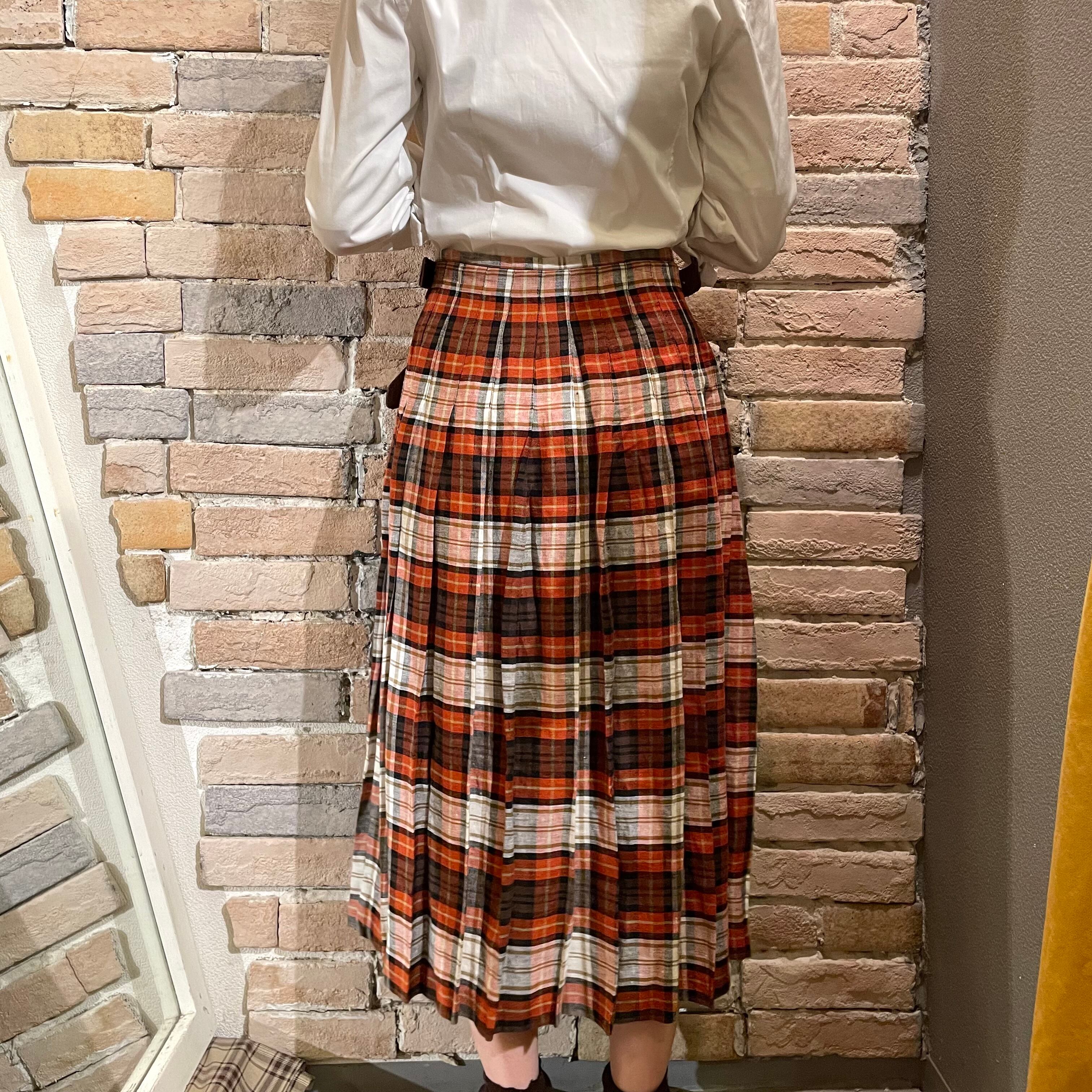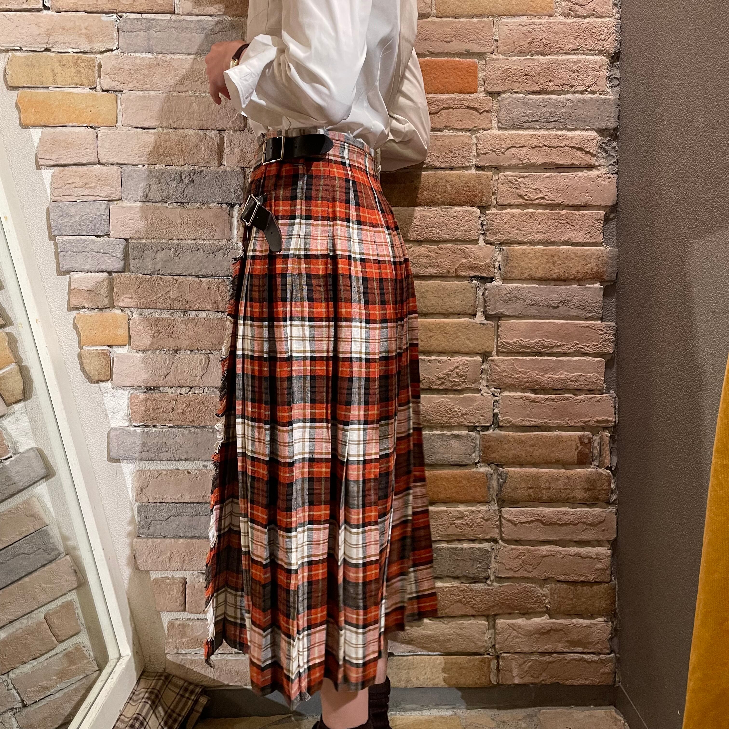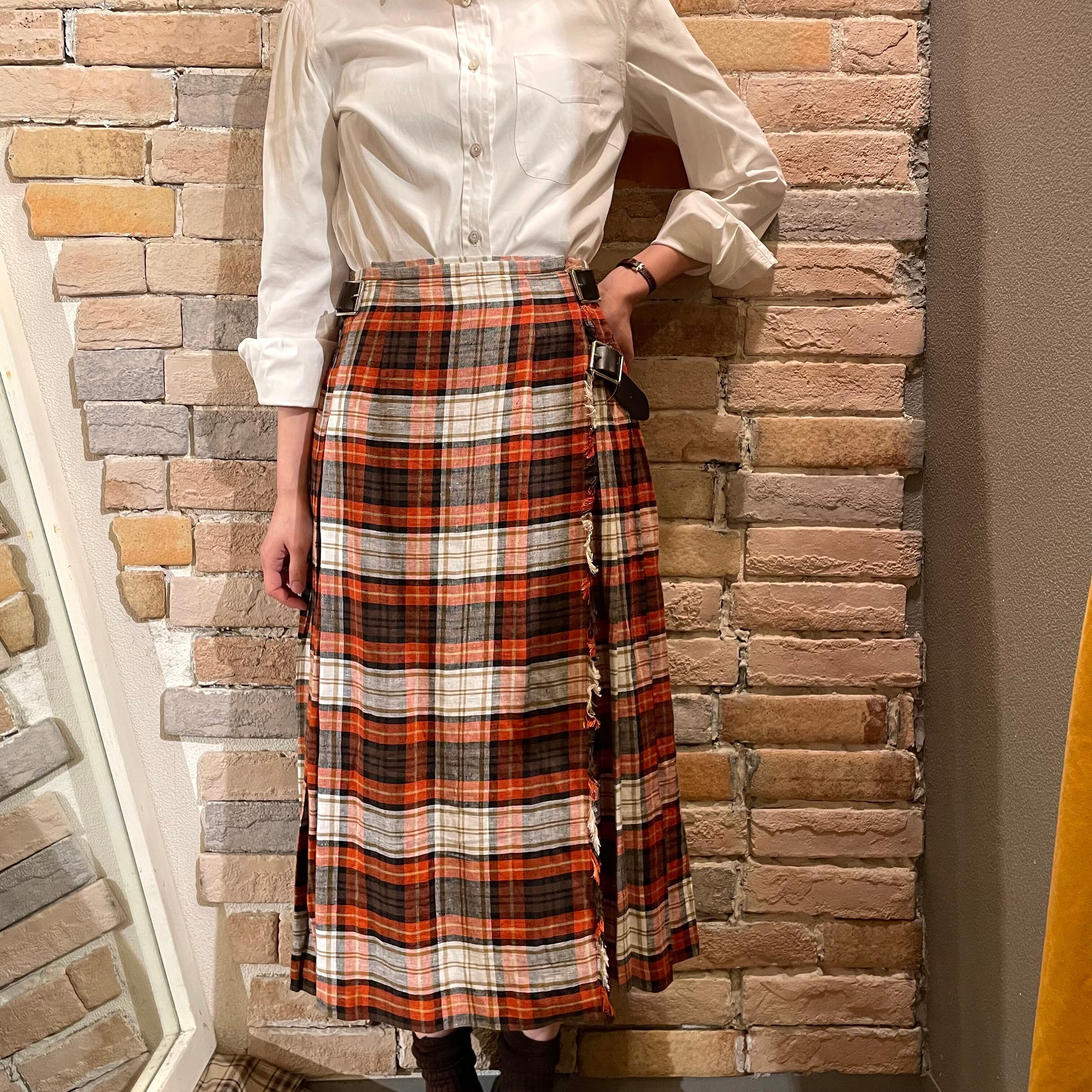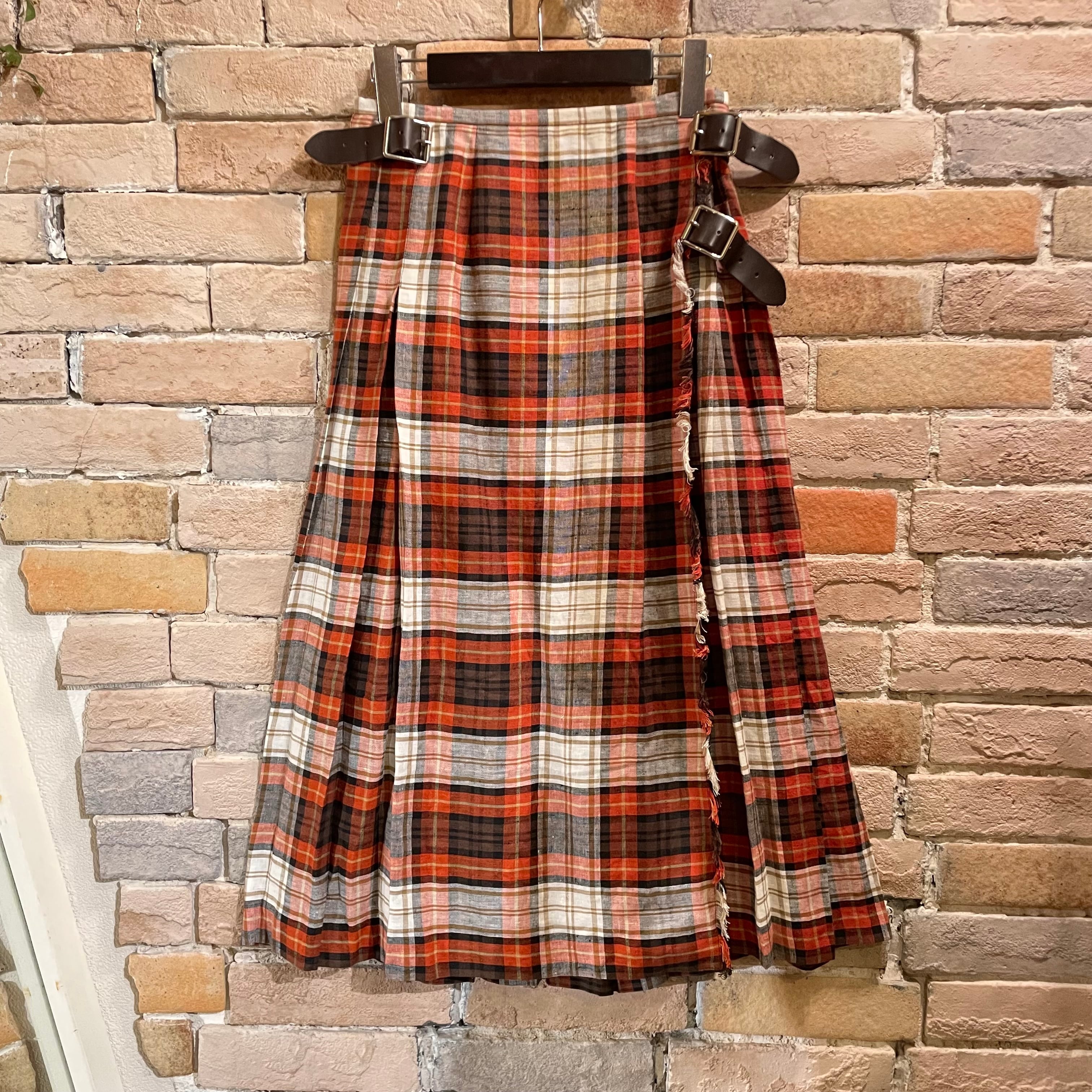 o’neil of dublin "linen wrap skirt" orange size10 アイルランド製 オニールオブダブリン リネンスカート オレンジ チェック
