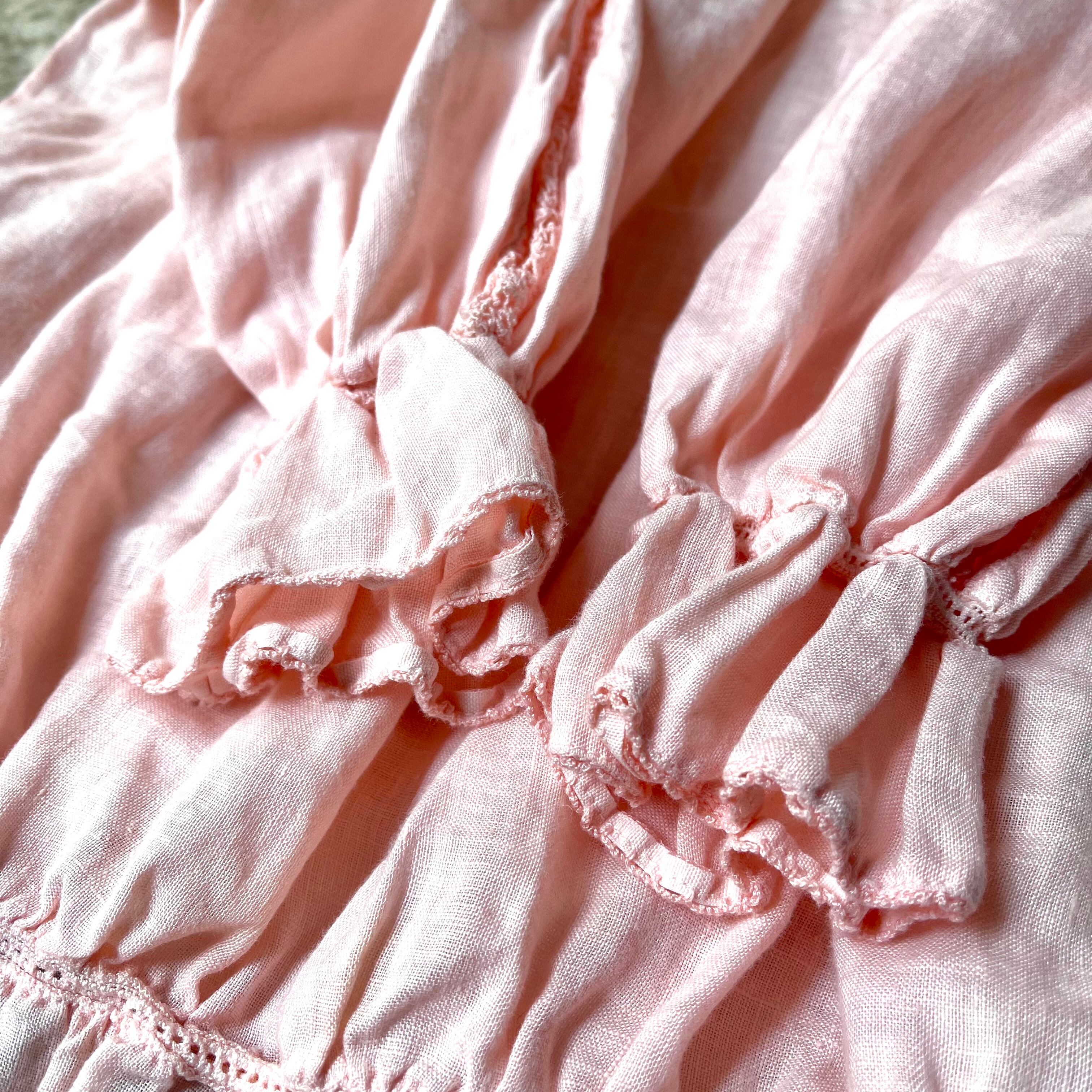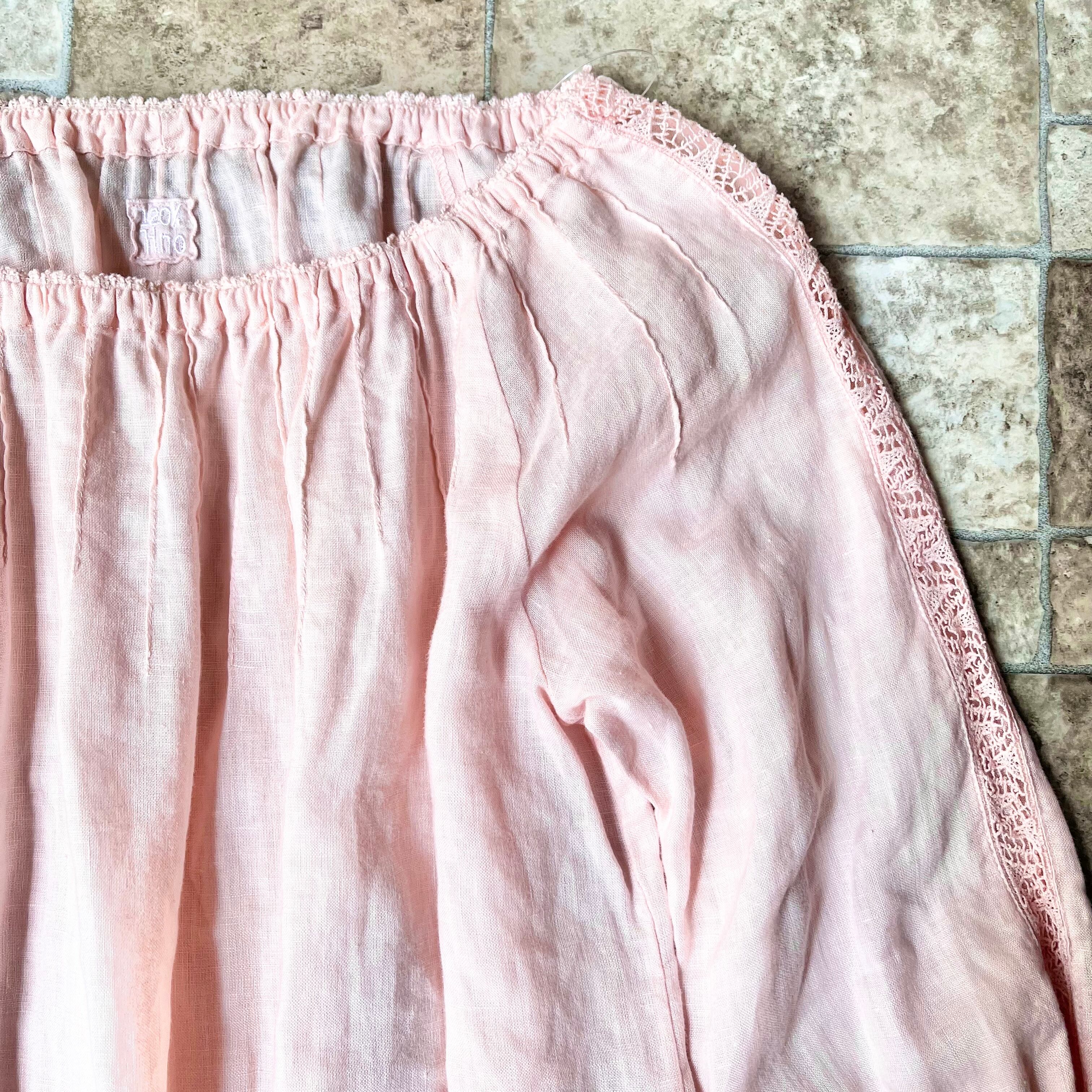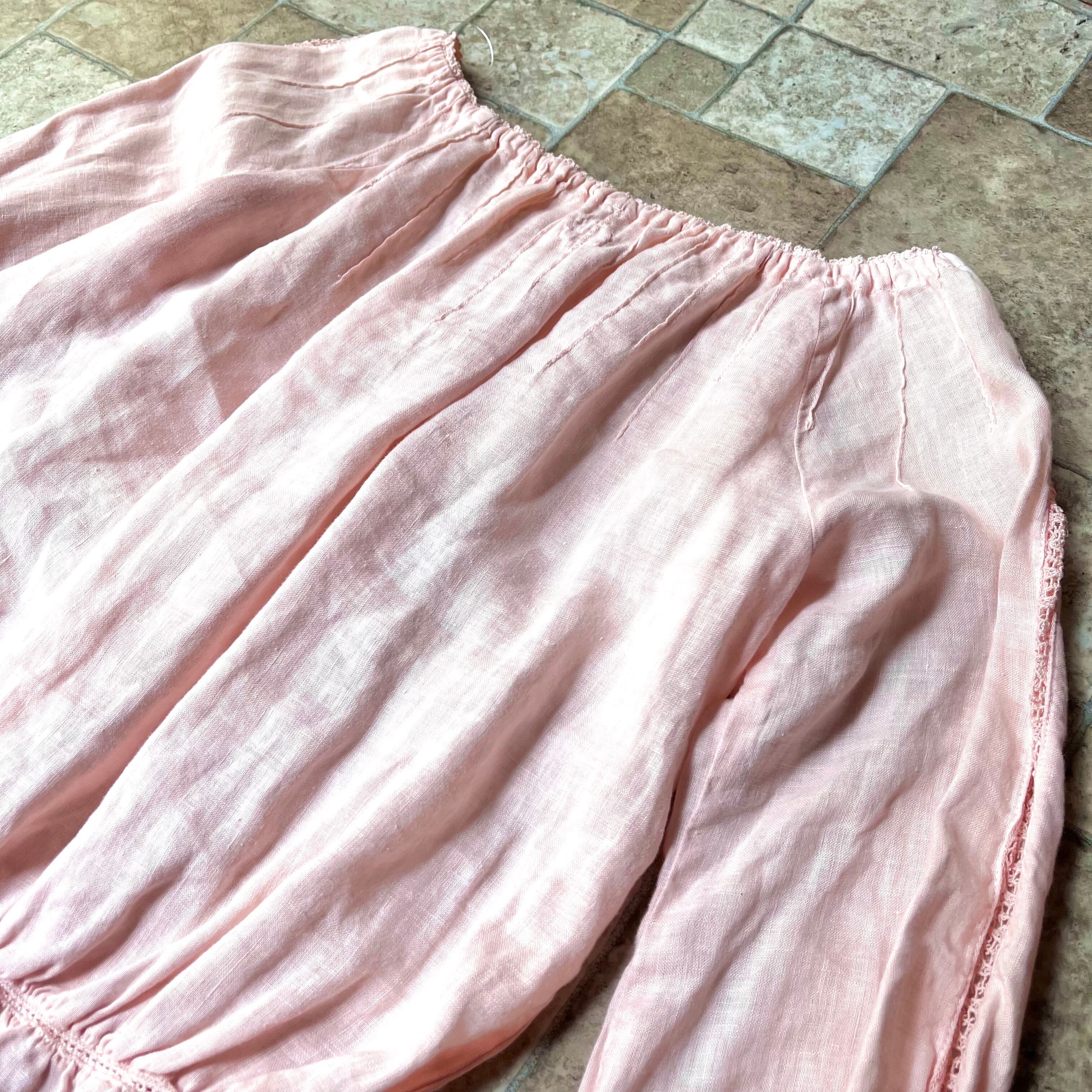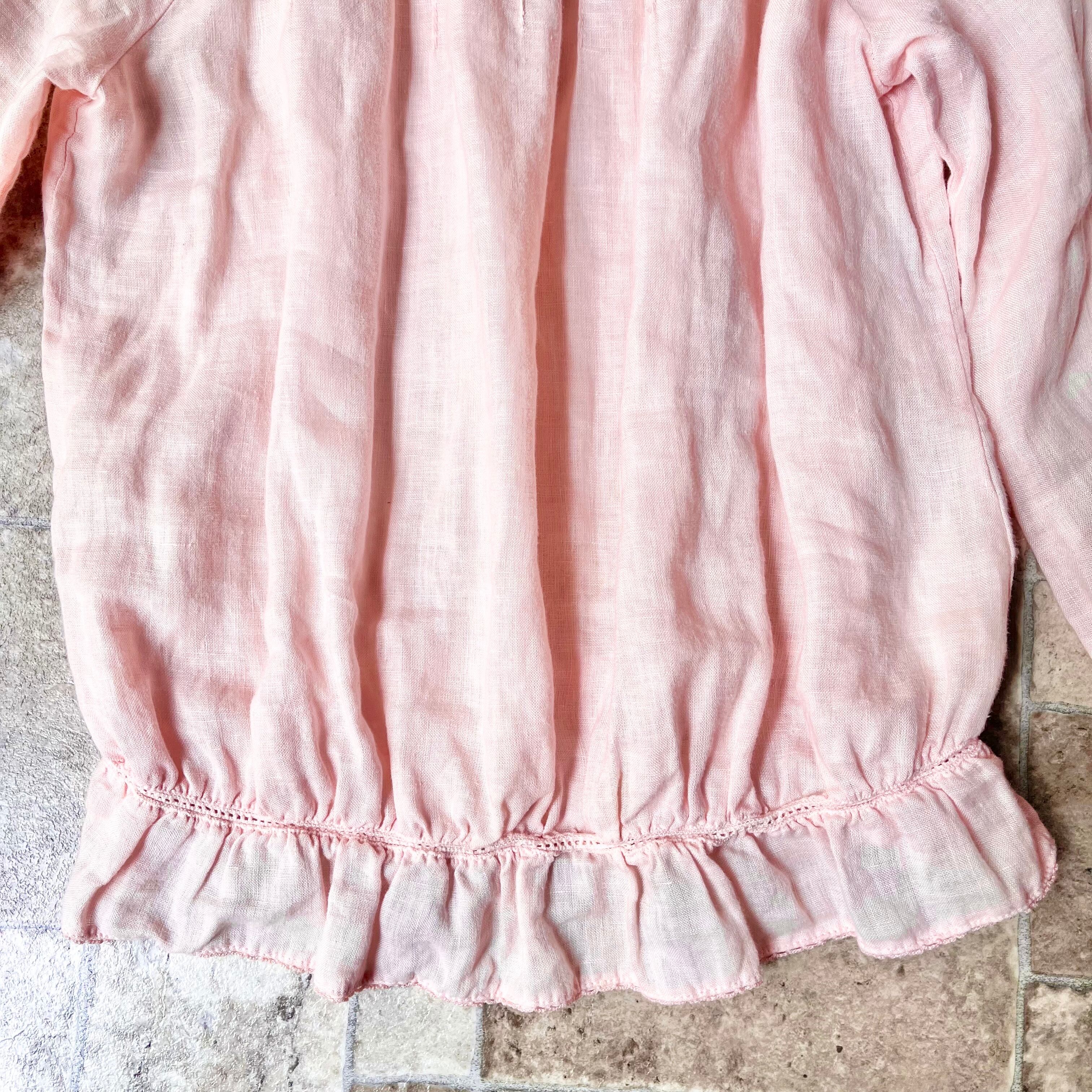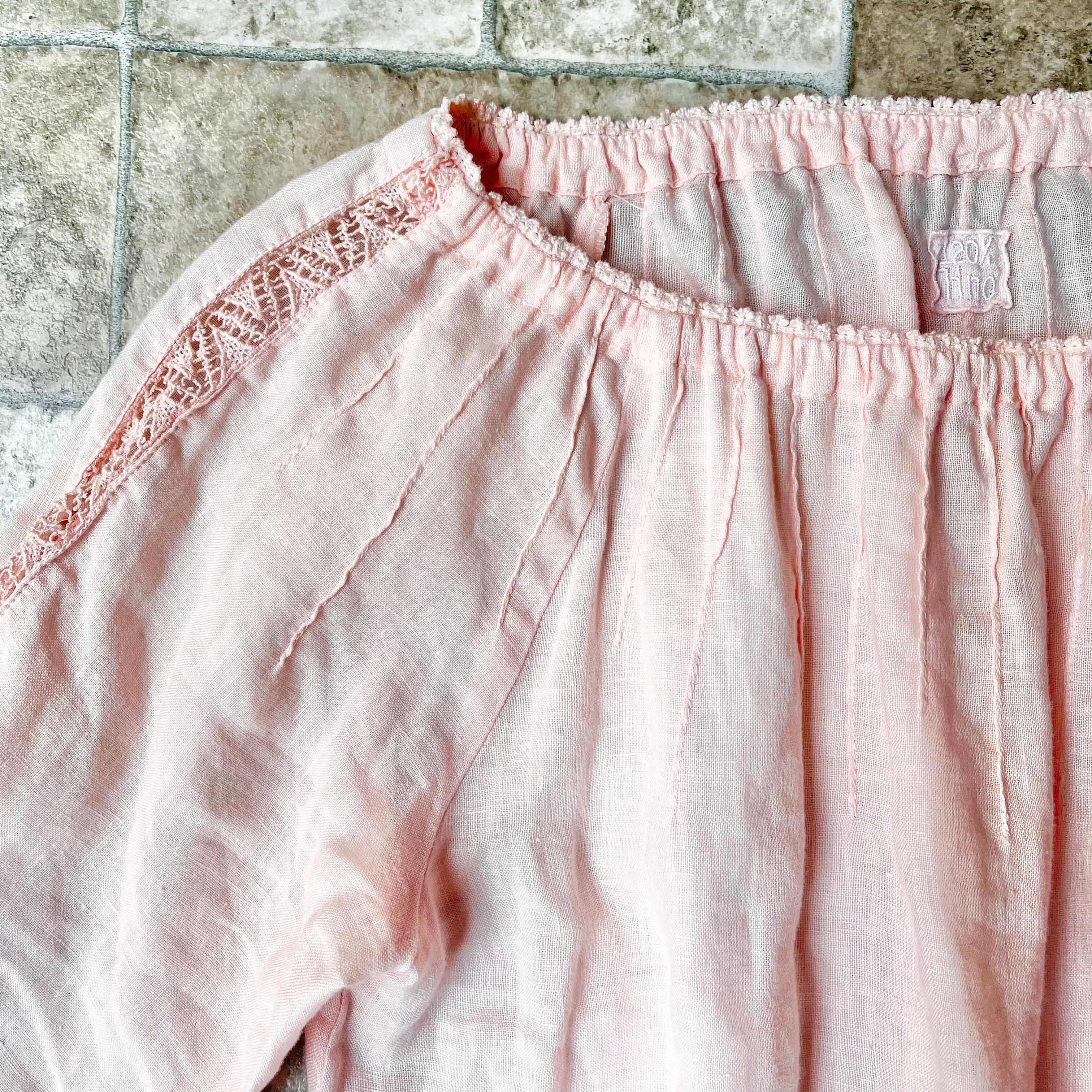生地のボリューム感とシルエットのバランスが良く、淡いピンクでもすっきりとした印象のトップスです。