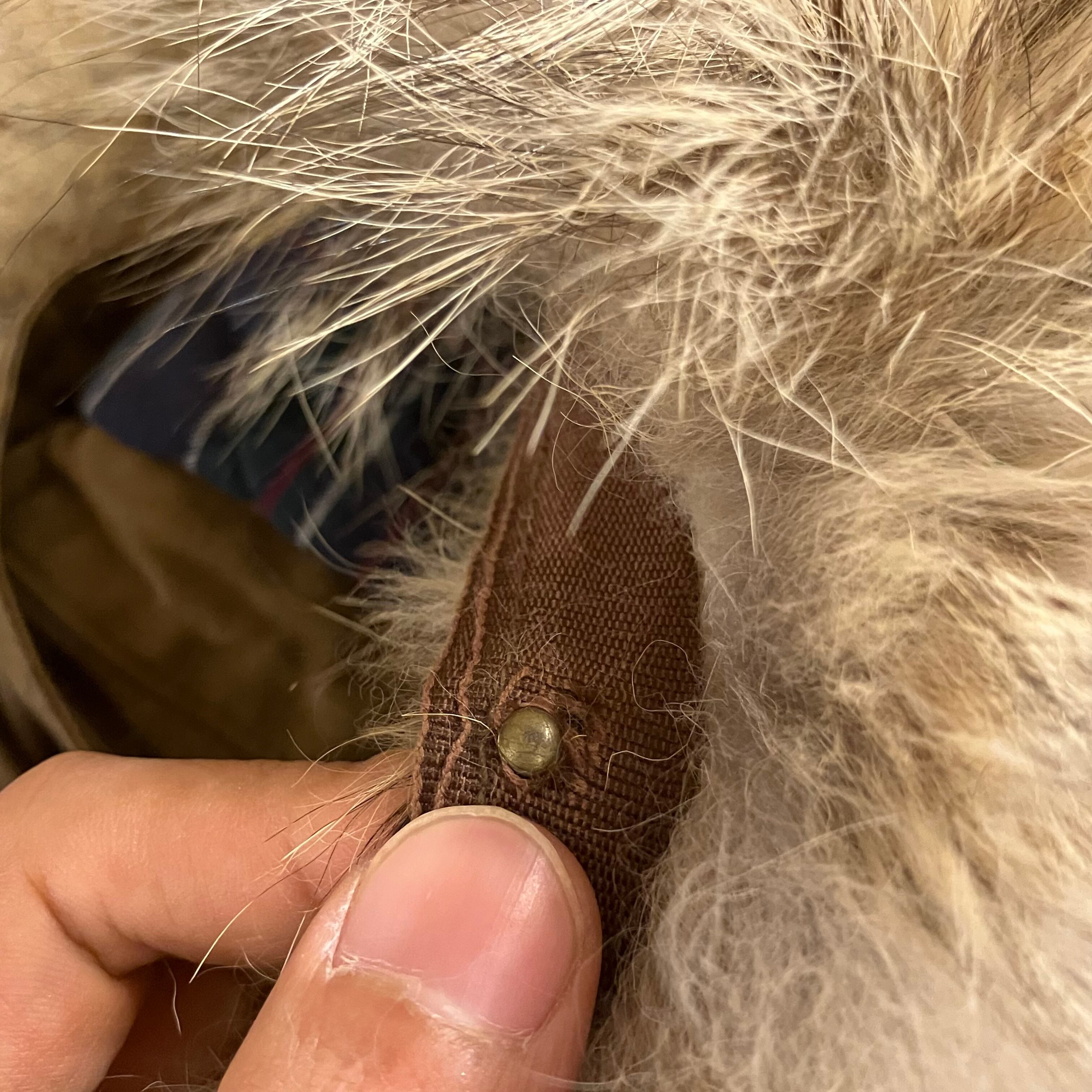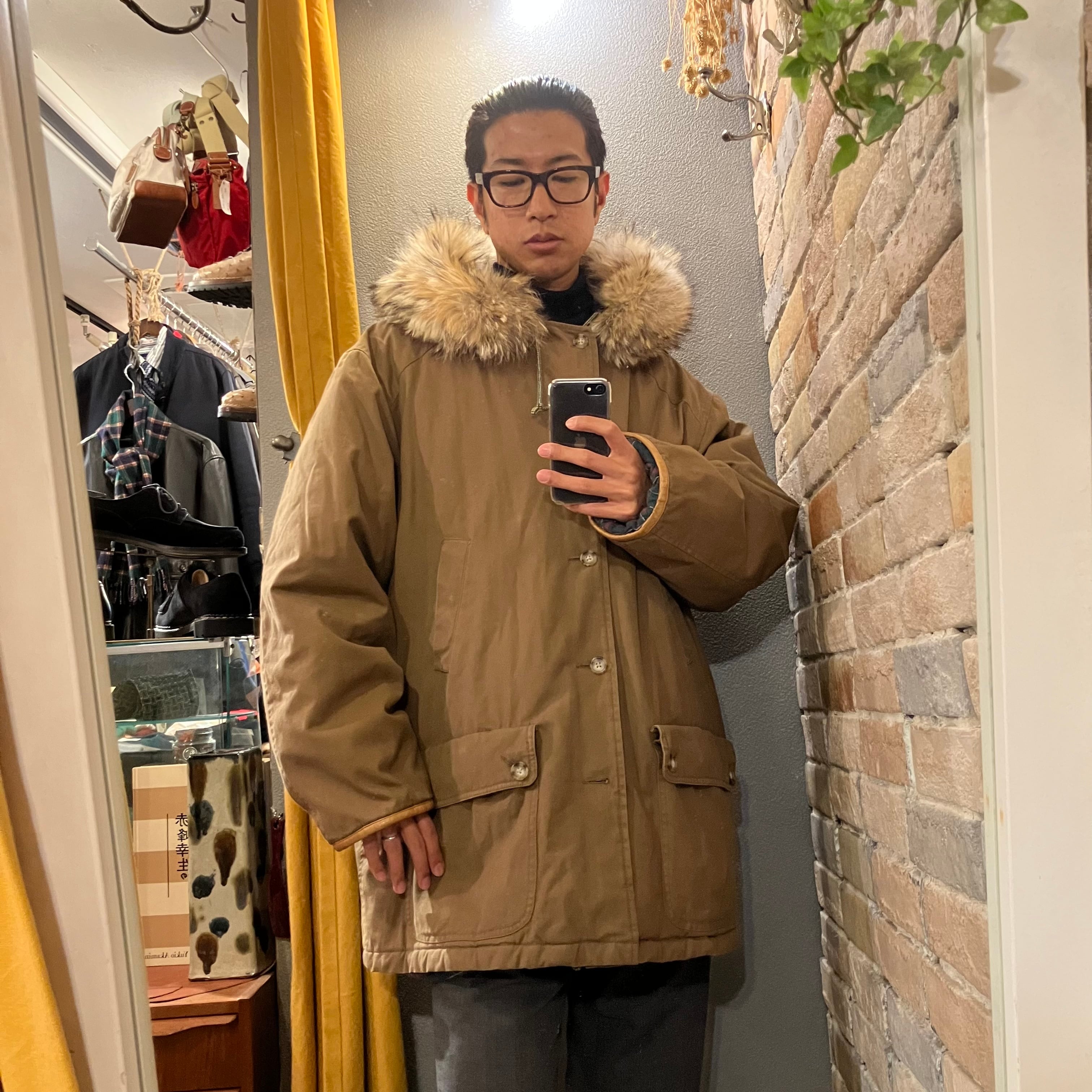 ダック生地に裏地キルティング、ファーの取り外しが可能な防寒性のある大きめサイズのダックパーカー。