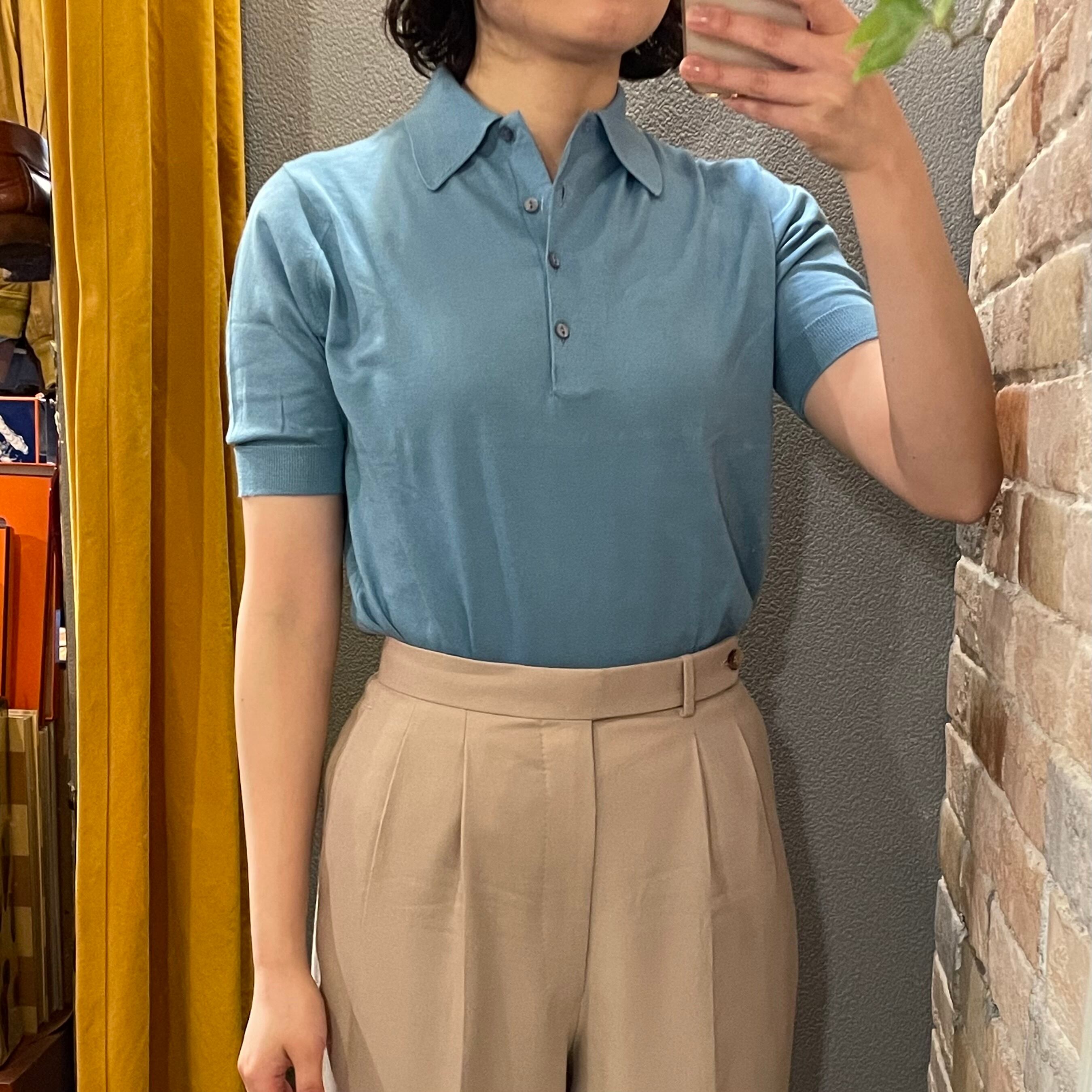 Johnsmedley Ladies Deadstock 3サイズ Seaisland cotton 半袖ポロ ライトブルー デッドストック ジョンスメドレー シーアイランドコットン