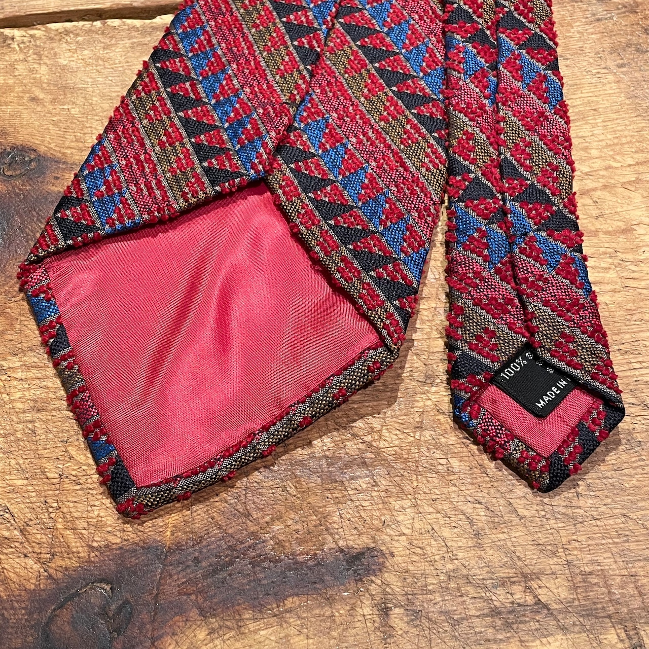 ミッソーニらしい複雑な色合いの織りが美しく立体的な生地には迫力があります。コーディネートのポイントになるイタリア製ニットタイ