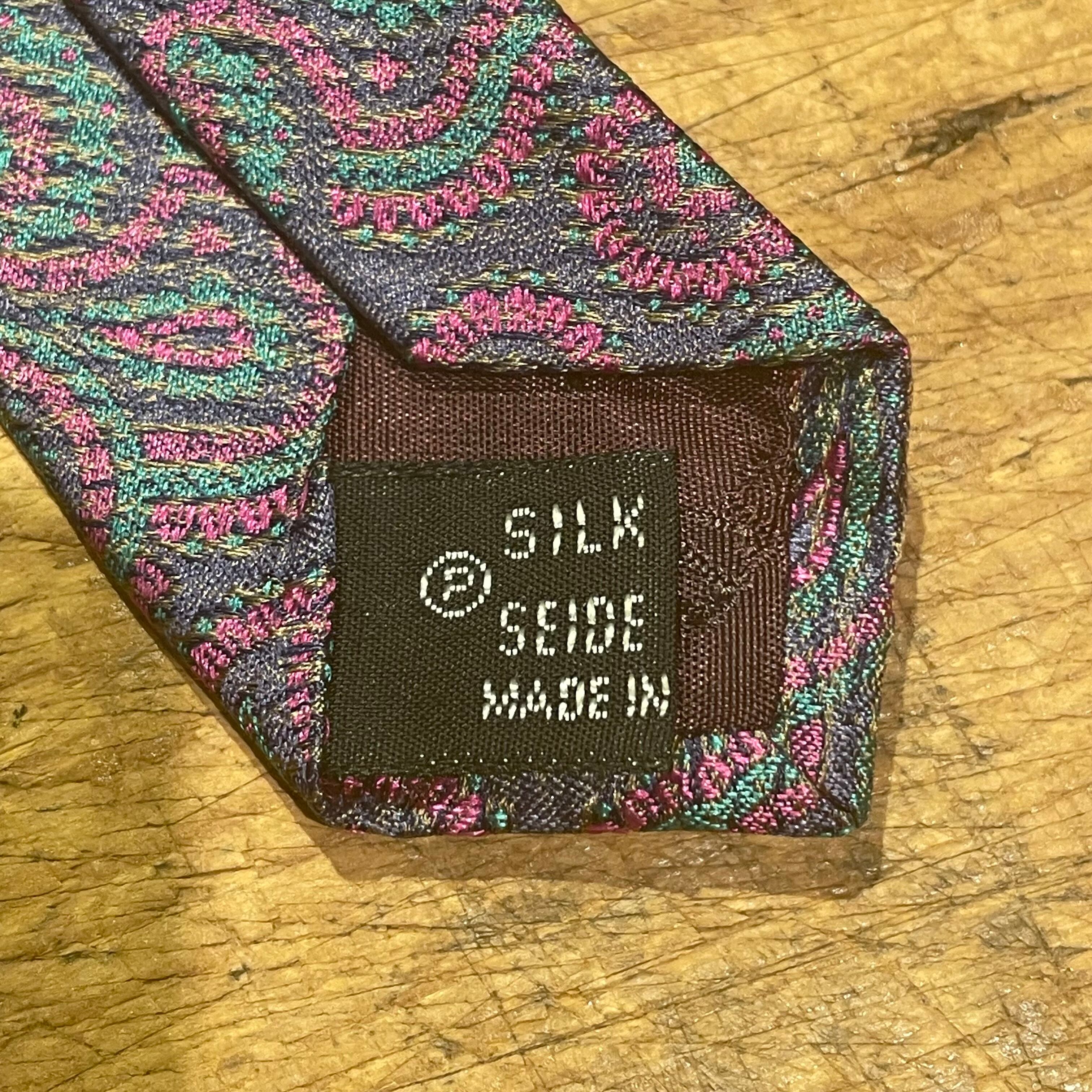 ペイズリー柄でアクセントになる色合いのシルクネクタイです。