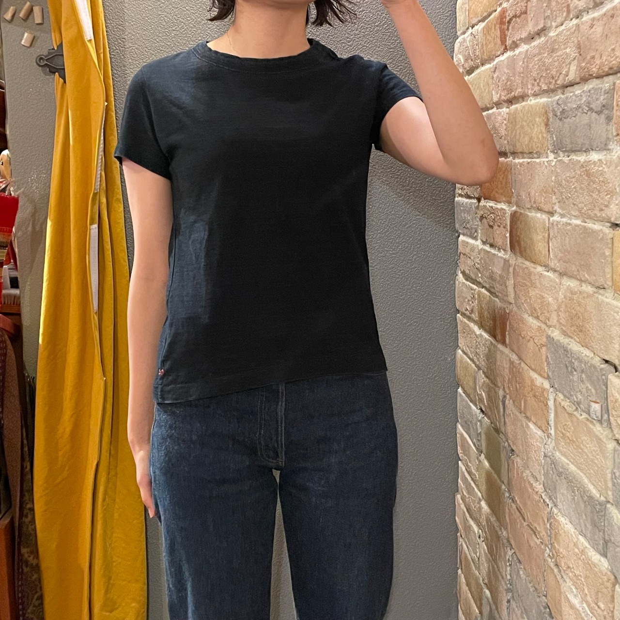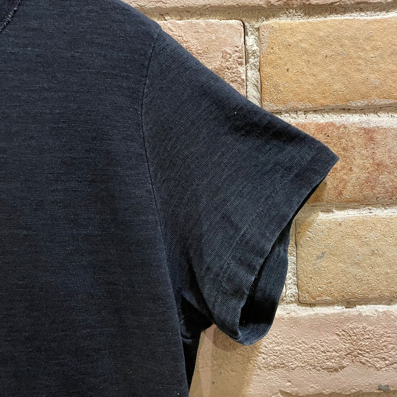 杢調のインディゴのダークネイビーで重すぎないすっきりとしたシンプルなTシャツです。