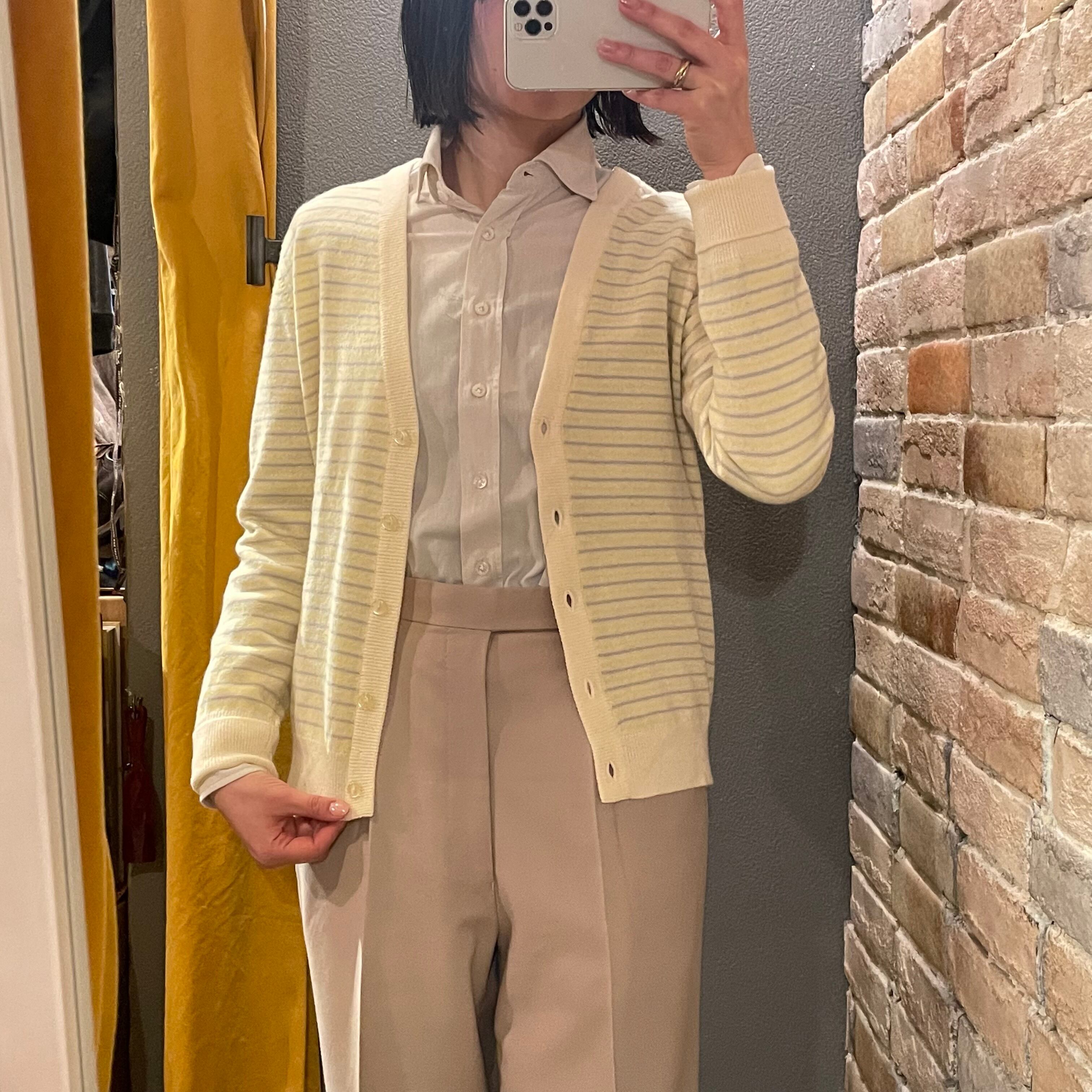 アイボリー、イエロー、グレーのボーダーで柔らかく綺麗な色合いです。