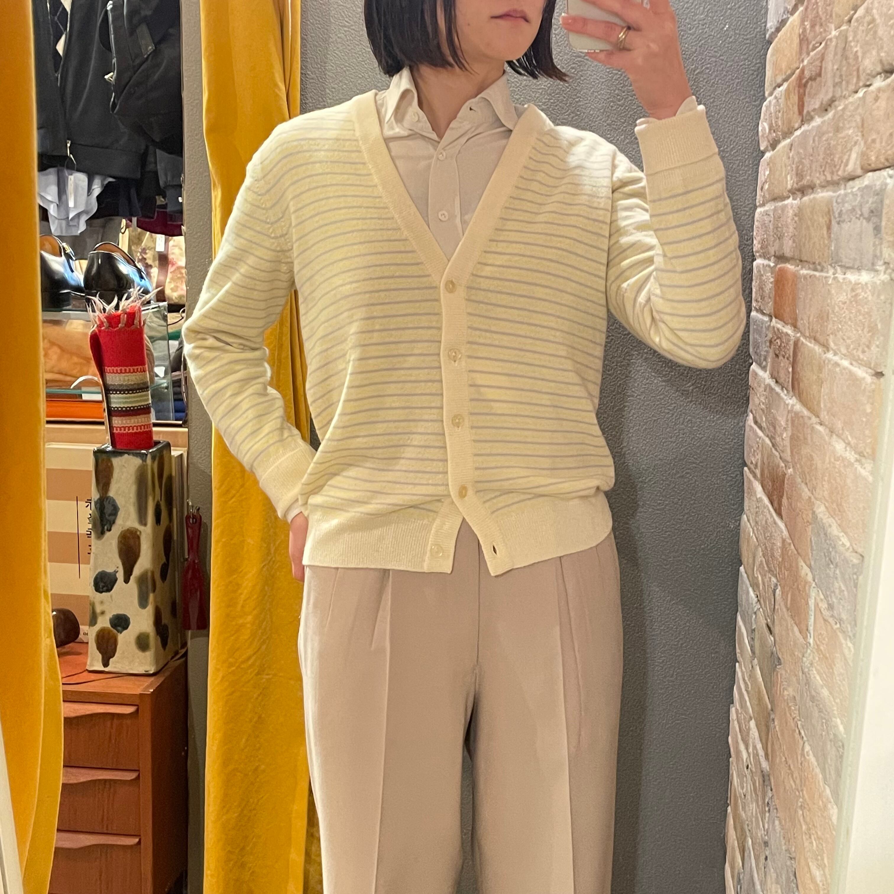 barrie "ladies wool cardigan" yellow gray スコットランド製 カーディガン ボーダー グレー イエロー バリー